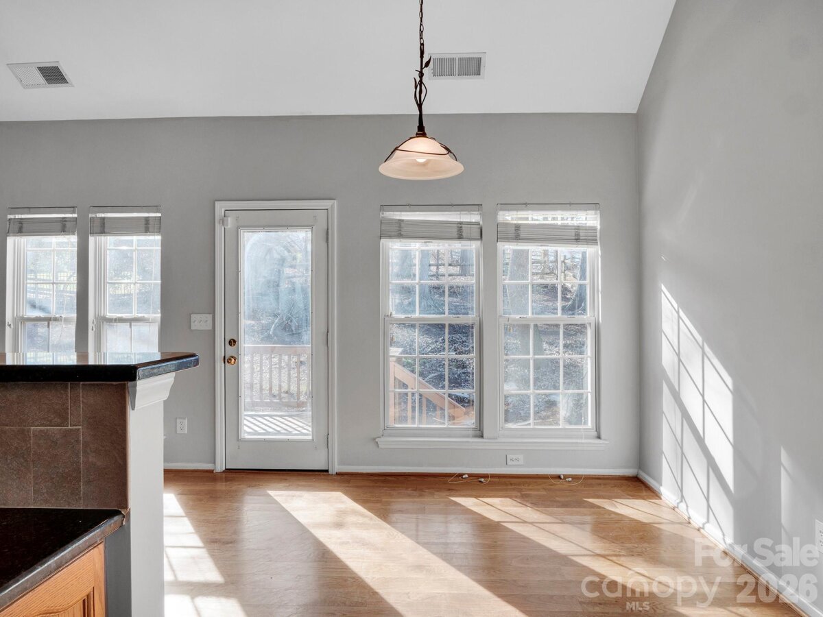Discover your new home in the heart of Ballantyne, located in the peaceful and family-friendly Mitchell Glen neighborhood. This beautifully maintained home offers an unparalleled blend of style, comfort, and convenience. This home is perfect for those seeking a vibrant and active lifestyle. Step inside to find a home that has been meticulously updated for modern living. The main level features stunning 5-inch solid oak hardwood floors that flow into the kitchen. Here, you'll find elegant granite countertops, stainless steel appliances, and ample cabinet space, making it a chef's kitchen. The spacious primary suite is a true retreat, with a primary bath featuring an open shower and a jetted spa tub, offering the perfect way to unwind after a long day. Outdoor living is highlighted by a private, fenced-in yard overlooking a tranquil setting, ideal for entertaining guests, enjoying a morning coffee, or simply relaxing. This exceptional property is more than just a house; it's a place to call home. Don't miss the opportunity to experience the best of Ballantyne living. Schedule your private tour today!