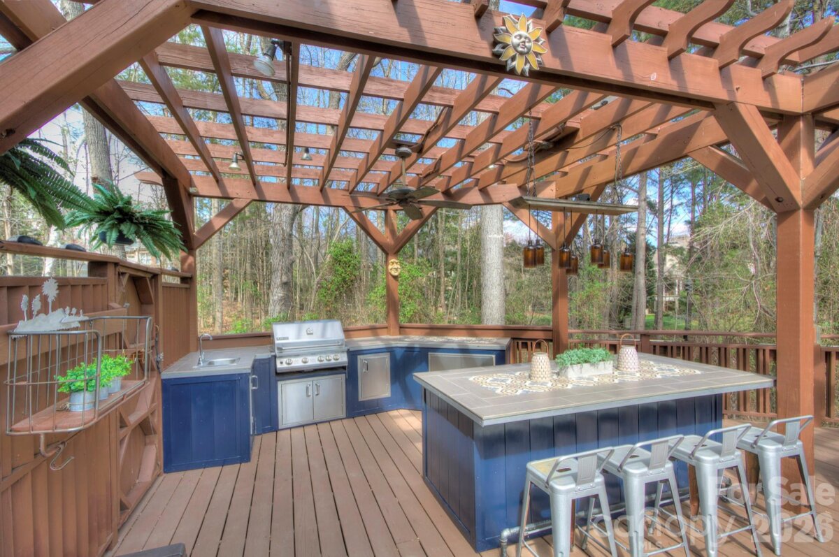 ***House Back On The Market - NO FAULT OF THE SELLER - Buyer's Personal Life Events Changed*** Welcome to this beautifully updated home where outdoor living becomes a natural extension of everyday life. The expansive 600 sq ft deck creates the perfect setting for entertaining or relaxing evenings at home, complete with an outdoor kitchen, dedicated entertaining space, and pergola. Natural gas direct line JennAir grill and hand sink. The lot offers exceptional privacy with mature trees and adjacent HOA green space, creating a peaceful backdrop rarely found in such a convenient location. Inside, the updated kitchen features abundant cabinet and counter space—truly a chef’s delight and ideal for both everyday cooking and hosting gatherings. Majority of windows replaced. Sliding door replaced. The spacious primary suite offers a private retreat with an en-suite bathroom featuring dual vanities, a soaking tub, and separate shower. The walk-in closet with custom organizer provides excellent storage and functionality. With fresh paint in many areas and brand-new carpet, this home is truly move-in ready and waiting for its next owners to begin making memories. Located in sought-after Edinburgh, the home is just minutes from Ballantyne, I-485, and Indian Land. Enjoy a quick ride to The Bowl at Ballantyne for dinner, drinks, or live entertainment.