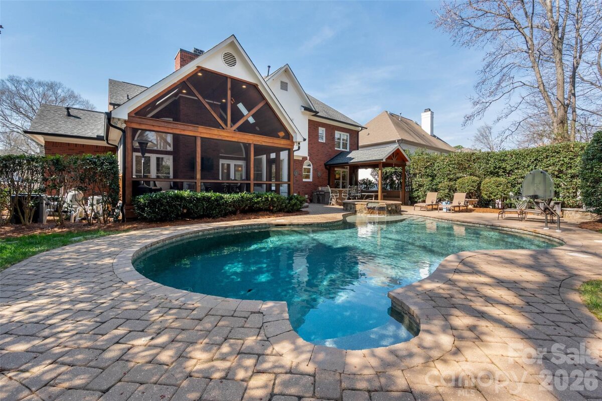 Located in the coveted Ballantyne Country Club community, this beautiful all-brick home sits on a quiet cul-de-sac and offers an open, light-filled floor plan perfect for everyday living and entertaining. The bright, updated kitchen features a large island and flows seamlessly into the vaulted great room with a stunning stone fireplace. Enjoy outdoor living year-round on the vaulted screened porch overlooking the private backyard with a POOL AND HOT TUB! Built in grill and covered area for ping pong or outdoor dining in the rain or hot sun! The main level includes gleaming hardwood floors, a guest bedroom or office, and a full bath. Upstairs you’ll find the primary bedroom with a large walk in closet and updated bathroom, new carpet, and spacious bedrooms, while the third-floor bonus room with a full bath provides the perfect space for a media room, playroom, or private guest suite. Ideally located just minutes from shopping, dining, and entertainment, with easy access to I-485 and the airport. Close to The Ballantyne Bowl, where you can enjoy restaurants, shopping, a brewery, and live music. **Bypass the waitlist for a full golf membership**. The sellers have an equitable membership that can be purchased with the house.