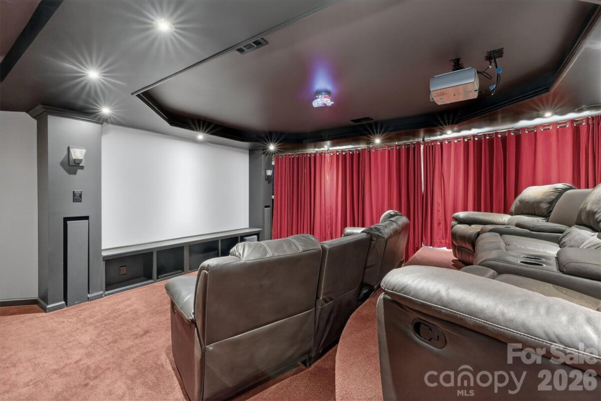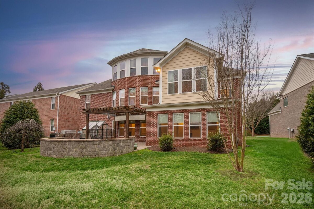 Spacious 5 bedroom, 4 full bath Avalon model with nearly 5,000 square feet located on GREAT lot in popular Ardrey Chase community. Full guest suite on main level plus designated home office with french doors. Gourmet kitchen with large island open to beautiful sunny great room. Large primary suite up, with spacious primary bath and expansive walk in closet. 3 additional bedrooms up, plus huge bonus room. Finished 3rd floor consists of theatre room with bar, plus extra storage space. Outside features a flat yard with mature privacy landscaping, built in stone fire pit with seating, and a pergola for year round entertainment! All new flooring on main floor! Zoned for Ardrey Kell High, and conveniently located near popular town centers such as Blakeney and Ballantyne!