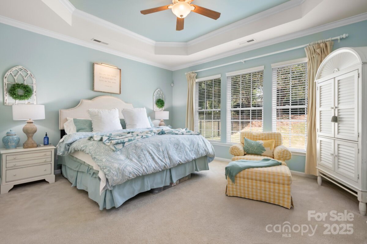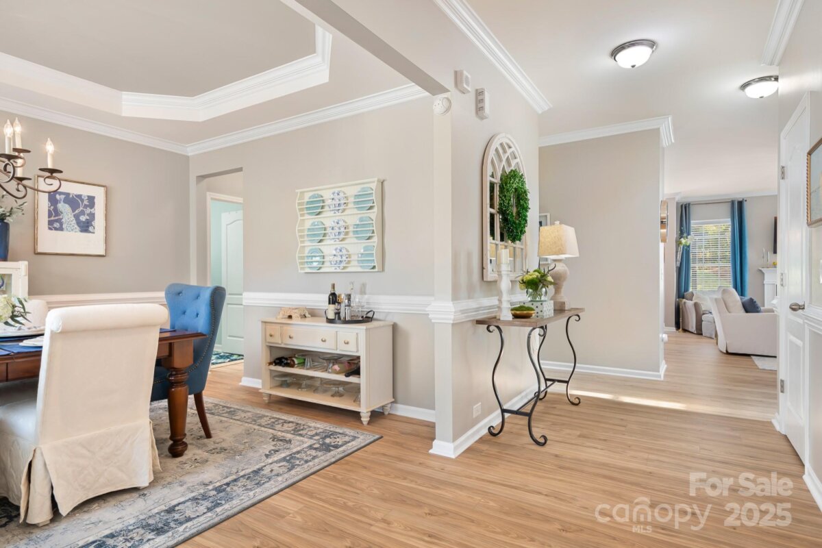 Distinguished by its refined architecture and verdant surroundings, this residence in Ardrey Woods presents an elevated living experience in South Charlotte's esteemed Ballantyne area. The thoughtfully designed interior harmonizes with the natural environment through expansive windows and sophisticated finishes throughout multiple living spaces. The residence offers a selection of formal and casual gathering areas, anchored by a chef-inspired kitchen featuring solid surface countertops, soft closing cabinets and premium stainless-steel appliances. Multiple bedrooms provide private retreats, while the main level primary suite showcases a luxurious bath and generous walk-in closet. Architectural details include vaulted ceilings, plank flooring, and an elegant gas fireplace that serves as a focal point for entertaining. The exterior grounds embrace outdoor living with a private fenced yard and patio, perfect for al fresco dining and relaxation. This address grants exclusive access to Ardrey Woods' exceptional amenities, including an outdoor pool, pickleball courts, and walking trails winding through preserved woodlands. A 35-acre nature preserve borders the community, creating an atmosphere of tranquility. The location offers exceptional convenience to Ballantyne's curated selection of retail and dining establishments, while providing swift access to major transportation corridors and Charlotte Douglas International Airport. The property resides within the attendance zone of highly regarded schools, including Ardrey Kell High School. This refined residence awaits its next proprietor in one of South Charlotte's most distinguished communities.