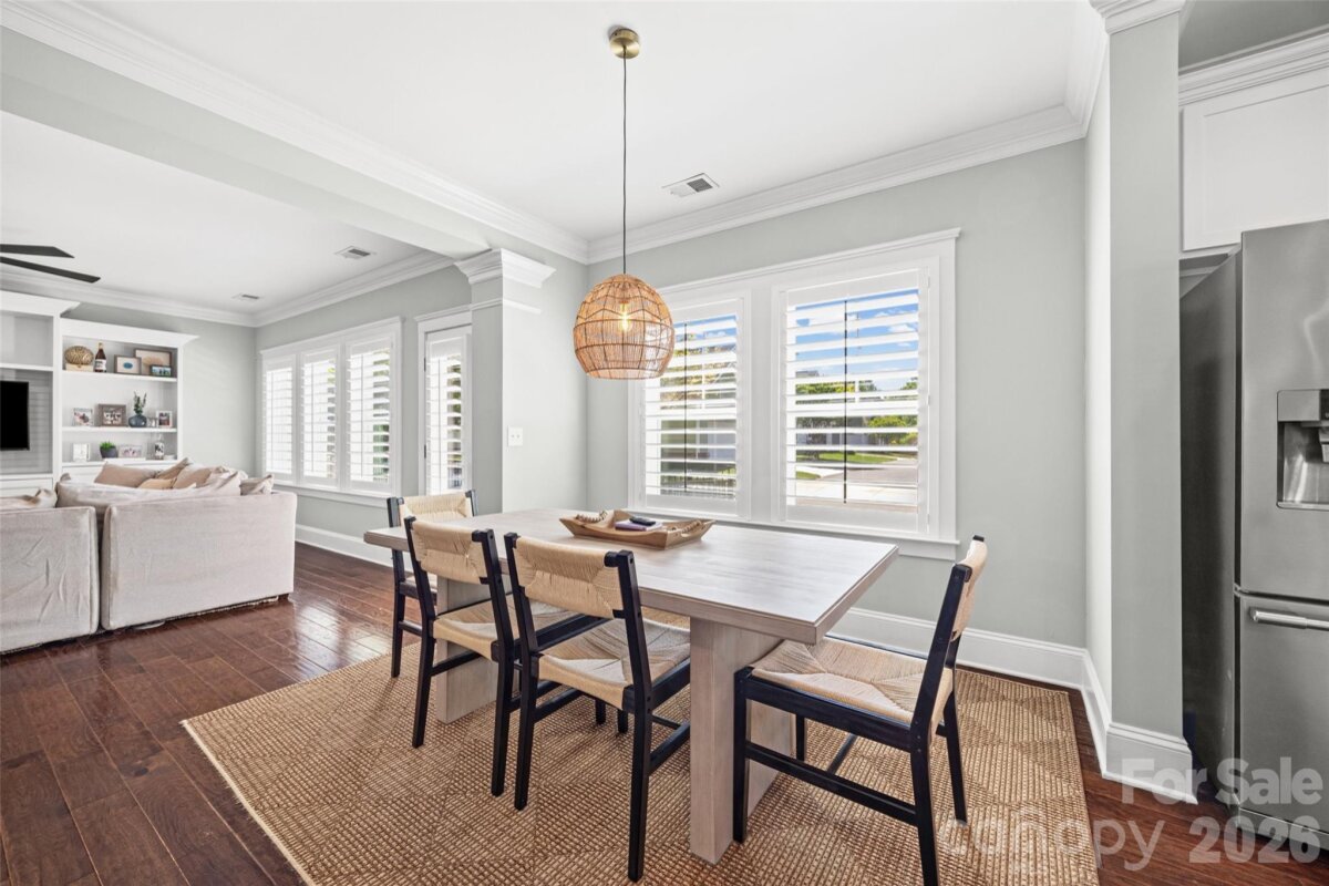 Perfectly positioned on a corner lot at the end of a quiet street, directly across from the neighborhood dog park, this beautifully maintained home offers both comfort and convenience in an unbeatable location. With easy access to I-85, commuting to Charlotte is effortless, while the charm, dining, and local shops of downtown Belmont are just minutes away. The main level features a bright, open-concept layout designed for everyday living and entertaining, with seamless flow between the kitchen, dining, and living spaces. You’ll love the updated kitchen, complete with stainless steel appliances, granite countertops, tile backsplash, farmhouse sink, and a spacious pantry. Step outside to the side patio and fenced yard—perfect for relaxing or hosting. Recent updates include fresh paint, and beautifully updated bathrooms, giving the home a clean, modern feel. The spacious primary suite offers a comfortable retreat with hardwood floors, a sitting or workspace area, and a well-appointed en-suite bath featuring dual vanities, a large tiled walk-in shower, and a generous closet. Additional upgrades include plantation shutters, crown molding, custom lighting, a drop zone at the garage entry, built-in beverage fridge, and a thoughtfully designed laundry room with cabinetry and a built-in ironing board. Outdoor features a hardscape patio with lighting, and a fenced yard. The community itself is a standout, offering a welcoming atmosphere with amenities such as a pool, clubhouse, playground, green spaces, and a dog park—making it easy to enjoy both neighborhood living and an active lifestyle.
