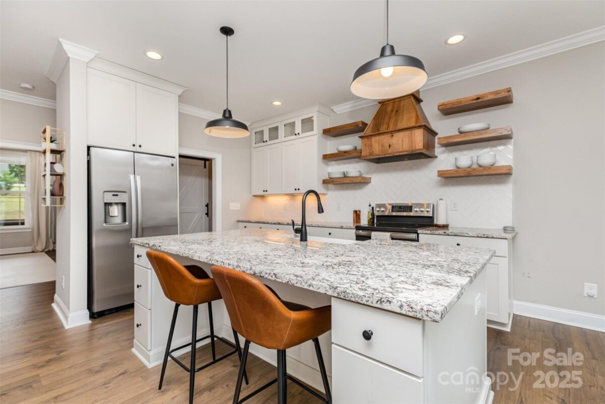 Welcome to 974 Armstrong Road in beautiful Belmont! This stunning 4-bedroom, 3.5-bath home sits on a private 1.52-acre lot with a fenced backyard and no HOA. The open floor plan features custom finishes throughout, including accent walls in the primary suite and formal dining room, and high-end lighting that adds a touch of luxury. The chef’s kitchen impresses with a large island, farmhouse sink, stainless steel appliances, gorgeous hood vent, and open shelving. The main-floor primary suite offers a spa-like bathroom with a walk-in shower, soaking tub, and dual vanities. A split-bedroom layout provides privacy, with a Jack and Jill bath connecting two secondary bedrooms. Upstairs, you’ll find a second primary bedroom and a bonus room. Enjoy peaceful outdoor living on the covered back deck overlooking your expansive, tree-lined property or enjoy your morning coffee on the spacious front porch. This home blends modern elegance with country charm—all just minutes from Belmont’s shops, dining, and top-rated schools.