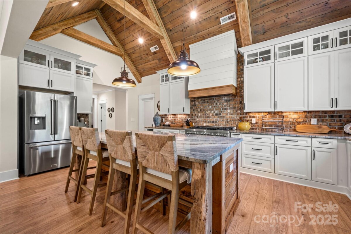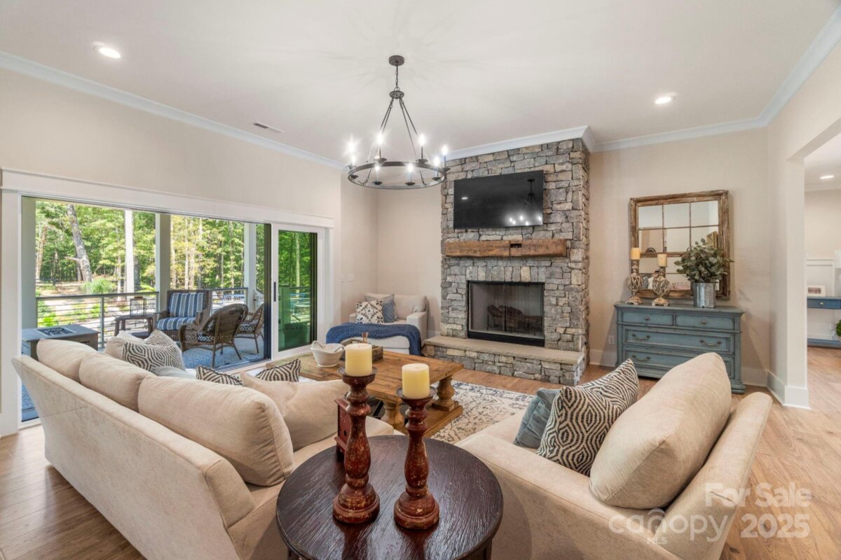 Welcome Home!! This luxurious Estate is tucked at the end of a winding quarter-mile driveway that weaves through mature carolina hardwoods and vibrant seasonal foliage, this custom country estate home offers a striking first impression that carries through every detail of the build. The home is built and accented with timeworn reclaimed and locally sourced timber, oak, brick and stone that give the structure its strength and soul. Inside, the chefs kitchen is the heart of the home, anchored by massive 8x8 reclaimed timbers in a truss-style ceiling, set against a backdrop of oak nickel gap for a cozy, layered feel. Z-line appliances with a 48 inch gas range. Many extra touches featuring hand-hewn timbers from centuries past were used for the newel posts, with locally reclaimed oak crafted into the handrails. Around the kitchens oversized picture window, more hand-hewn framing ties the craftsmanship together, blurring the line between past and present. At the center of the living space, a natural stone fireplace adds warmth and texture, pulling in the same rugged elegance found throughout the design. The home features a half court indoor basketball/pickelball court, oversized saltwater pool with jacuzzi and grotto. Outdoor putting green, detached workshop/garage. Everything you need for entertaining. For added protection a safe room was built into the primary bedroom for your family extra security. Office upstairs can be used as a 6th bedroom, but septic permit is for 5 bedroom. Zoned for new Lake Wylie High School