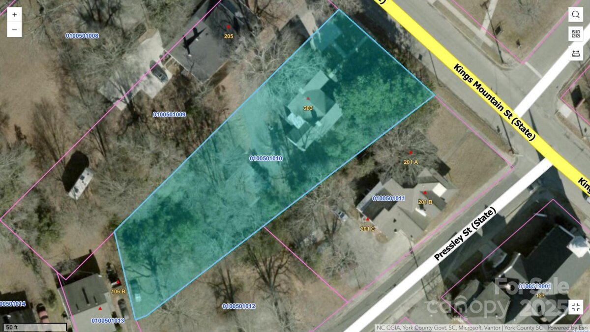 203 Kings Mountain is ready to captivate those who appreciate the glamour of yesteryear & appreciate its grandur, restoration & exceptional livability. This 1880's piece of history exudes southern charm & hospitality. Inside you will love the high ceilings, orig. heart of pine wood floors & the spacious foyer w/the original wooden staircase. There are 7 FP's but 5 have been capped off. The LR & DR have gas logs. The kitchen boasts a walk-in pantry, s/s appliances & lots of windows. Flexible dining space off kitchen—ideal as dining, den, or extra living area. The Primary Suite is on the main floor. The bath has dbl vanities & a tub/shower. Upstairs there are 3 BRs & a full BA w/claw foot tub. Outside you will find a det. 2 car carport & a storage building. Huge trees surround this lovely home w/ the focal point being the 100+ yr old magnolia tree in the front yard. You will love the prime in-town location, close to elementary school, restaurants, shops, & parks. Don't miss the opportunity to own this historical home in Downtown Clover.