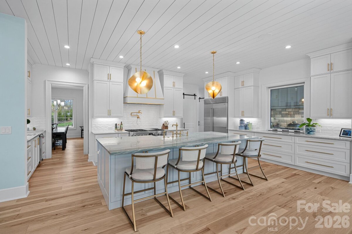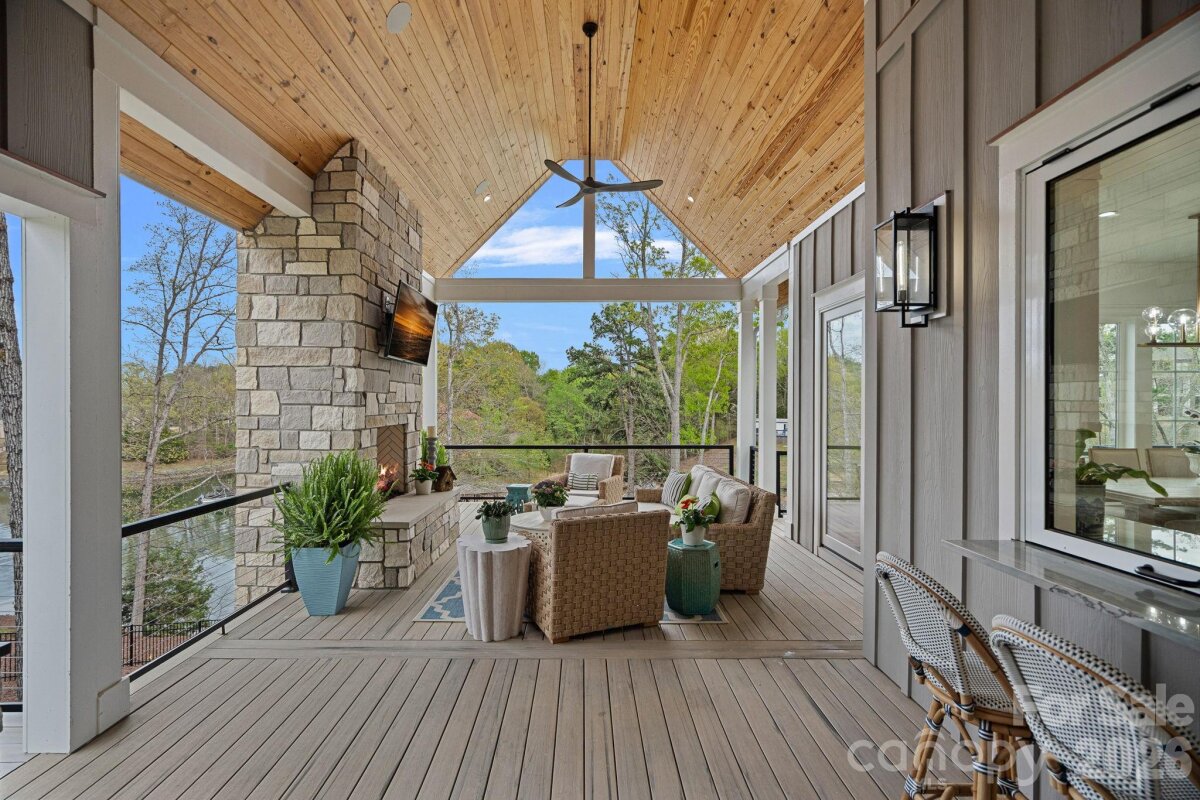 Luxury Waterfront Living on Lake Wylie Experience the pinnacle of lakefront luxury with this newly built 2024 custom residence nestled along the shores of Lake Wylie. Privately set on 2.92 acres along a deep-water, dockable homesite, this 4-bedroom, 4.5-bathroom estate captures breathtaking panoramic views and unforgettable sunsets—offering a rare combination of space, seclusion, and refined waterfront living. Inside, refined elegance meets elevated functionality with soaring ceilings, expansive windows, and rich pecan engineered hardwoods flowing throughout the main living spaces. The open-concept layout is anchored by a stunning chef’s kitchen featuring a suite of premier appliances, including a **Wolf range and microwave, Sub-Zero refrigerator, freezer, and wine storage, along with a KitchenAid dishwasher and ice maker. A well-appointed scullery adds both function and elegance—perfect for prep, storage, and seamless entertaining. Statement living spaces are enhanced by artisan details, including dramatic Isokern fireplaces and custom Cooperstone Natural Stone finishes, with a striking Wichita White interior feature wall and a curated exterior blend of charcoal, Castle Grey, and Austin White—creating timeless architectural appeal. The primary suite offers a private retreat with serene water views and a spa-inspired bath, highlighted by a designer Miseno tub filler. Thoughtful upgrades such as Visual Comfort ceiling fans and a fully integrated Sonos sound system—both indoors and out—create a seamless blend of comfort, ambiance, and modern convenience. Seamless indoor-outdoor living continues with a covered patio, low-maintenance composite decking, and a fully equipped outdoor kitchen featuring premium **Coyote Outdoor Living appliances—perfect for lakeside entertaining year-round. A full, unfinished walk-out basement offers endless potential for customization—whether envisioning a home theater, fitness studio, or additional living quarters. With nearly three acres of privacy, direct access to deep water, and the ability to build your own private dock, this exceptional property invites boating, paddleboarding, and the ultimate Lake Wylie lifestyle—all just a short drive from the conveniences of the surrounding area.