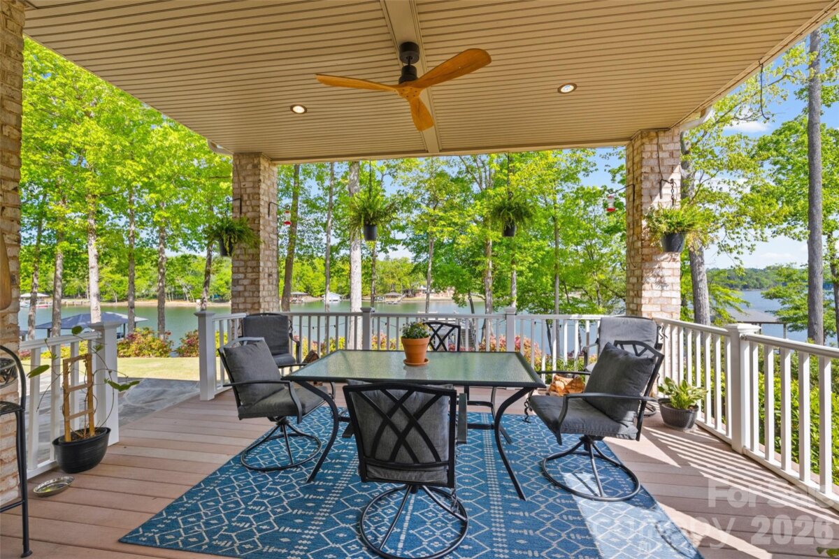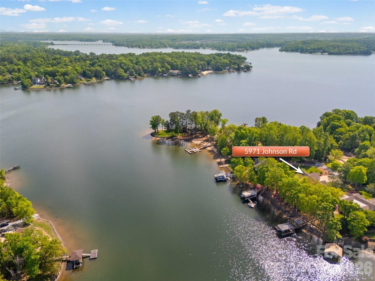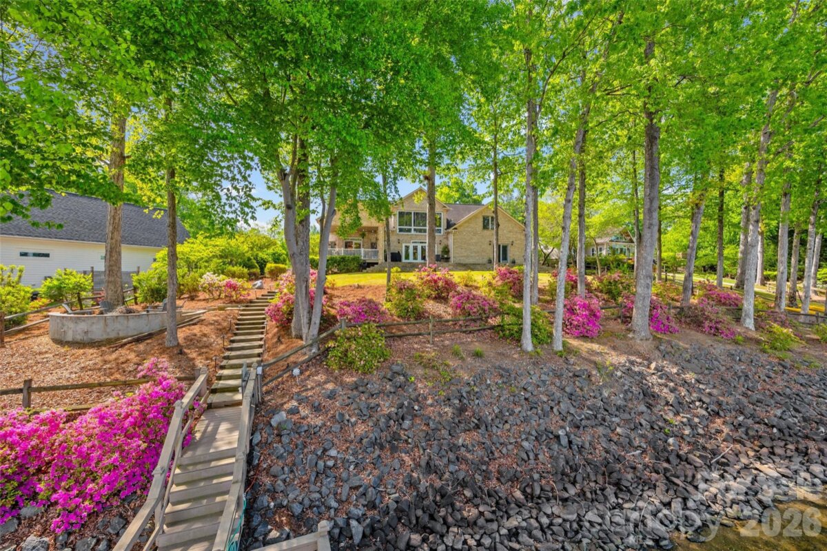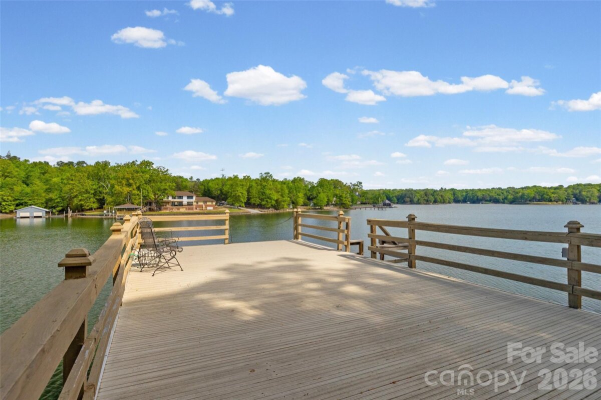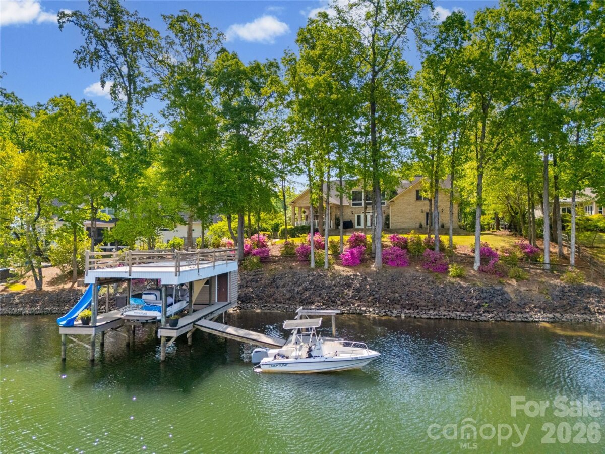 Welcome to lake living at its finest on highly sought-after Johnson Road in Clover on beautiful Lake Wylie! This exceptional .69-acre flat retreat features a rare 149 feet of shoreline lined with Firecracker Azalea, paired with breathtaking panoramic lake views. Enjoy stunning sunrises from the kitchen windows and unforgettable sunsets from the back patio, creating the perfect backdrop for everyday living. Designed with flexibility in mind, the layout is ideal for multi-generational living or room to spread out, offering space and privacy for everyone. Inside, you’ll find 9’ ceilings and beautiful engineered hardwood floors that add warmth and timeless character throughout the main living areas. The bright, airy kitchen is thoughtfully appointed with double ovens, a gas stovetop, soft-close drawers, and even a built-in trash compactor—perfect for both everyday use and entertaining. The adjacent great room showcases a beautiful custom gas fireplace, perfectly paired with built-in floating shelves for a clean, modern look. Enjoy seamless indoor-outdoor living with three sets of French doors located in the primary bedroom, dining room, and family room, two of which feature retractable screens for added comfort and convenience. The spacious primary suite offers private access to the back patio, multiple closets, and a luxurious en-suite bath with tall ceilings, a steam shower, and soaking tub. Additional highlights include an oversized laundry/keeping room with sink and abundant storage, as well as a whole house fan for added efficiency and comfort. Step outside to the covered Trex patio and take in peaceful views and a true waterfront lifestyle. The backyard showcases lush Zoysia grass both front and back, along with a custom fire pit perfect for cozy evenings by the lake. The double-decker deep water dock is designed for both fun and function, complete with a slide, boat lift, sundeck, and floating dock. The dock offers ample storage with two deck boxes and two storage closets—perfect for keeping all your water toys and gear organized. The dock is fully permitted and truly a must-see. Whether you’re looking for a full-time residence or a lakefront retreat, this property offers the perfect blend of comfort, thoughtful upgrades, functionality, and unforgettable views.