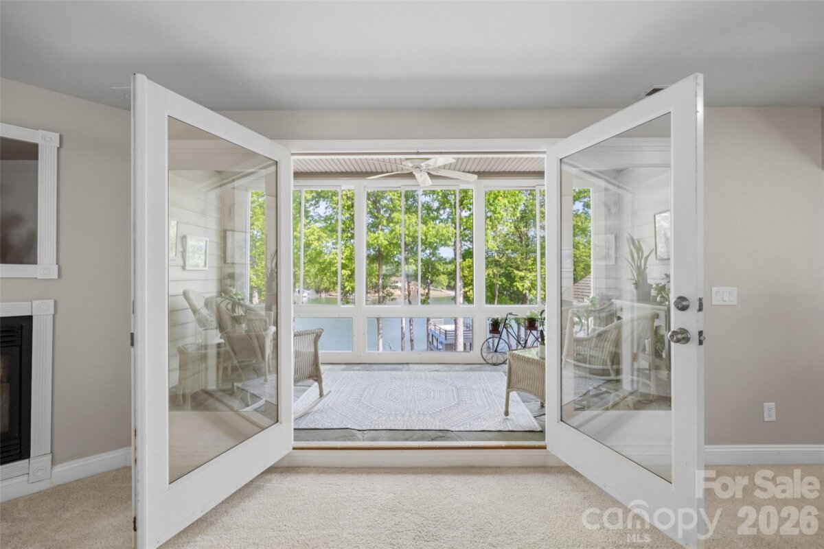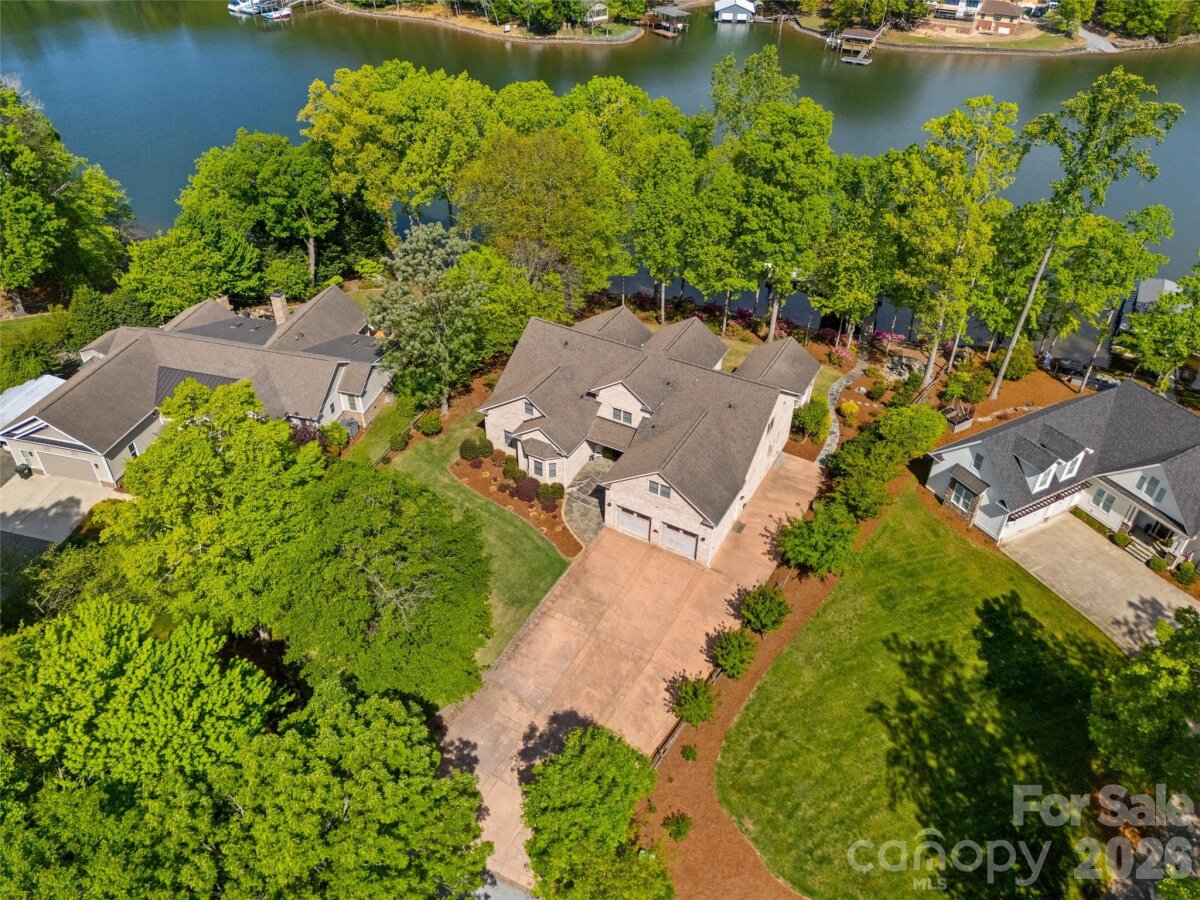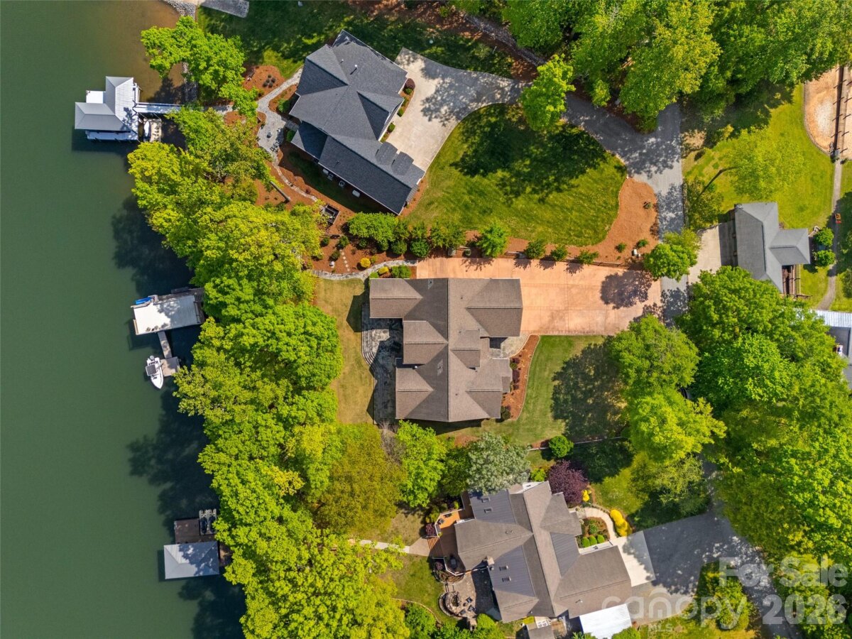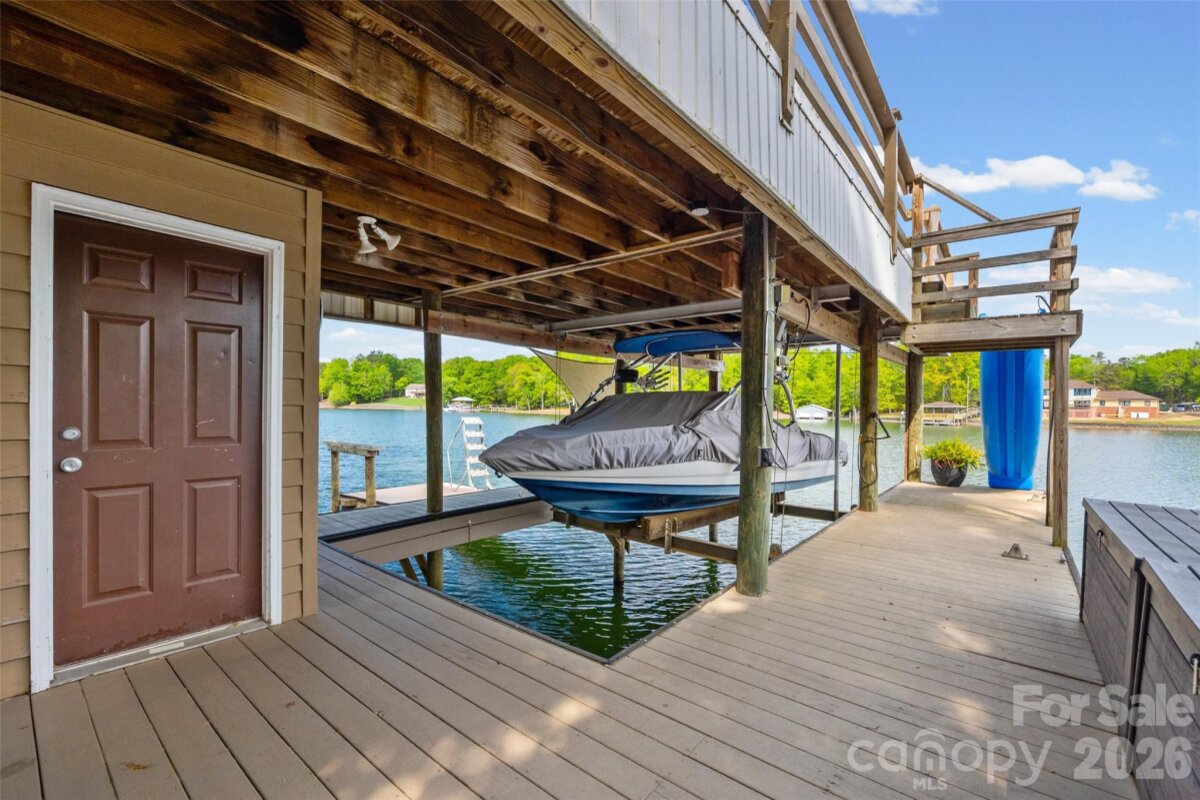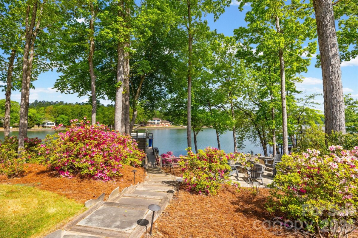 Welcome to lake living at its finest on highly sought-after Johnson Road in Clover on beautiful Lake Wylie! This exceptional .69-acre flat retreat features a rare 149 feet of shoreline lined with Firecracker Azalea, paired with breathtaking panoramic lake views. Enjoy stunning sunrises from the kitchen windows and unforgettable sunsets from the back patio, creating the perfect backdrop for everyday living. Designed with flexibility in mind, the layout is ideal for multi-generational living or room to spread out, offering space and privacy for everyone. Inside, you’ll find 9’ ceilings and beautiful engineered hardwood floors that add warmth and timeless character throughout the main living areas. The bright, airy kitchen is thoughtfully appointed with double ovens, a gas stovetop, soft-close drawers, and even a built-in trash compactor—perfect for both everyday use and entertaining. The adjacent great room showcases a beautiful custom gas fireplace, perfectly paired with built-in floating shelves for a clean, modern look. Enjoy seamless indoor-outdoor living with three sets of French doors located in the primary bedroom, dining room, and family room, two of which feature retractable screens for added comfort and convenience. The spacious primary suite offers private access to the back patio, multiple closets, and a luxurious en-suite bath with tall ceilings, a steam shower, and soaking tub. Additional highlights include an oversized laundry/keeping room with sink and abundant storage, as well as a whole house fan for added efficiency and comfort. Step outside to the covered Trex patio and take in peaceful views and a true waterfront lifestyle. The backyard showcases lush Zoysia grass both front and back, along with a custom fire pit perfect for cozy evenings by the lake. The double-decker deep water dock is designed for both fun and function, complete with a slide, boat lift, sundeck, and floating dock. The dock offers ample storage with two deck boxes and two storage closets—perfect for keeping all your water toys and gear organized. The dock is fully permitted and truly a must-see. Whether you’re looking for a full-time residence or a lakefront retreat, this property offers the perfect blend of comfort, thoughtful upgrades, functionality, and unforgettable views.