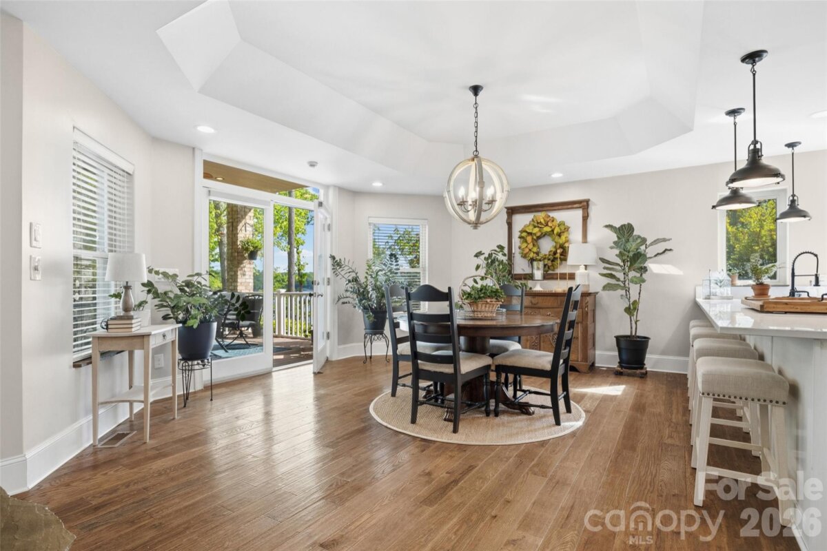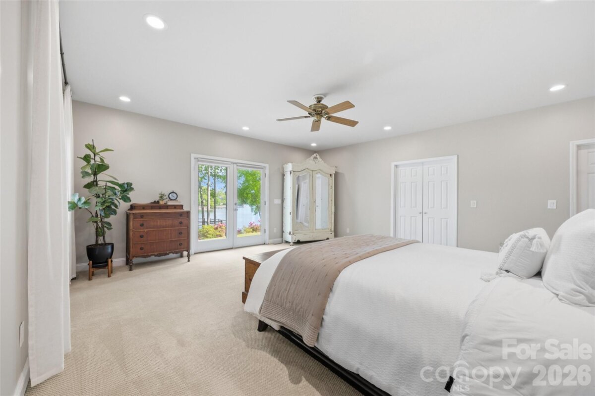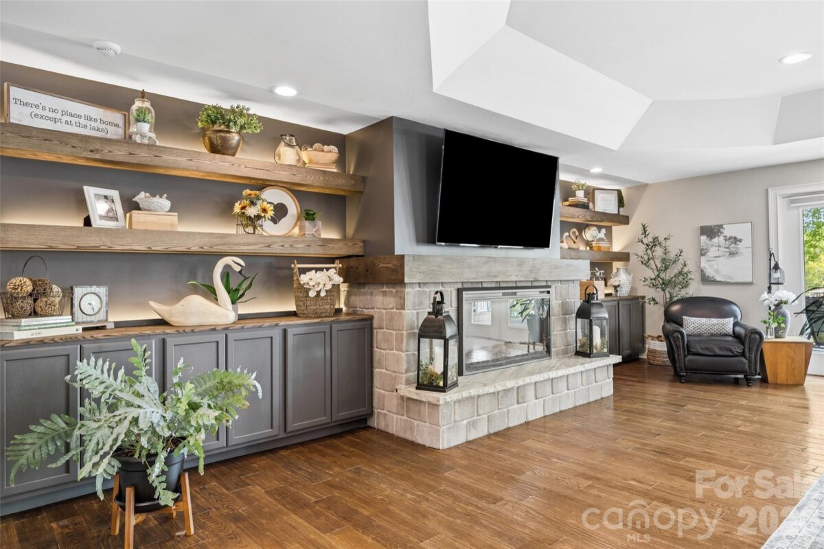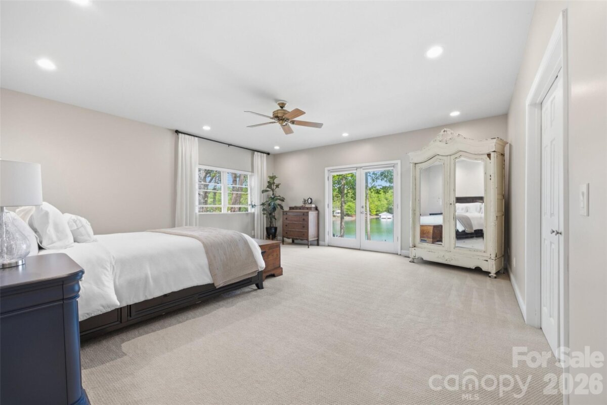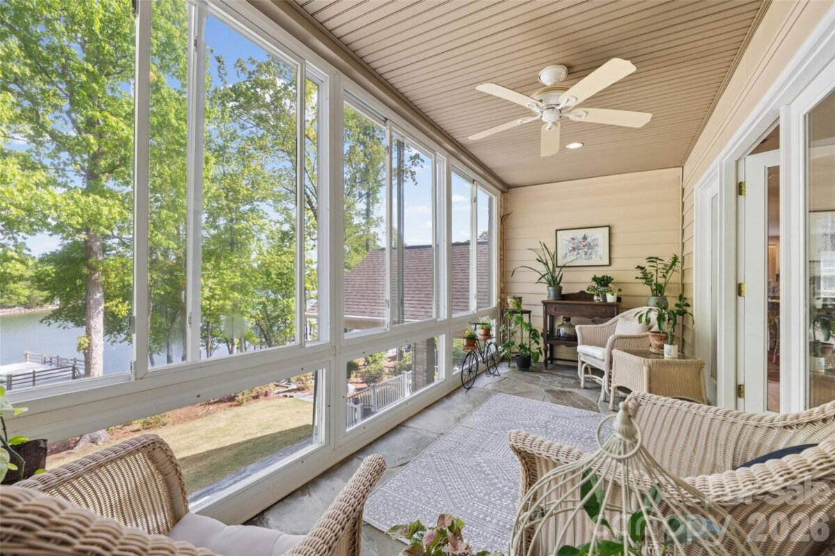 Welcome to lake living at its finest on highly sought-after Johnson Road in Clover on beautiful Lake Wylie! This exceptional .69-acre flat retreat features a rare 149 feet of shoreline lined with Firecracker Azalea, paired with breathtaking panoramic lake views. Enjoy stunning sunrises from the kitchen windows and unforgettable sunsets from the back patio, creating the perfect backdrop for everyday living. Designed with flexibility in mind, the layout is ideal for multi-generational living or room to spread out, offering space and privacy for everyone. Inside, you’ll find 9’ ceilings and beautiful engineered hardwood floors that add warmth and timeless character throughout the main living areas. The bright, airy kitchen is thoughtfully appointed with double ovens, a gas stovetop, soft-close drawers, and even a built-in trash compactor—perfect for both everyday use and entertaining. The adjacent great room showcases a beautiful custom gas fireplace, perfectly paired with built-in floating shelves for a clean, modern look. Enjoy seamless indoor-outdoor living with three sets of French doors located in the primary bedroom, dining room, and family room, two of which feature retractable screens for added comfort and convenience. The spacious primary suite offers private access to the back patio, multiple closets, and a luxurious en-suite bath with tall ceilings, a steam shower, and soaking tub. Additional highlights include an oversized laundry/keeping room with sink and abundant storage, as well as a whole house fan for added efficiency and comfort. Step outside to the covered Trex patio and take in peaceful views and a true waterfront lifestyle. The backyard showcases lush Zoysia grass both front and back, along with a custom fire pit perfect for cozy evenings by the lake. The double-decker deep water dock is designed for both fun and function, complete with a slide, boat lift, sundeck, and floating dock. The dock offers ample storage with two deck boxes and two storage closets—perfect for keeping all your water toys and gear organized. The dock is fully permitted and truly a must-see. Whether you’re looking for a full-time residence or a lakefront retreat, this property offers the perfect blend of comfort, thoughtful upgrades, functionality, and unforgettable views.