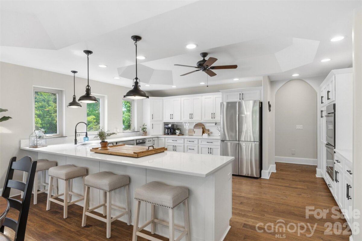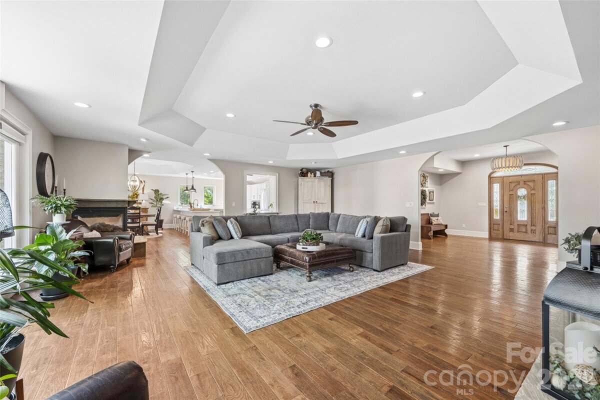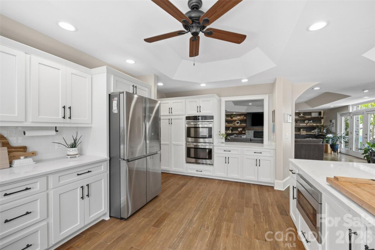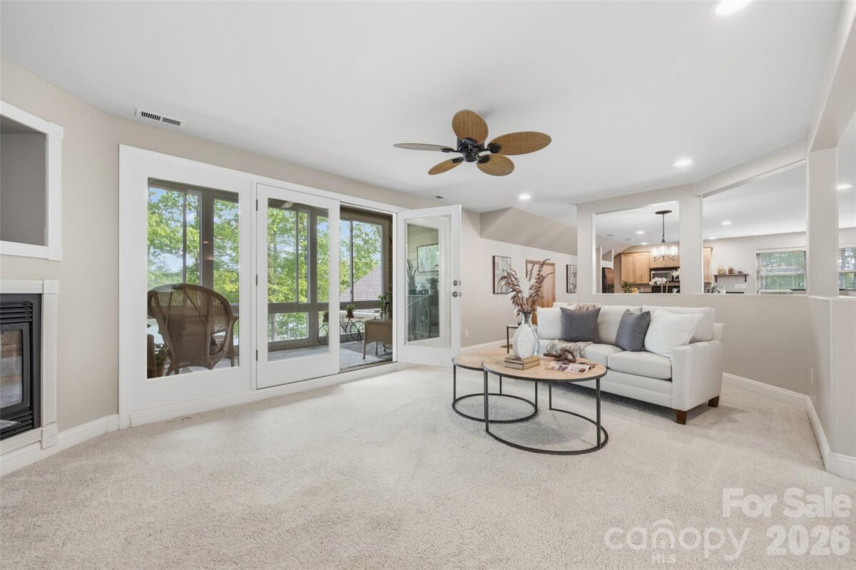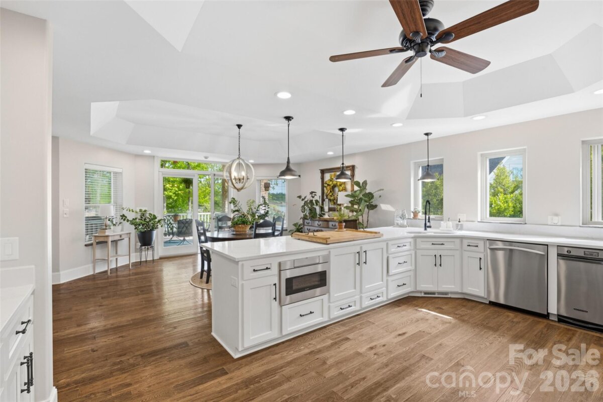 Welcome to lake living at its finest on highly sought-after Johnson Road in Clover on beautiful Lake Wylie! This exceptional .69-acre flat retreat features a rare 149 feet of shoreline lined with Firecracker Azalea, paired with breathtaking panoramic lake views. Enjoy stunning sunrises from the kitchen windows and unforgettable sunsets from the back patio, creating the perfect backdrop for everyday living. Designed with flexibility in mind, the layout is ideal for multi-generational living or room to spread out, offering space and privacy for everyone. Inside, you’ll find 9’ ceilings and beautiful engineered hardwood floors that add warmth and timeless character throughout the main living areas. The bright, airy kitchen is thoughtfully appointed with double ovens, a gas stovetop, soft-close drawers, and even a built-in trash compactor—perfect for both everyday use and entertaining. The adjacent great room showcases a beautiful custom gas fireplace, perfectly paired with built-in floating shelves for a clean, modern look. Enjoy seamless indoor-outdoor living with three sets of French doors located in the primary bedroom, dining room, and family room, two of which feature retractable screens for added comfort and convenience. The spacious primary suite offers private access to the back patio, multiple closets, and a luxurious en-suite bath with tall ceilings, a steam shower, and soaking tub. Additional highlights include an oversized laundry/keeping room with sink and abundant storage, as well as a whole house fan for added efficiency and comfort. Step outside to the covered Trex patio and take in peaceful views and a true waterfront lifestyle. The backyard showcases lush Zoysia grass both front and back, along with a custom fire pit perfect for cozy evenings by the lake. The double-decker deep water dock is designed for both fun and function, complete with a slide, boat lift, sundeck, and floating dock. The dock offers ample storage with two deck boxes and two storage closets—perfect for keeping all your water toys and gear organized. The dock is fully permitted and truly a must-see. Whether you’re looking for a full-time residence or a lakefront retreat, this property offers the perfect blend of comfort, thoughtful upgrades, functionality, and unforgettable views.