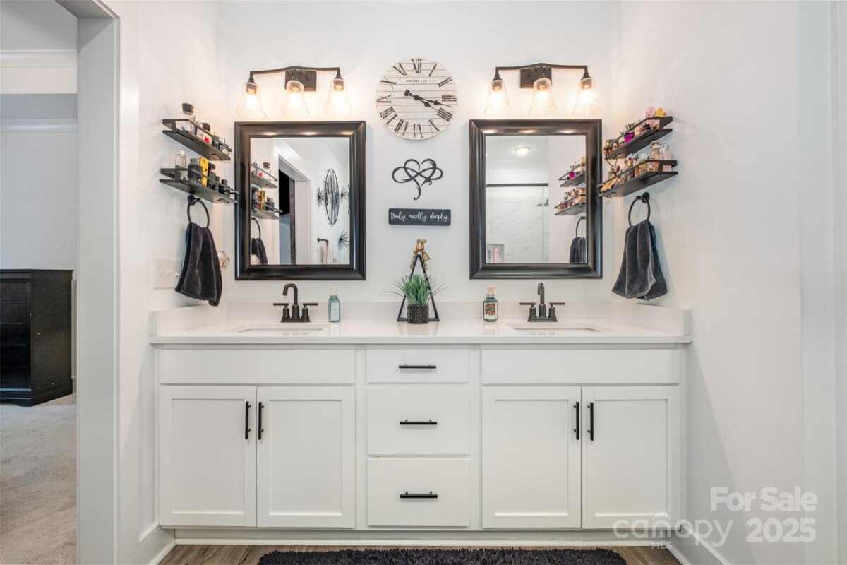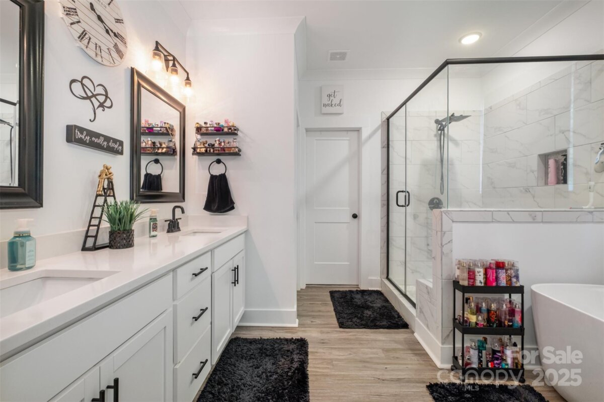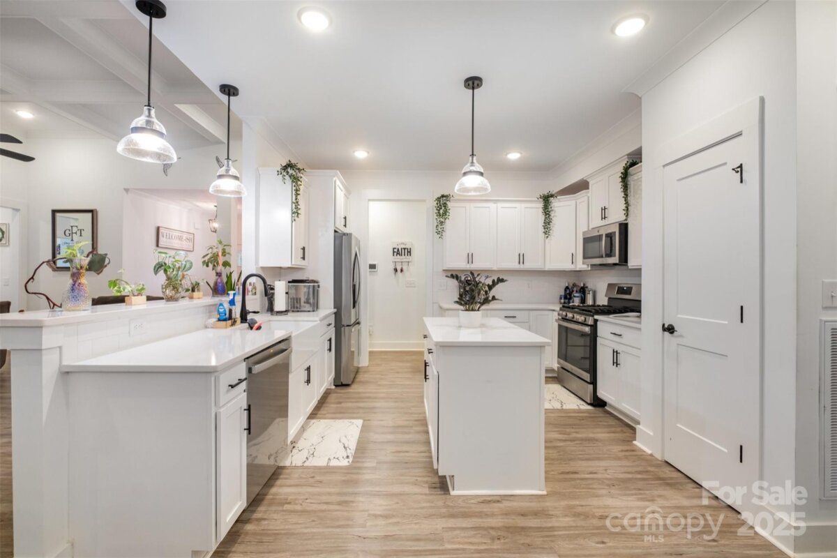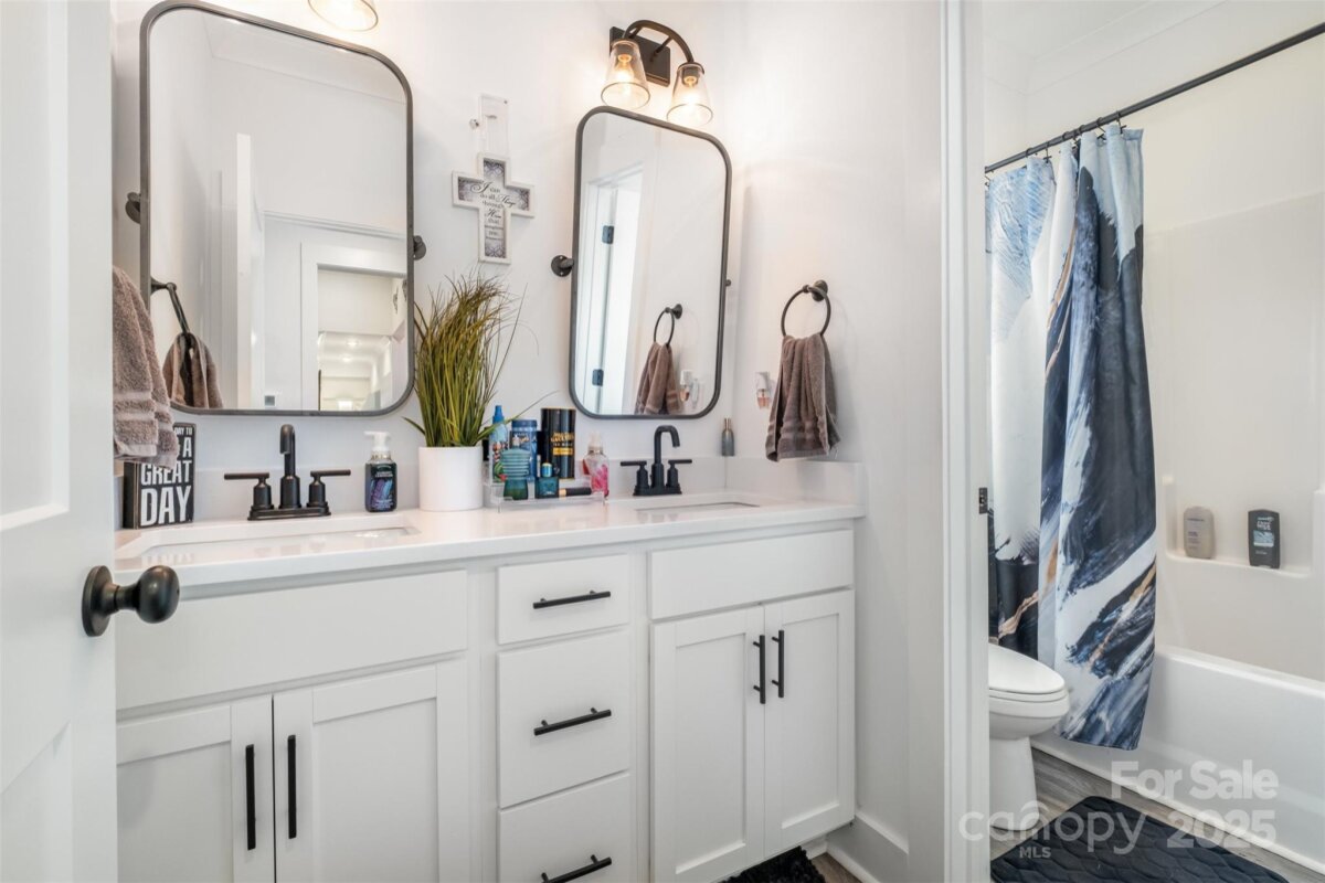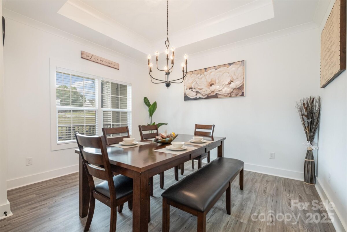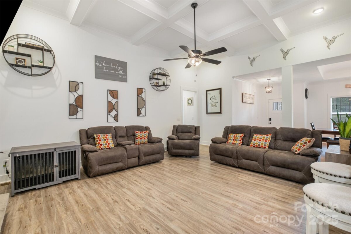 Tucked away in a quiet cul-de-sac, this beautiful home sits on a generous 1.21-acre lot in the highly desirable Sanders Landing community—part of the top-ranked Clover School District. Designed with comfort and style in mind, the home features a spacious primary suite on the main level, an open floor plan with a cozy fireplace, and elegant coffered ceilings in the living area. Enjoy peaceful wooded views from your screened-in porch, perfect for morning coffee or evening relaxation. Luxury touches abound, including luxury vinyl plank flooring, quartz countertops, and a tankless water heater for energy efficiency. A variety of unique ceiling designs add character throughout the home. Upstairs, you'll find a private bedroom with a full bath—ideal for guests—as well as a large media room perfect for movie nights, a home office, or play space. If you’re looking for privacy, space, and modern finishes in one of Clover’s best communities—this is the one!