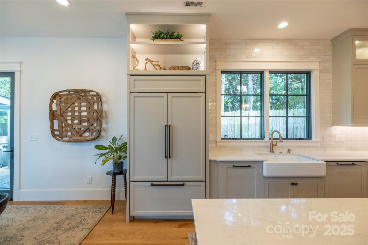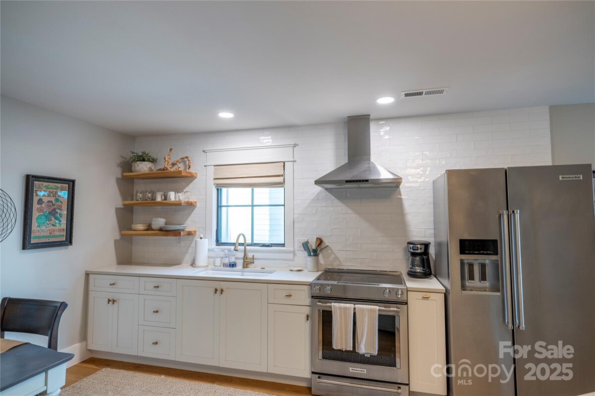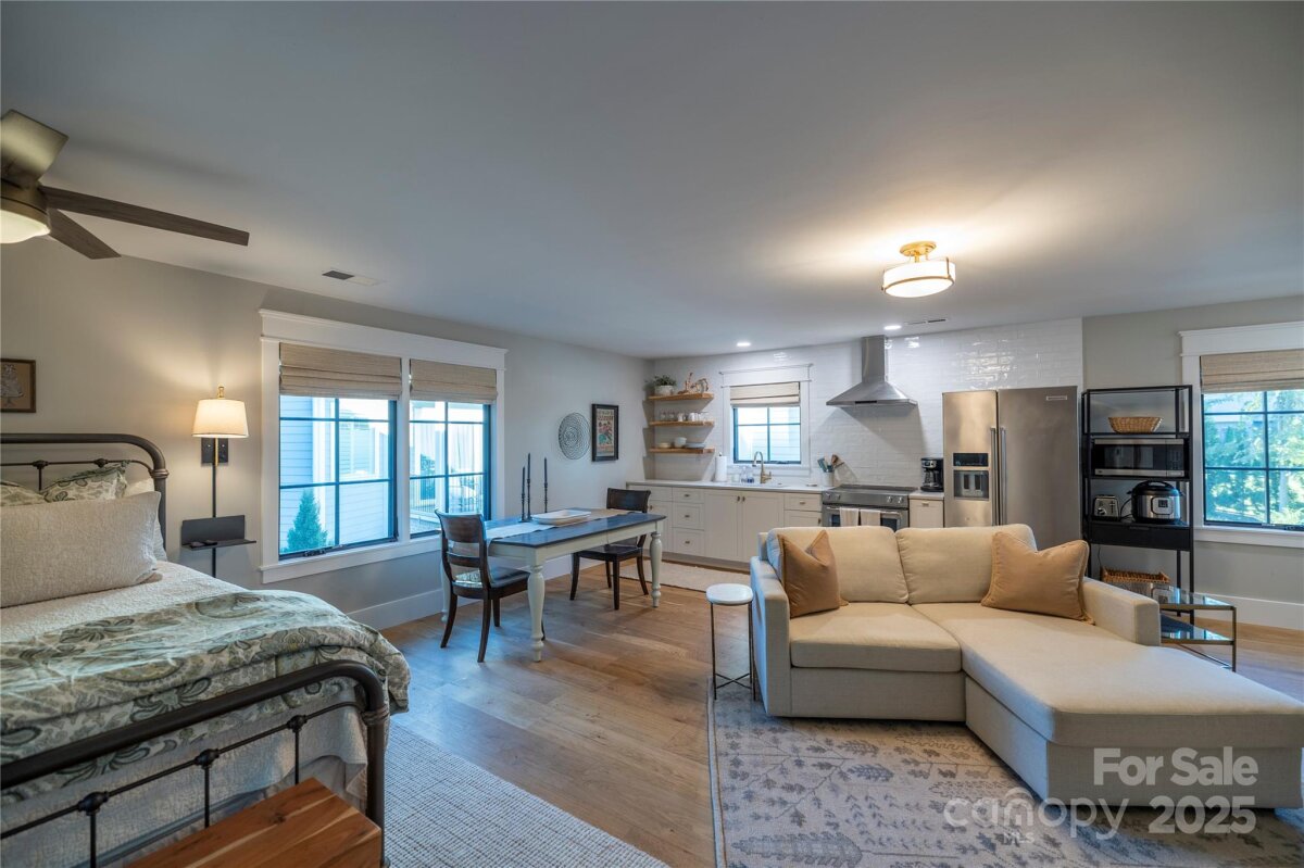 Nestled along the serene waterfront, just outside the peninsula, this stunning, completely renovated 3,300-square-foot home offers the ultimate blend of luxury, convenience, and lake charm. Rebuilt down to the studs, this architectural masterpiece exudes modern elegance and timeless appeal, perfect for those seeking a peaceful escape or a versatile lakeside sanctuary. Step inside to an amazing chef's kitchen, a culinary haven featuring sleek custom cabinetry, premium WOLF and Sub-Zero appliances, a large center island with quartz countertops, and a walk-in pantry—perfect for hosting lavish gatherings or intimate dinners. The open-concept living spaces, bathed in natural light seamlessly connect to the outdoors, while the primary suite on the main level offers a serene retreat. Unwind in the spa-like ensuite with heated floors, a rainfall shower, and dual vanities, complemented by a spacious walk-in closet with custom built-ins. Outside, your private oasis awaits: a covered porch with fireplace and an electric retractable screen creates a year-round outdoor haven, ideal for al fresco dining or relaxing by the water’s edge. The private dock provides direct access for boating, fishing, or sunset cruises, with breathtaking lake views at every turn. The property is enveloped by extensive landscaping, featuring manicured gardens, mature trees, and a fenced yard for privacy and a safe space for pets or play. Elevate your lifestyle with the studio apartment above the conditioned garage, complete with a full kitchen, bathroom, and laundry—perfect for guests or a private home office to complement your lakeside dreams. The climate-controlled garage offers versatile storage or workspace.