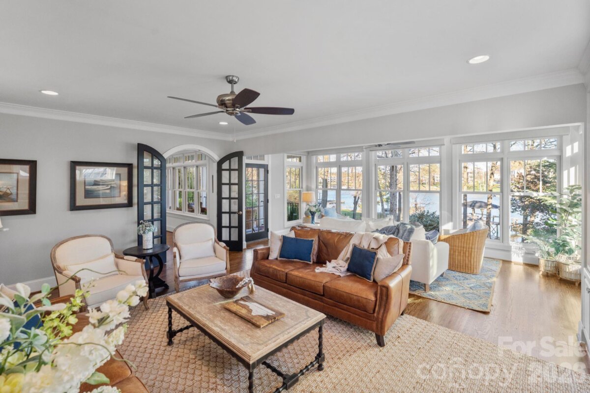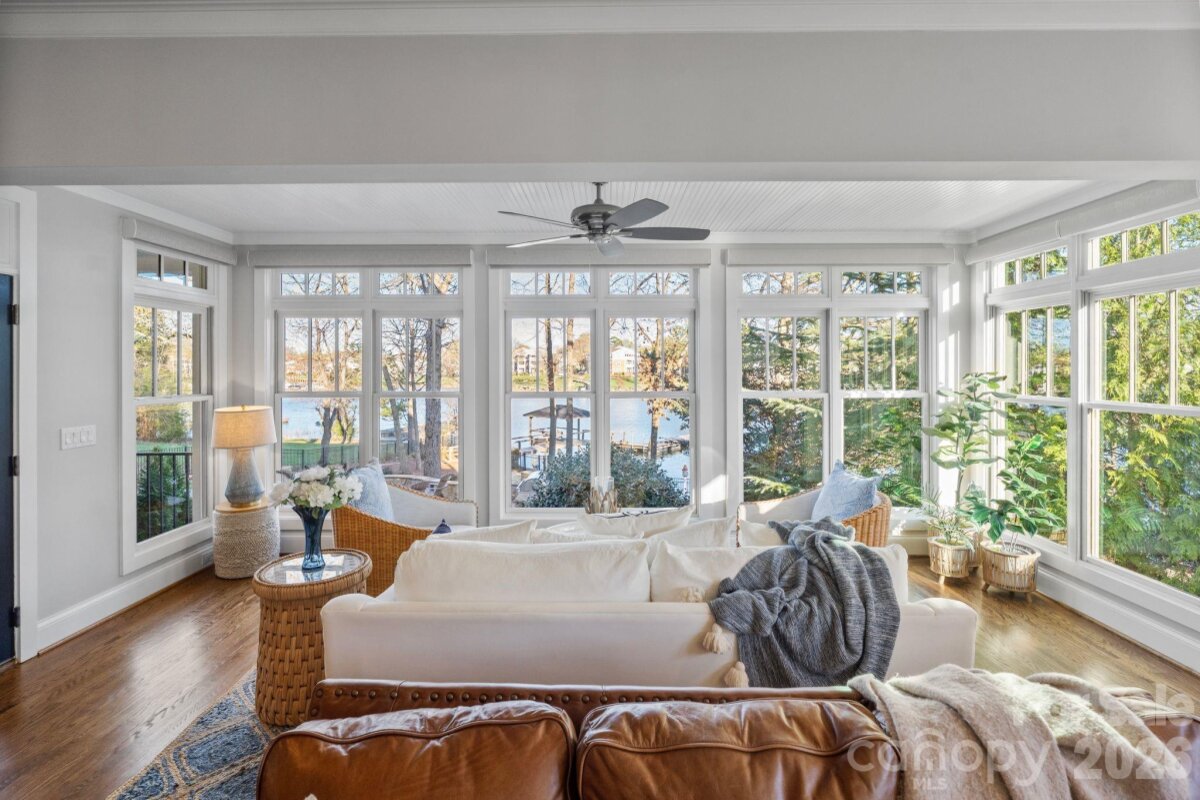 Privately positioned on Lake Norman, this charming farmhouse-style waterfront home offers a rare combination of warmth, privacy, and established lakefront living. Featuring 4 bedrooms, 4 full bathrooms, and 2 powder rooms, the residence is thoughtfully set on approximately one acre, creating a setting that feels both secluded and inviting. A gated entrance and long winding drive introduce the property with a true sense of arrival, setting the tone for a home that balances peaceful retreat with convenient access to nearby dining, shopping, and everyday amenities. Inside, hardwood floors and an open yet inviting floorplan create a comfortable balance between everyday living and effortless entertaining. Thoughtfully connected gathering spaces allow natural light to move throughout the home while maintaining a warm and welcoming atmosphere. The sunroom offers a beautiful place to begin each day, perfectly positioned for enjoying morning coffee while watching the sunrise over the water. The primary suite is thoughtfully designed as a private escape, featuring access to an upper terrace and a spa-inspired bathroom complete with heated floors and a standalone soaking tub. A large custom walk-in closet enhances the suite, while additional storage areas - including space above the carport and another conveniently located off the primary closet . Outdoor living is a defining feature of the property. A spacious back patio provides an ideal setting for hosting family and guests, complete with a fire pit for cool lake evenings and a built-in gas grill that supports easy outdoor dining and entertaining. Open lawn areas and established landscaping create a relaxed lake lifestyle environment, while a gentle transition leads toward the shoreline. A private dock provides direct access to boating, paddle boarding, recreation, and sunset cruises, allowing everyday enjoyment of Lake Norman. Despite its peaceful atmosphere, the home remains conveniently located near shopping, dining, and major access routes, creating a refined balance between privacy and connection. This is a compelling opportunity to secure an established waterfront property with timeless farmhouse appeal in one of Lake Norman’s most sought-after locations.