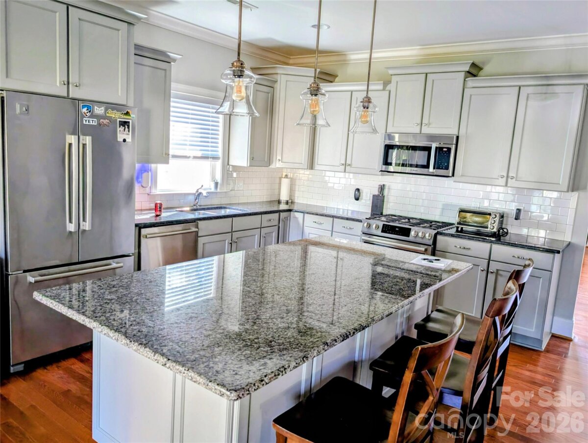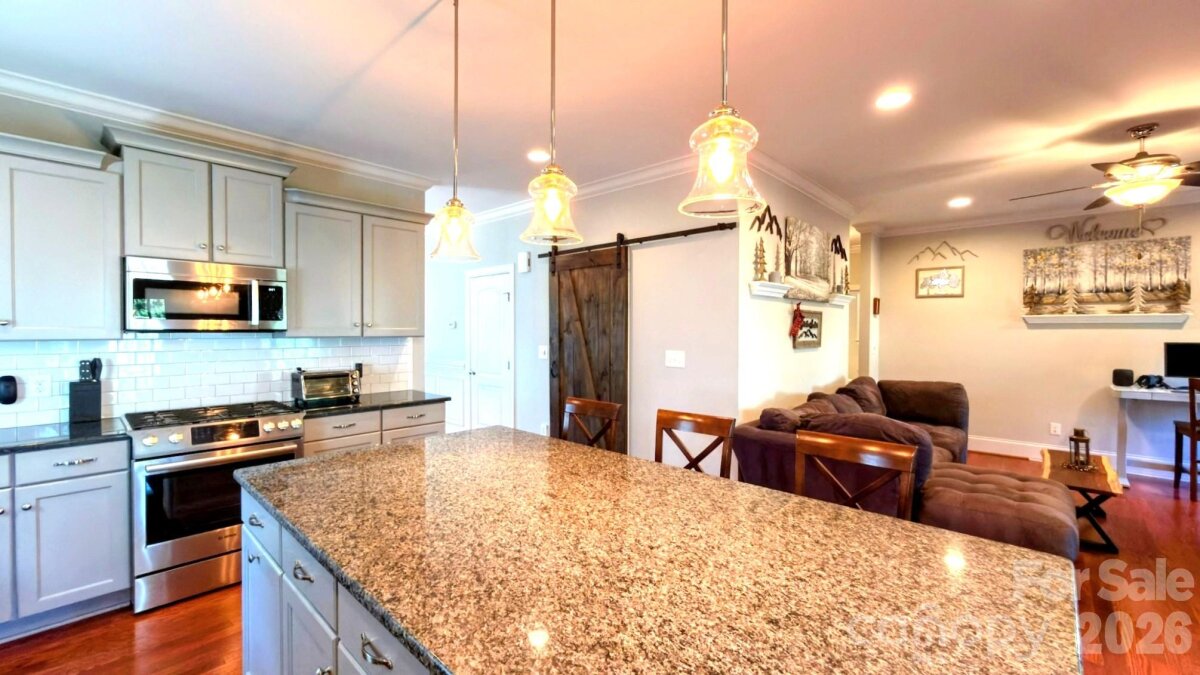 Welcome to this charming and spacious 5-bedroom, 3-bathroom home located in a quiet and friendly neighborhood in the beautiful town of Cornelius. This well-maintained property features an open floor plan with plenty of natural light, a modern kitchen with stainless steel appliances, and a cozy great room area with a fireplace. There is plenty of room in this home to entertain family and friends in a warm setting. With a bedroom and full bathroom downstairs, the possibilities are endless. The master suite includes a walk-in closet and an en-suite bathroom that leaves one with a spa-like experience. Enjoy outdoor living with a large backyard perfect for gatherings and gardening, with an enclosed porch to enjoy nature. Conveniently close to Lake Norman, parks, shopping, and major highways.