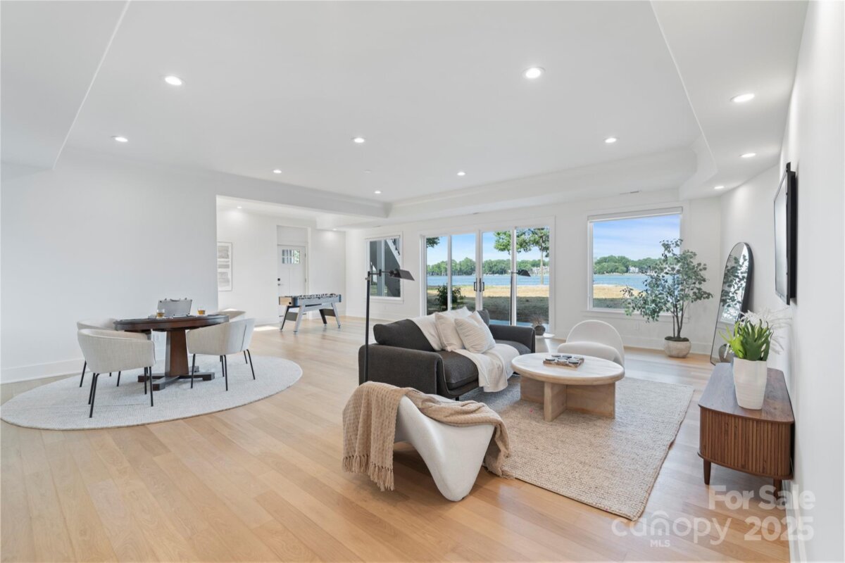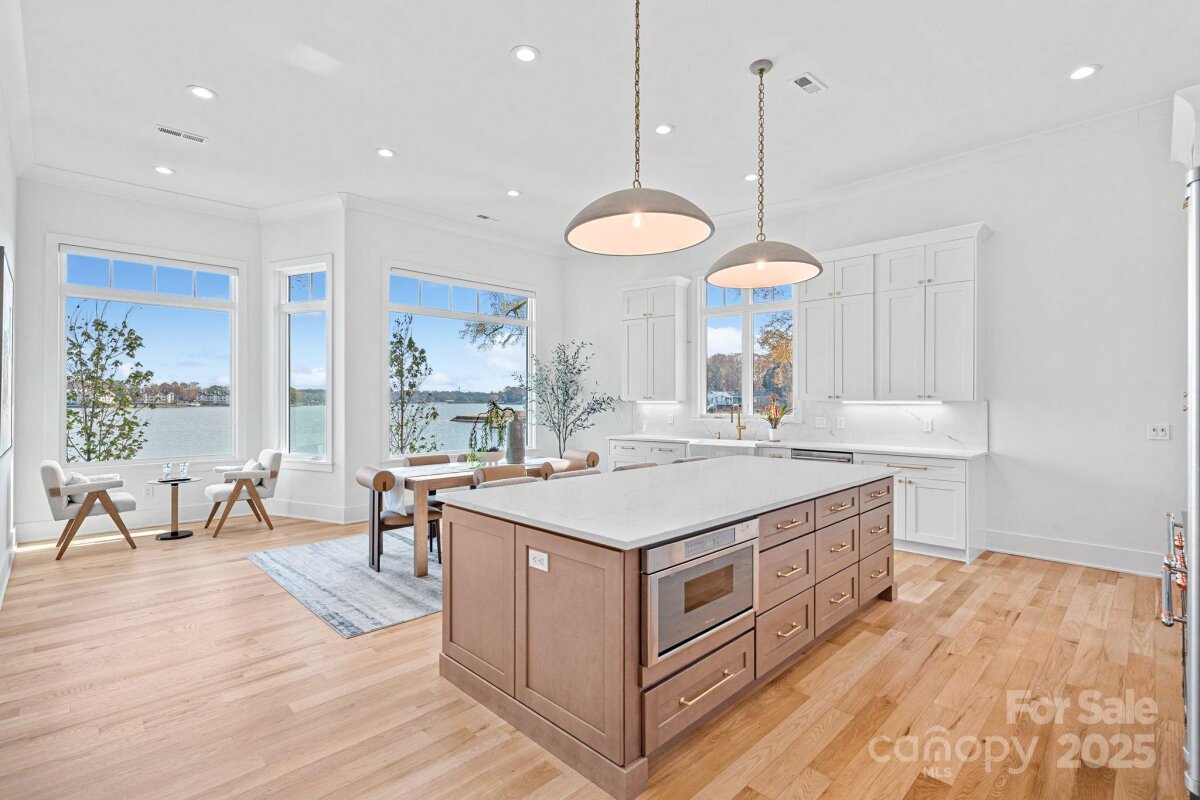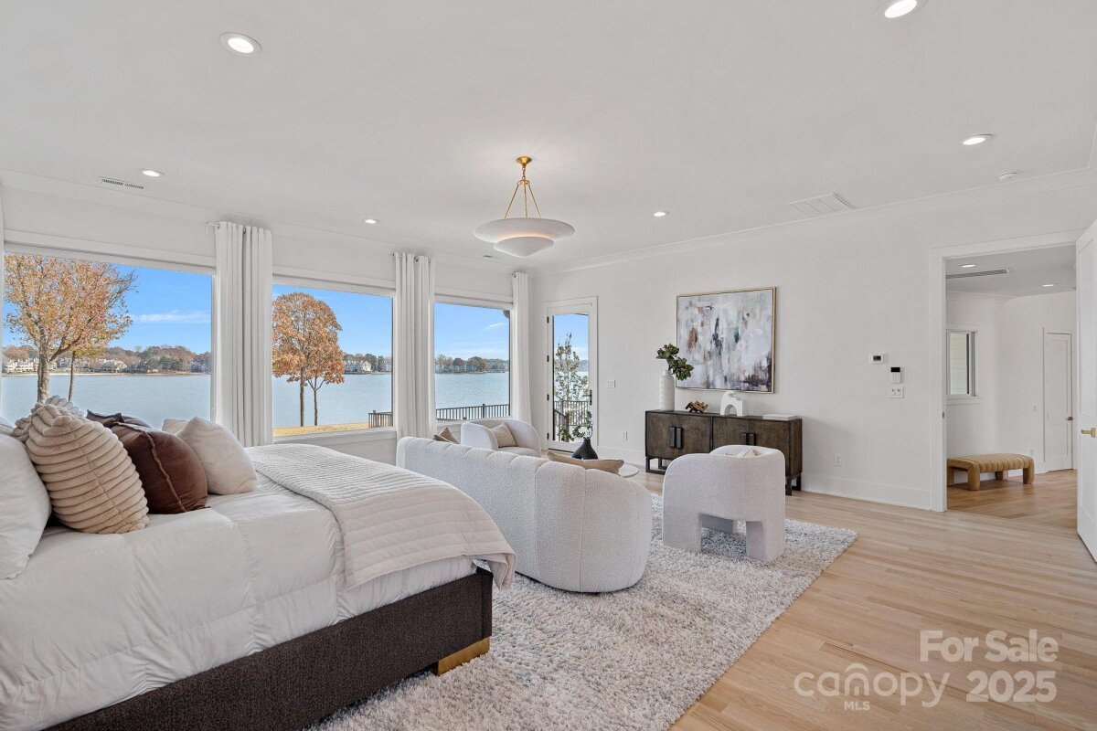 A breathtaking modern farmhouse infused with contemporary design and timeless architectural charm —showcased through clean lines, rich natural textures, and 300+ feet of extraordinary Lake Norman waterfront. Rebuilt from the footings up in 2022—and fully renovated in 2025 with all-new designer selections—this home delivers an exceptional level of luxury, natural light, and architectural sophistication. The main level showcases 12' ceilings, expansive walls of glass, and seamless indoor-outdoor living designed to maximize the water views. The gourmet kitchen features custom cabinetry, an oversized island, premium appliances, and breathtaking lake views. A fully equipped scullery provides additional prep and storage space ideal for everyday living or effortless entertaining. The lakeside primary suite is a true retreat with picture-window views and a spa-inspired bath anchored by a freestanding tub and oversized glass shower. The walk-out lower level expands your living and guest accommodations with generous bedrooms, recreation spaces, and private access to the second garage—an ideal multigenerational or extended-stay setup. Outdoor living is unmatched with two natural sandy beaches, new designer landscaping, an outdoor shower, and a brand-new seawall. A new two-level dock is currently under construction and will be completed mid-December. Approved pool plans offer additional opportunity to customize this remarkable property. A rare waterfront offering blending timeless modern architecture, breathtaking views, and a premier Cornelius location—this estate delivers Lake Norman living at its finest.
