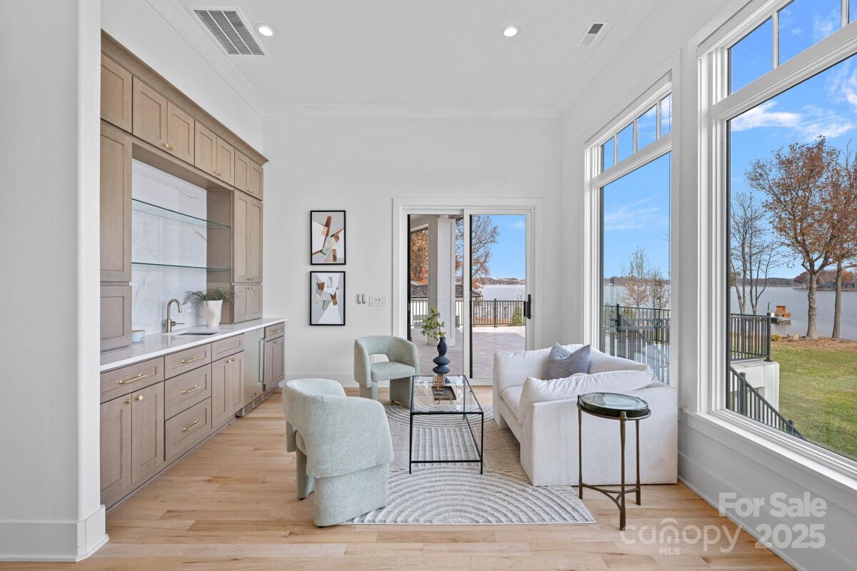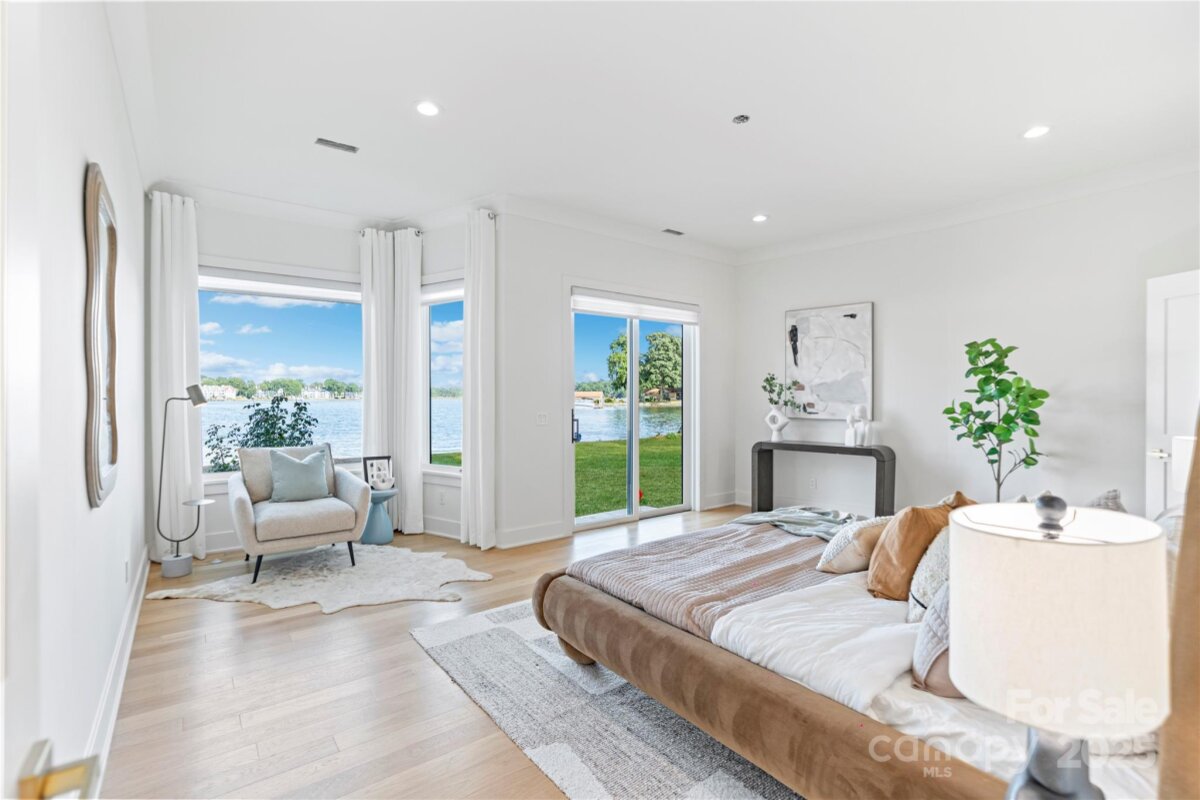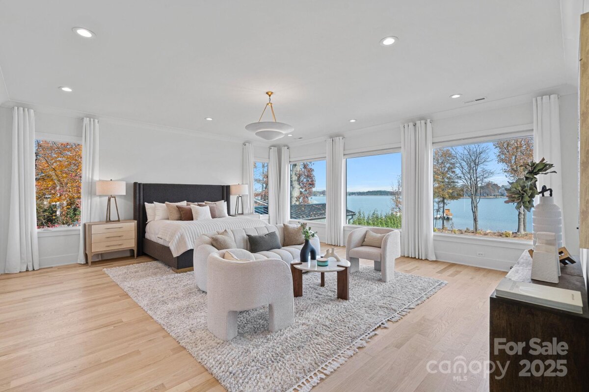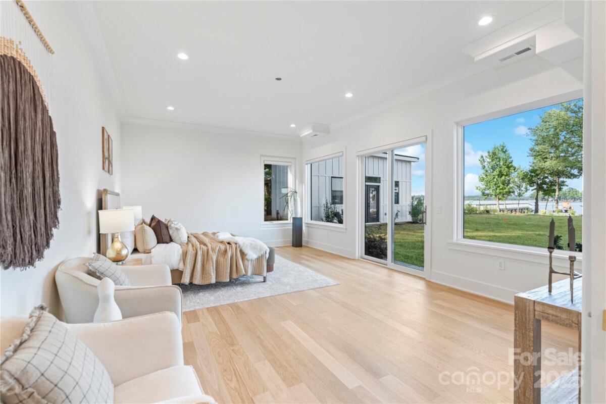 A breathtaking modern farmhouse infused with contemporary design and timeless architectural charm —showcased through clean lines, rich natural textures, and 300+ feet of extraordinary Lake Norman waterfront. Rebuilt from the footings up in 2022—and fully renovated in 2025 with all-new designer selections—this home delivers an exceptional level of luxury, natural light, and architectural sophistication. The main level showcases 12' ceilings, expansive walls of glass, and seamless indoor-outdoor living designed to maximize the water views. The gourmet kitchen features custom cabinetry, an oversized island, premium appliances, and breathtaking lake views. A fully equipped scullery provides additional prep and storage space ideal for everyday living or effortless entertaining. The lakeside primary suite is a true retreat with picture-window views and a spa-inspired bath anchored by a freestanding tub and oversized glass shower. The walk-out lower level expands your living and guest accommodations with generous bedrooms, recreation spaces, and private access to the second garage—an ideal multigenerational or extended-stay setup. Outdoor living is unmatched with two natural sandy beaches, new designer landscaping, an outdoor shower, and a brand-new seawall. A new two-level dock is currently under construction and will be completed mid-December. Approved pool plans offer additional opportunity to customize this remarkable property. A rare waterfront offering blending timeless modern architecture, breathtaking views, and a premier Cornelius location—this estate delivers Lake Norman living at its finest.