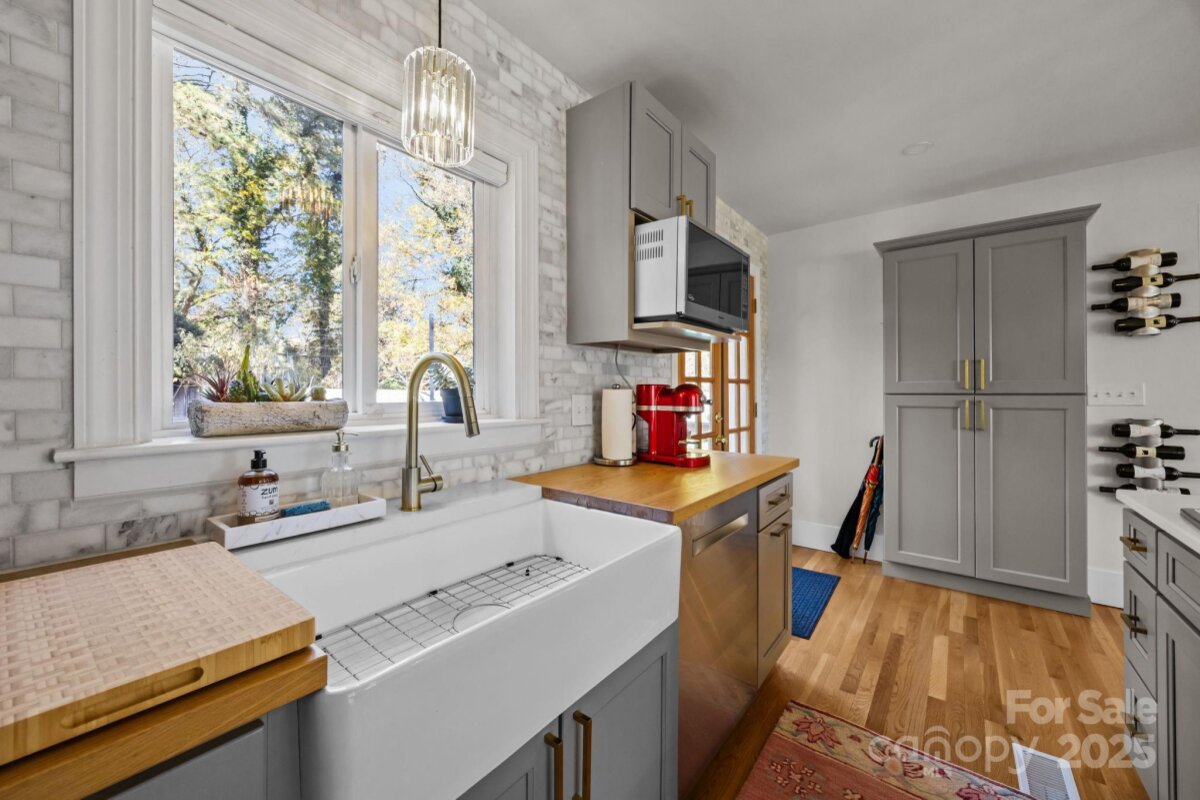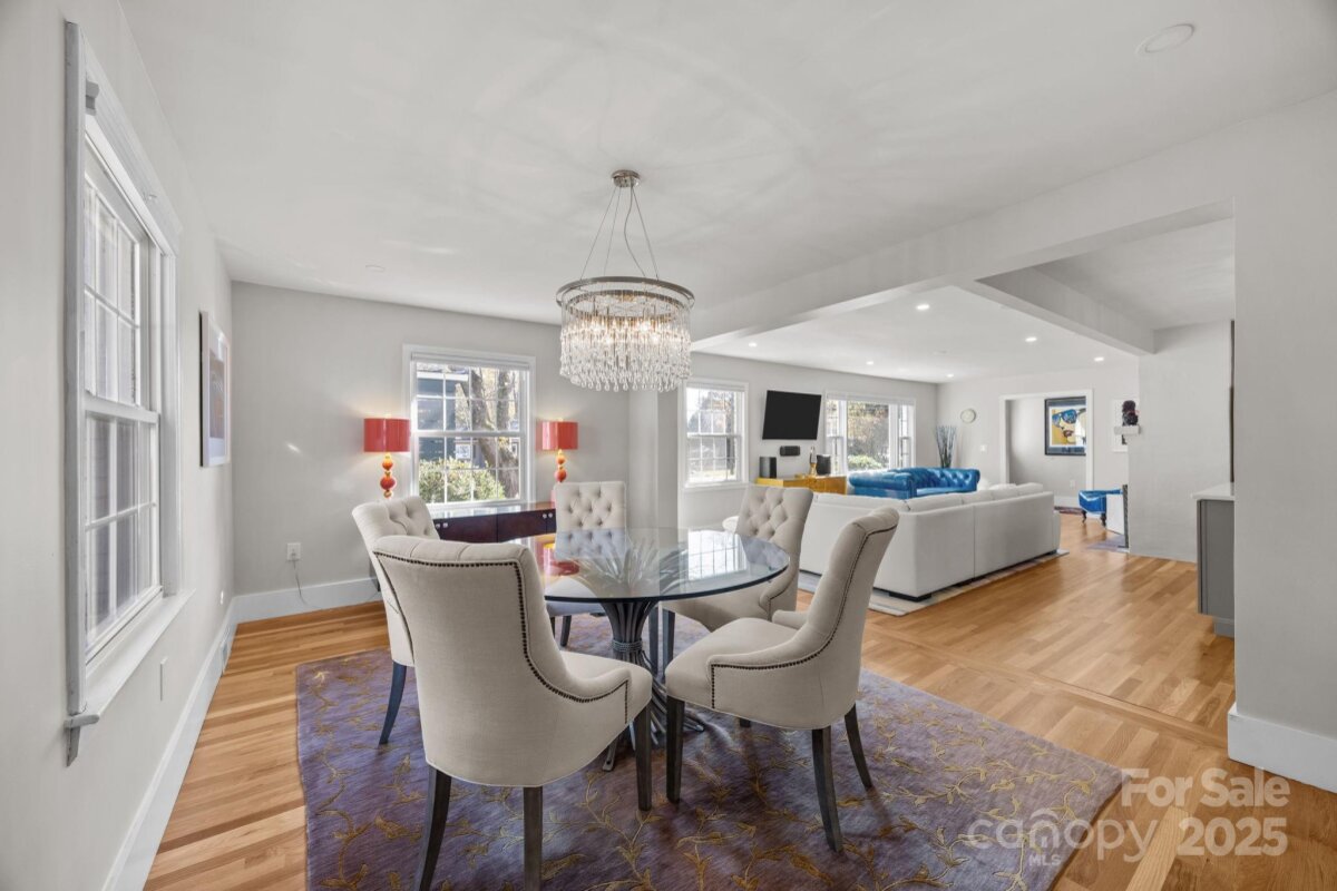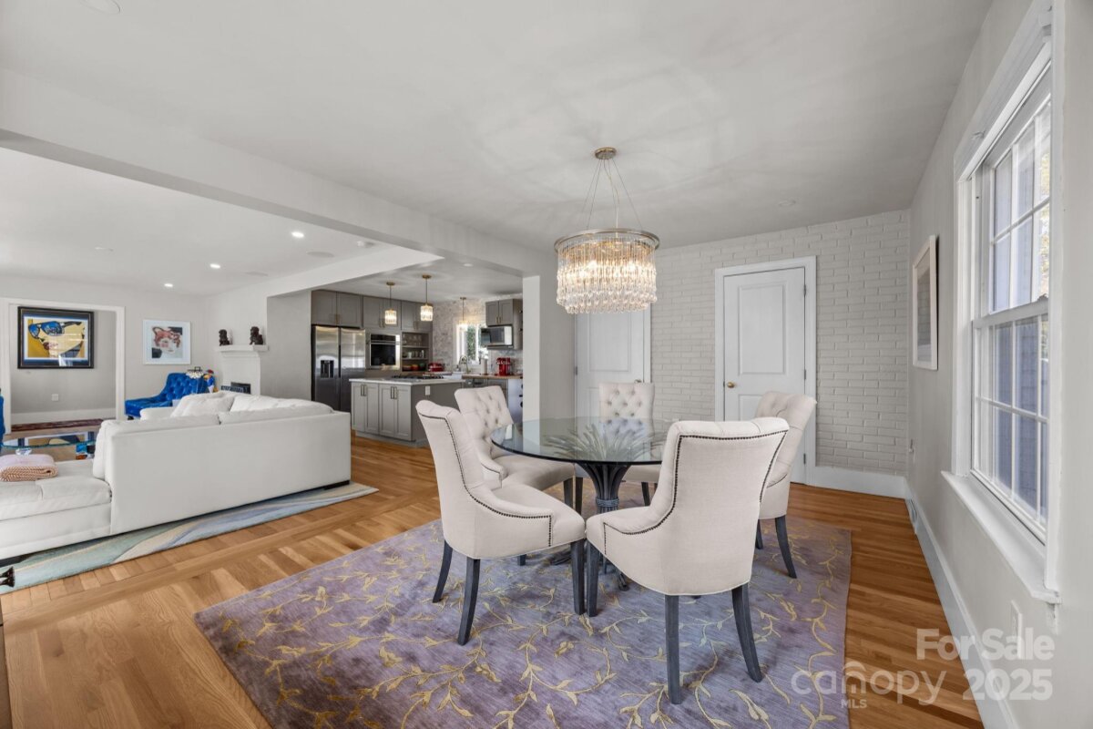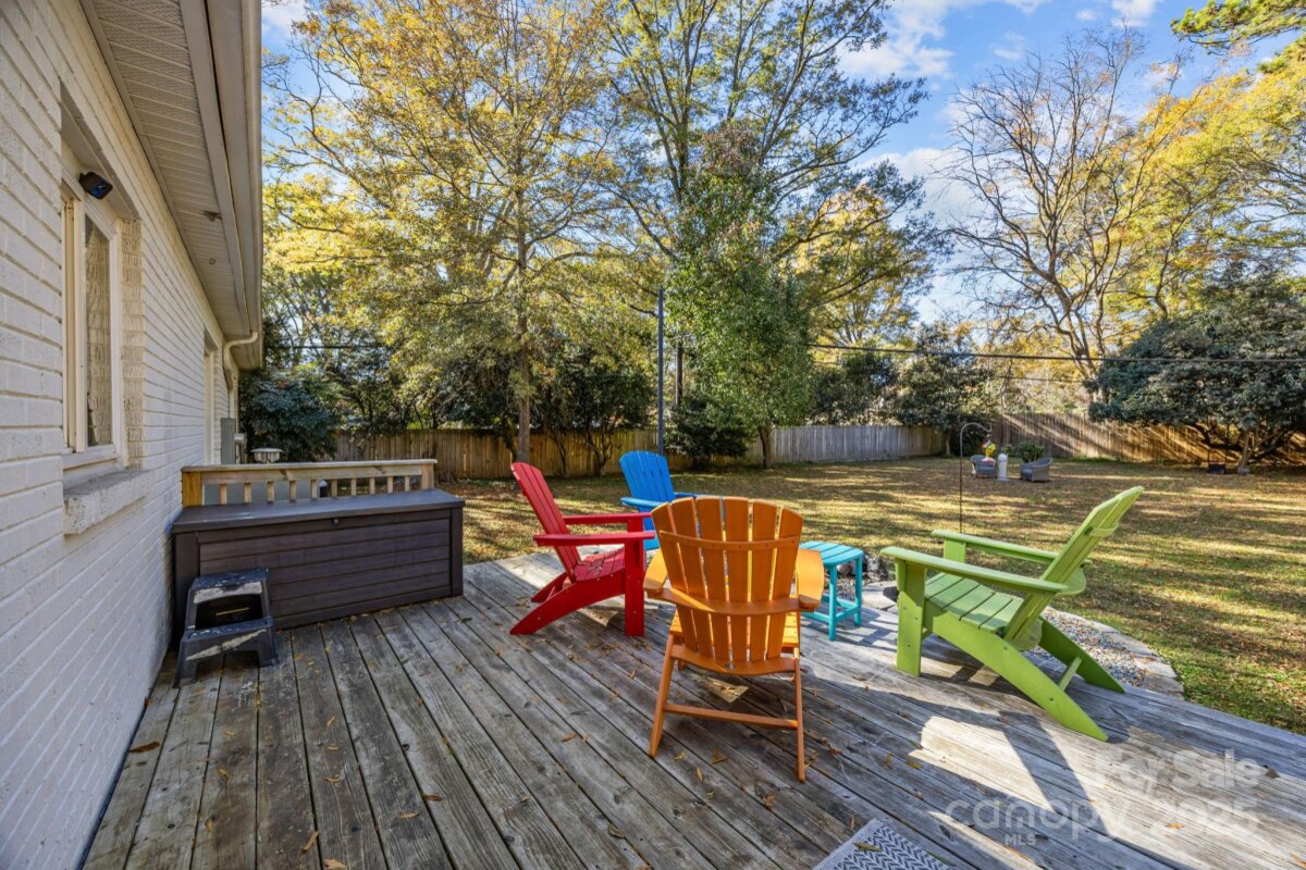Delightfully charming brick ranch close to Cotswold. Many updates in 2021 by previous owner include creating an open space for kitchen/great room, major kitchen renovation, restored hardwood floors, new roof, electrical and plumbing upgrades plus new fixtures. Current owners have continued the improvements by replacing the HVAC and ductwork, adding new driveway and stylish carport as well as installing surround sound and new white cellular shades throughout. The home is enhanced by a .38 acre flat lot with a back yard made for relaxing on the deck and enjoying the cozy fire pit on beautiful Carolina evenings. The location near shopping, restaurants and convenient routes to center city and SouthPark add to the appeal. This home is move-in ready and a delight to experience.