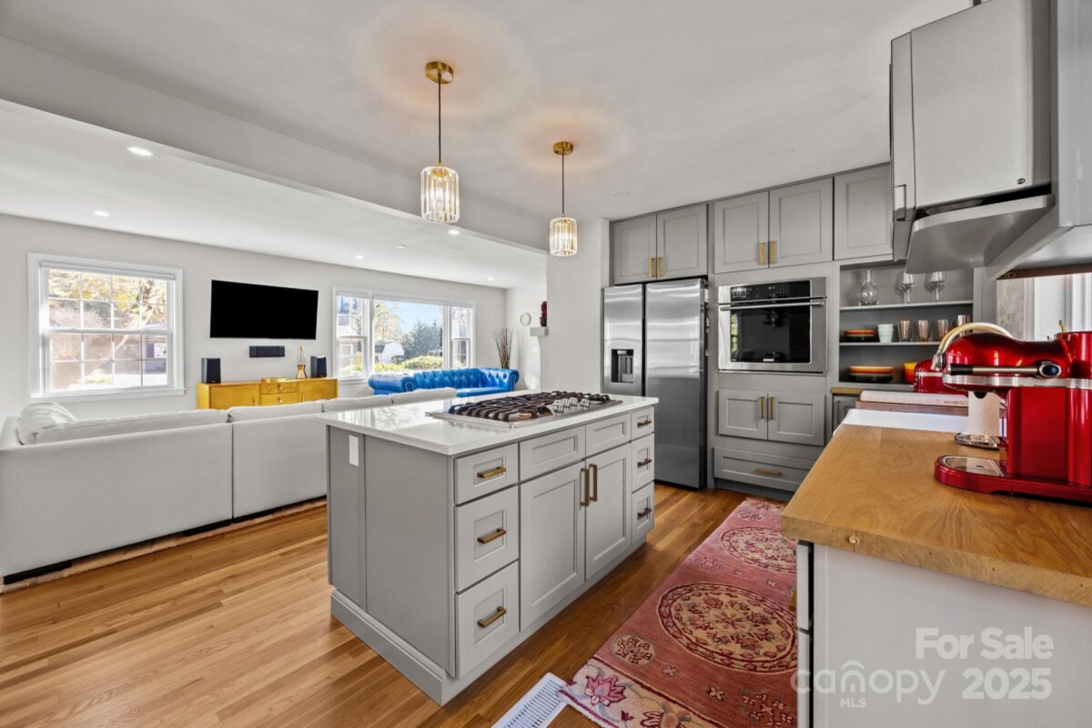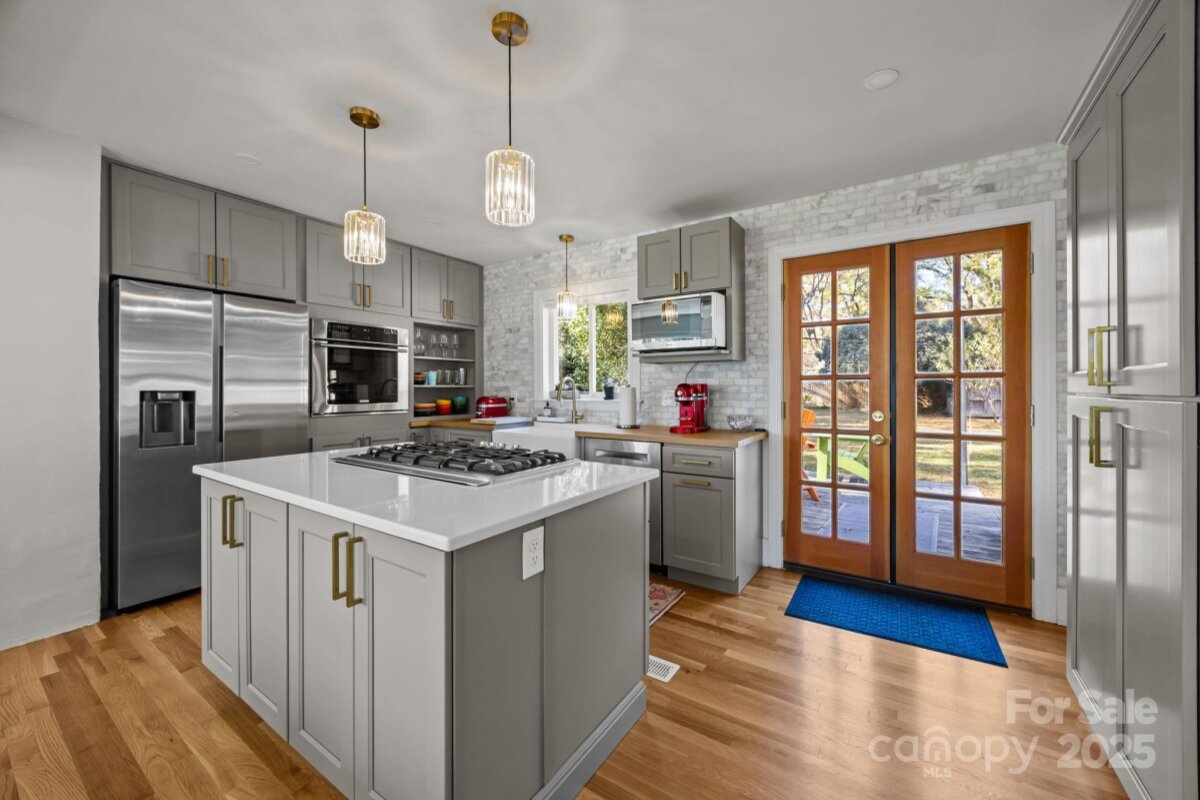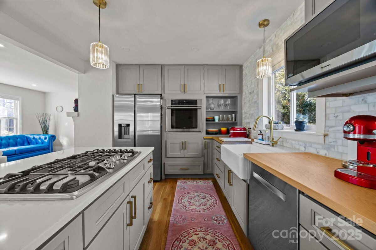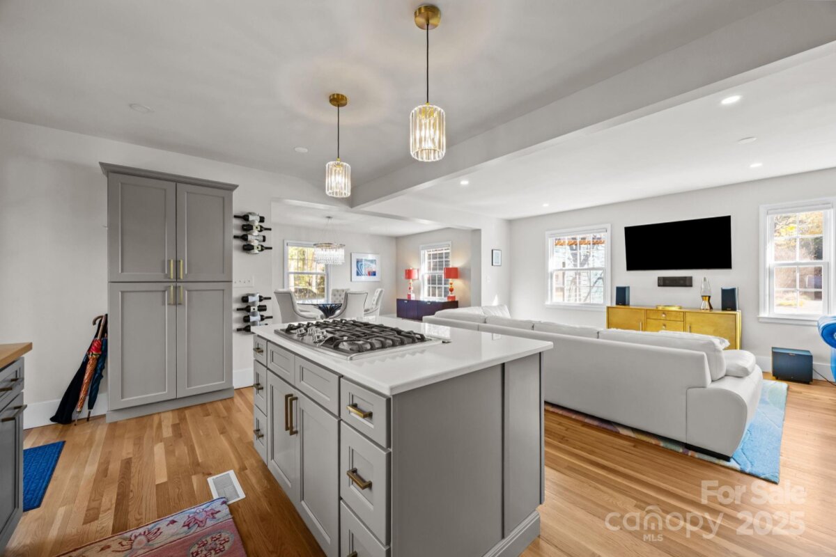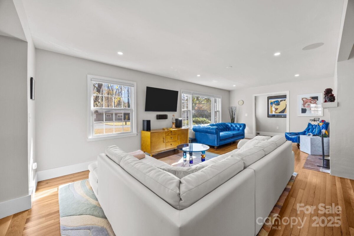 Delightfully charming brick ranch close to Cotswold. Many updates in 2021 by previous owner include creating an open space for kitchen/great room, major kitchen renovation, restored hardwood floors, new roof, electrical and plumbing upgrades plus new fixtures. Current owners have continued the improvements by replacing the HVAC and ductwork, adding new driveway and stylish carport as well as installing surround sound and new white cellular shades throughout. The home is enhanced by a .38 acre flat lot with a back yard made for relaxing on the deck and enjoying the cozy fire pit on beautiful Carolina evenings. The location near shopping, restaurants and convenient routes to center city and SouthPark add to the appeal. This home is move-in ready and a delight to experience.