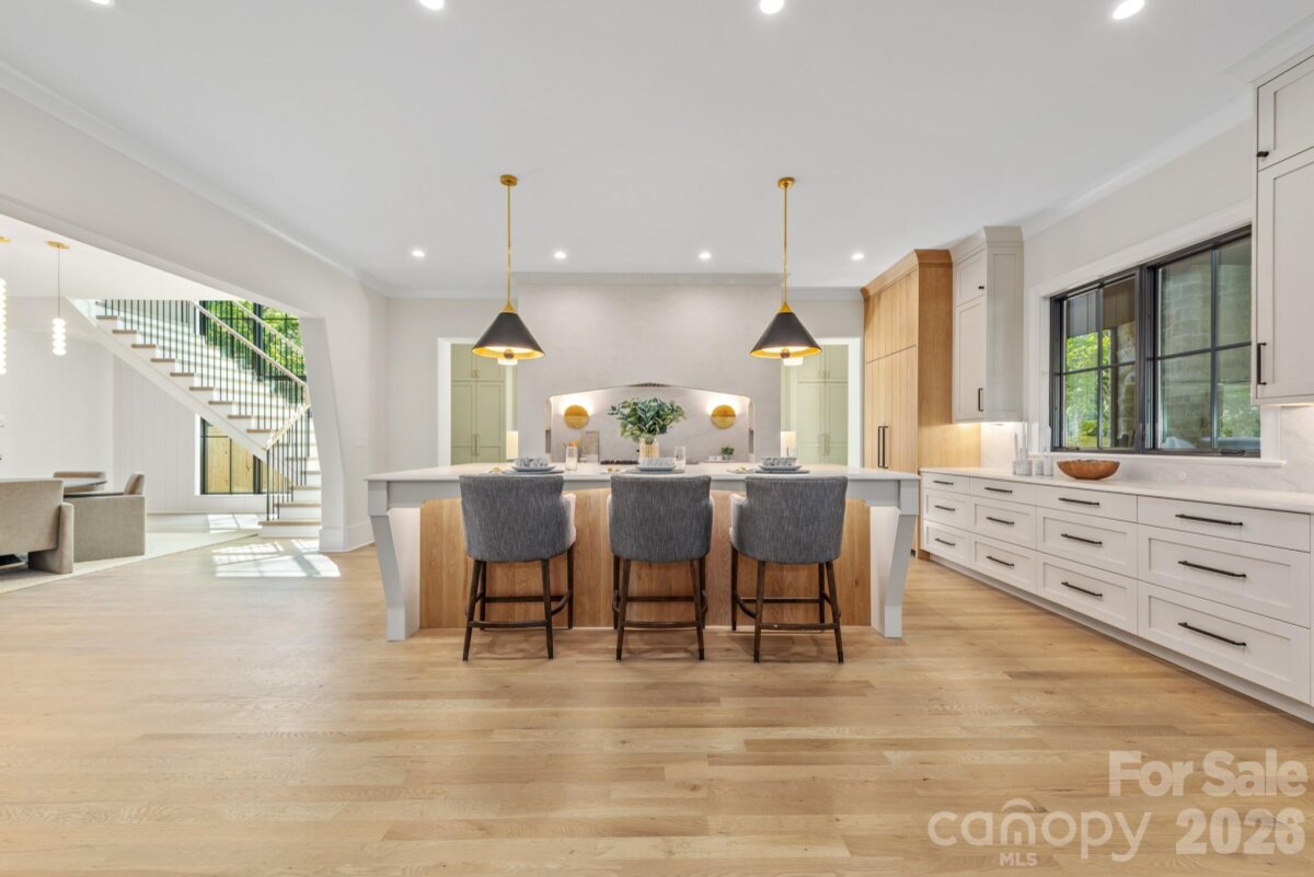 Perfectly positioned in the heart of Cotswold, 4110 Melchor Avenue is a masterfully crafted Scandinavian Modern new construction by Pike Properties — a home that redefines luxury living in one of Charlotte's most coveted neighborhoods. With 5,939 square feet of thoughtfully designed space, every detail has been considered to deliver a living experience that is both elevated and effortlessly livable. The architectural language is clean, intentional, and unmistakably Scandinavian — defined by natural materials, warm minimalism, and a seamless dialogue between interior and exterior. Soaring ceilings, walls of glass, and an abundance of natural light create an atmosphere that feels expansive yet intimately comfortable. Custom cabinetry flows throughout the entire home, a thread of craftsmanship that ties every room together with quiet sophistication. At the heart of the main level is a showpiece kitchen that is as functional as it is stunning — and behind it, a full scullery kitchen running the entire length of the main kitchen, discreetly housing a beverage refrigerator, refrigerator pull-out drawers, 2nd dishwasher, and everything needed to keep the main stage pristine while entertaining. Whether hosting an intimate dinner or a grand celebration, this kitchen pairing is a chef's and entertainer's dream realized. Step outside and discover an expansive back porch that lives like a true extension of the home. Three remote-operated phantom screens allow you to open or enclose the space at will, while a fully appointed summer kitchen, dedicated dining area, and outdoor living room with fireplace create an al fresco environment worthy of the interior it mirrors. Rain or shine, the outdoor living here is unmatched. Upstairs, each bedroom enjoys the luxury of a large private closet and its own en-suite bathroom — a thoughtful design that offers every member of the household their own retreat. A dedicated powder bath serves the bonus room, ensuring convenience without compromise. Tucked into its own private wing, the primary suite is in a category of its own — anchored by soaring 12-foot vaulted ceilings, a massive walk-in closet, and a spa-inspired bathroom that transforms the daily routine into a restorative experience. Even the details you didn't know you needed are here — including a dedicated dog wash station that speaks to the home's rare combination of luxury and genuine livability. The three-car garage completes a package designed for the way people actually live. Located minutes from premier dining, boutique shopping, top-rated schools, and the energy of SouthPark, 4110 Melchor Avenue offers the quiet sophistication of one of Charlotte's most desirable streets — and a standard of living that is simply without equal.