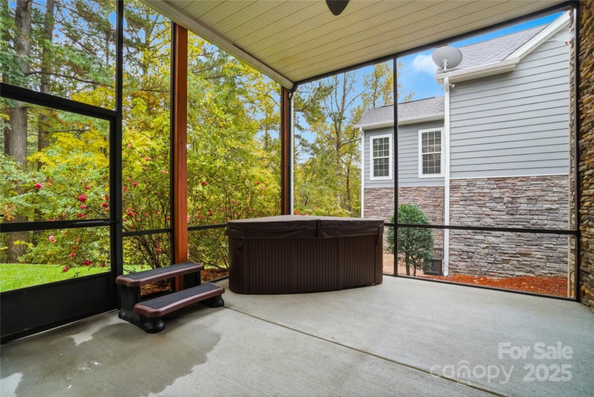 Welcome to this stunning home in the Verdict Ridge Golf Course community! From its charming curb appeal with mature landscaping and stacked stone accents to its welcoming front porch, this property exudes warmth and elegance. The golf course surrounds this section of the neighborhood, so it's calm and quietness offers an ideal location. Inside, the primary bedroom on the main level offers comfort and convenience, while the vaulted ceiling family room fills with natural light, creating an inviting gathering space. The office/flex room features a beautiful bay window, perfect for working from home or quiet reading. The open floor plan includes wood flooring on the main level and a spacious kitchen with easy flow for entertaining. Step outside to enjoy multiple outdoor living spaces—a screened porch with hot tub, deck, and stone patio overlooking a private backyard with winter golf course views. The finished basement is a true bonus, featuring a large family room, media area with theater chairs that remain, a bedroom, full bath, and ample storage space. Additional highlights include tankless water heater, custom closet systems in large walk-in closets, and low-maintenance living with landscaping included in the HOA. Enjoy resort-style living and community amenities in one of the area’s most desirable neighborhoods—Verdict Ridge!