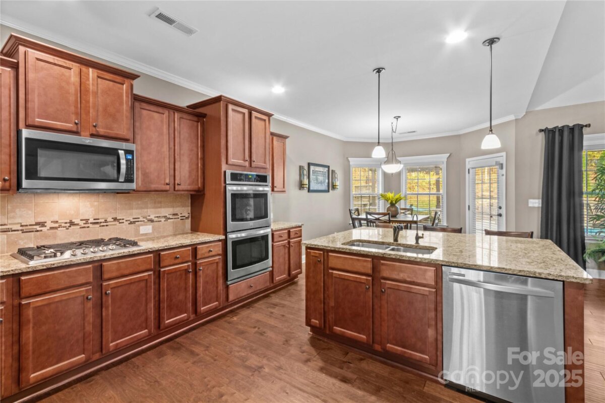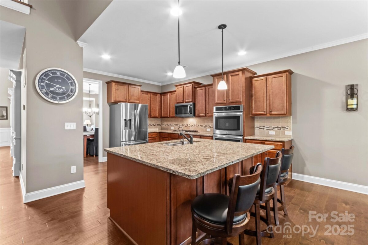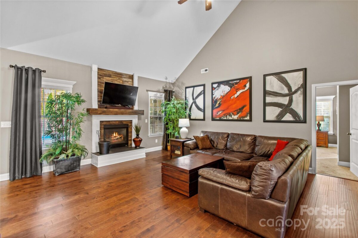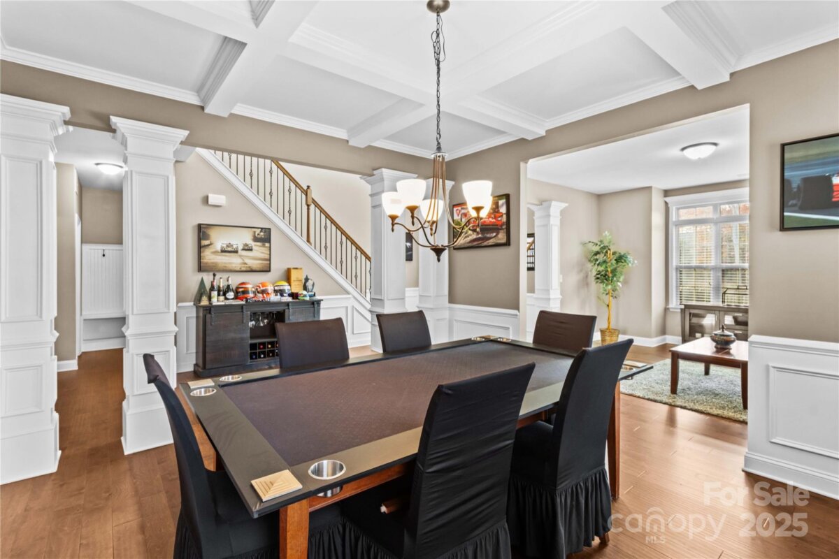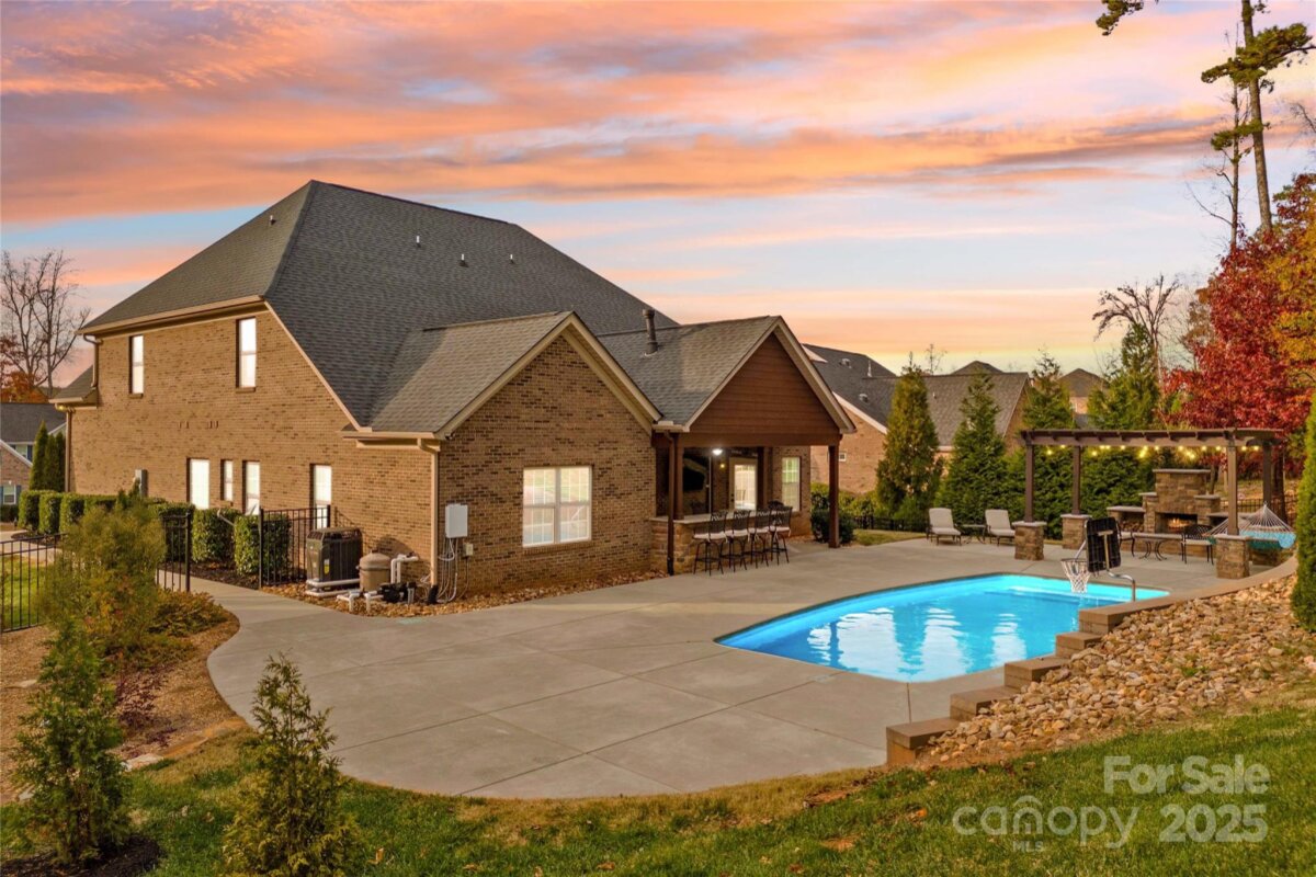 Prepare to fall in love with this stunning full-brick home nestled in the highly desirable Norman Pointe community. From the moment you arrive, the luxury, comfort, and thoughtful design of this property truly shine. Step outside into your own private backyard oasis — an entertainer’s dream. The custom-built bar features a full granite top, under-bar lighting, and a wall-mounted TV, making it the perfect spot for weekend gatherings. A gorgeous custom fireplace, charming pergola, and hammock create an inviting atmosphere beside the San Juan heated saltwater pool (installed in 2021 by Poolscapes of Charlotte), all surrounded by expansive patio space ideal for games, lounging, and celebrations. Inside, the spacious kitchen and great room offer an inviting place to gather, complete with a breakfast area and coffee station. The elegant dining room showcases a coffered ceiling and beautiful millwork, perfect for hosting holidays or dinner parties. A formal living room provides excellent versatility — use it as a sitting room, home office, or creative space filled with natural light. The main-level primary suite is your personal retreat with dual walk-in closets, a large en-suite bath, and a generous separate sitting area featuring a fireplace, wall-mounted TV, and its own full walk-in closet. This space functions beautifully as a private movie area, home office, or nursery. Upstairs features four spacious bedrooms (three with vaulted ceilings), two full bathrooms, and exceptional flexibility. One room functions perfectly as a bonus room, media room, game room, or private guest suite. This home checks every box — luxury, comfort, outdoor living, and room to grow.