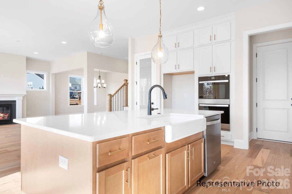 NEW CONSTRUCTION with exceptional standard features—this builder’s standards are other builders’ upgrades. Enjoy 10' ceilings on the main level and 9' ceilings upstairs, creating a bright, open feel throughout. ACT NOW to make some option and color selections from an extensive catalog. The home features an Epicurean Kitchen with double wall ovens, floor-to-ceiling cabinetry, quartz countertops, and an oversized farmhouse island overlooking the family room and dining area. A covered rear porch extends the living space outdoors. The main level offers a Guest Suite, with hardwood flooring throughout the first floor (except tile in bath). Upstairs, the Owner’s Suite includes a tray ceiling, dual vanities with quartz tops, a luxury tiled walk-in shower with optional stand-alone tub, and a large walk-in closet. A spacious loft provides additional living or entertainment space. Located just minutes from boat storage/marina access, Sally’s Y, and nearby shopping and dining—embrace the convenience of lake-area living. Closing cost contribution available with preferred lender! Photos/video are representative of previously built home & may show upgrades that may not be included in completed home based on buyer selections.