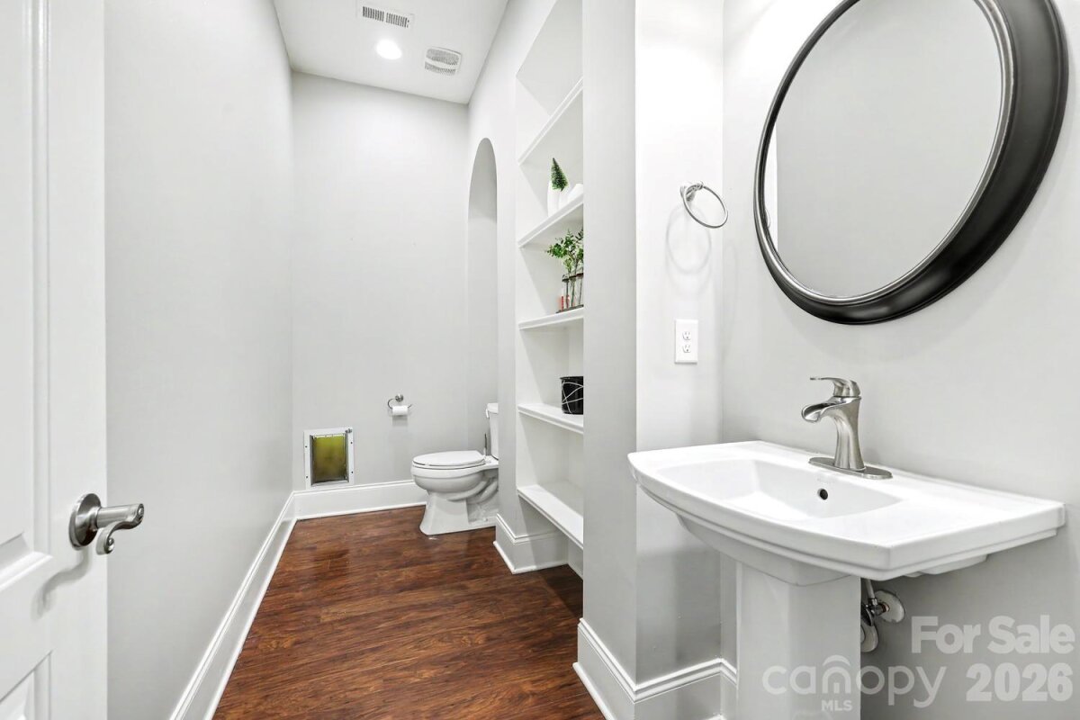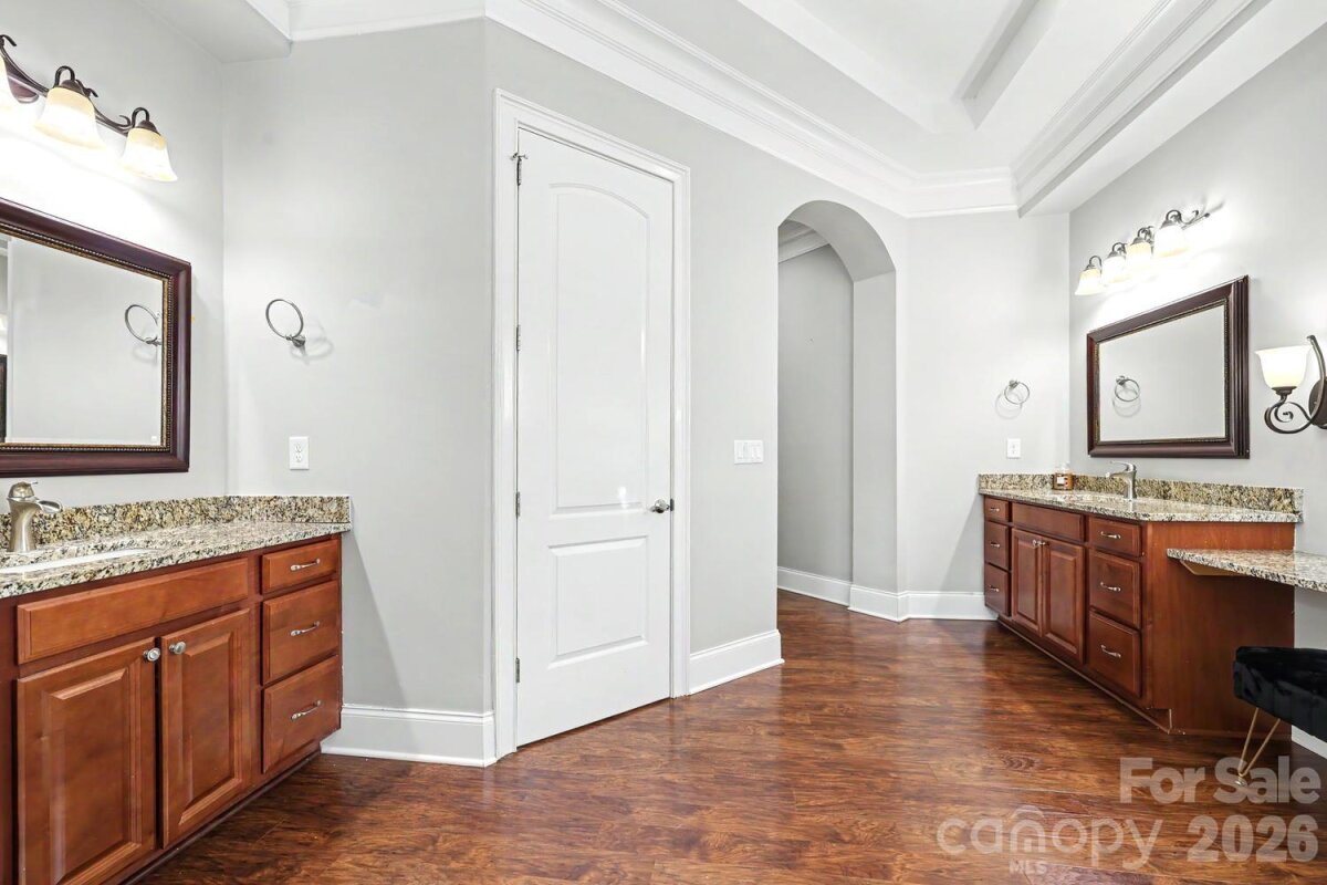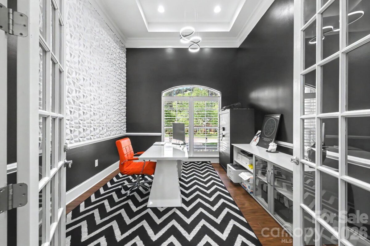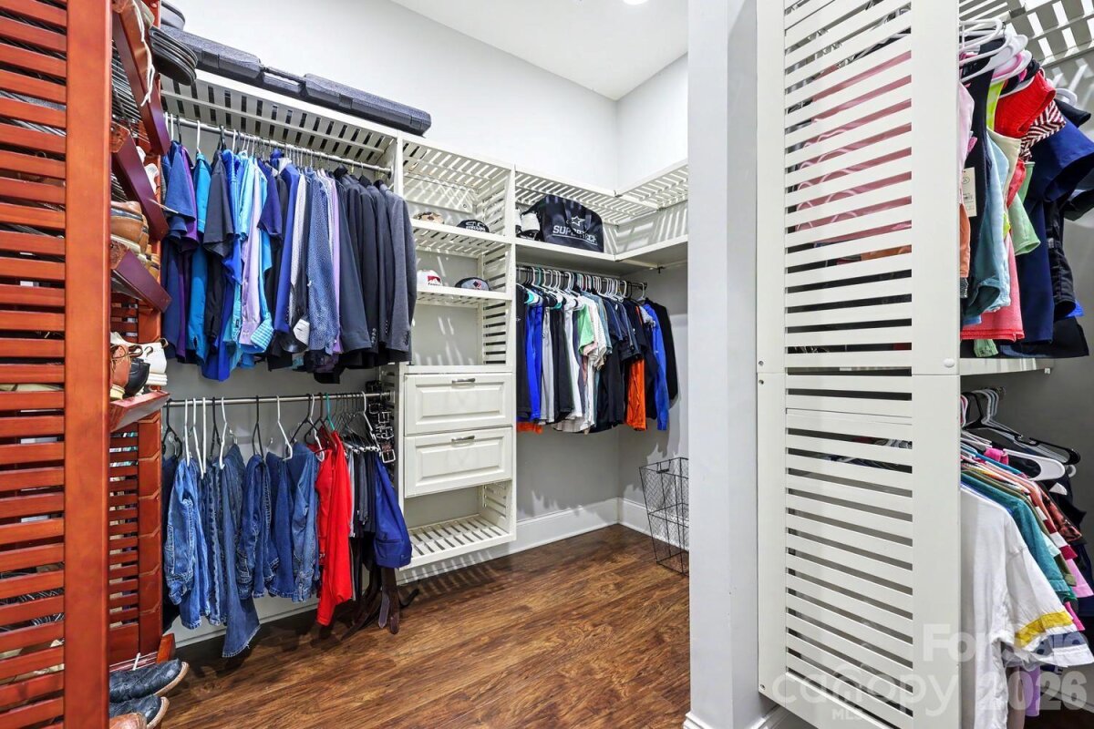 Exceptional custom-built one-story home blending luxury, comfort, and cutting-edge technology. Open floor plan showcases rich hardwood flooring, custom archways, and tray ceilings throughout main living areas. Formal living room features a stacked stone gas log fireplace, built-ins, and a striking 500-gallon mixed reef aquarium. Elegant dining room with picture frame molding is ideal for entertaining. Gourmet kitchen designed for the discerning chef with double ovens, gas range, granite countertops, tile backsplash, stainless appliances, and a large center island with prep sink—all open to the great room. Private primary suite offers a spa-like bath with dual vanities, makeup area, garden tub, and tiled shower. Split-bedroom layout includes three additional bedrooms, one with ensuite bath perfect for guests or multi-generational living. Outdoor living shines with an expansive deck, outdoor kitchen, and gas fire pit—perfect for relaxing or entertaining. Oversized 3-car garage with 20-ft ceilings, a 50 amp EV charger and a 10K lb lift ideal for car enthusiasts. Smart home system and whole-home automatic generator provide modern convenience and peace of mind. Located in a desirable community with gated boat storage and easy access to a public boat launch at Little Creek .2 miles away.