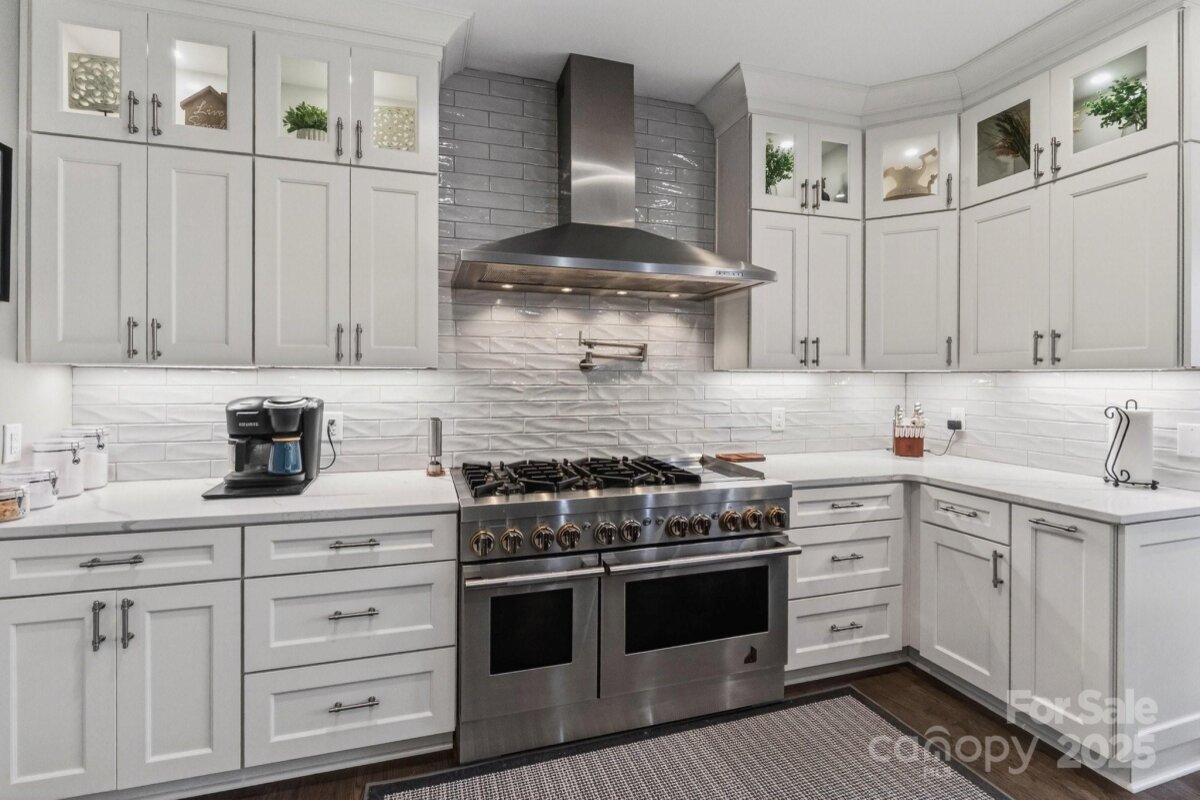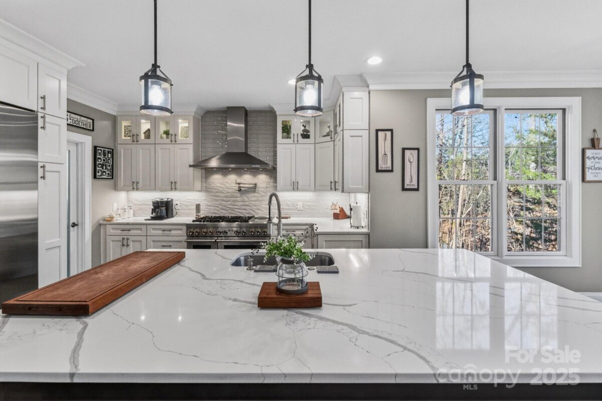 Perfectly positioned along a tranquil cove on Lake Norman and surrounded by mature trees, this beautifully remodeled 6 bedroom, 4 1/2-bath residence with a 3-car garage, located in sought after Lakewood subdivision, offers an exceptional blend of privacy, elegance, and modern comfort. Thoughtful details define this home, from rich hardwood floors and refined crown molding to tray ceilings and custom built-in shelving. Home comes with a gourmet chef-inspired kitchen which anchors the main living space, featuring high end stainless steel appliances, a gas range with griddle and double ovens and quartz countertops. Adjacent pantry with plumbing to add secondary laundry space if Desired. Home is designed to effortlessly accommodate both intimate gatherings and grand entertaining. The main-level primary suite serves as a serene retreat, complete with a spacious walk-in custom built closet and a spa-inspired elegant bath with a spectacular walk in shower, soaking tub and dual vanities. Designed for versatility and elevated living, this home spans multiple levels including an office/bonus room/bedroom over the garage and a fully finished walkout basement with bedroom, bathroom and an additional kitchenette/wet bar-ideal for hosting multi-generational living quarters or rental space. Home has a Large laundry room with tons of storage and sink. This home is also equipped with multiple smart features such as Next thermostats, ring doorbell, wi-fi controlled switches and appliances. LED light fixtures are installed throughout the house along with additional insulation added to make home more energy efficient. Outdoor spaces are equally impressive, with a deck and covered patio overlooking the peaceful water, creating a private oasis for relaxation and entertaining alike. There is a paddle board/kayak launch in back and room for a jet ski. Public boat ramp less than a mile down the road with community offered boat storage.