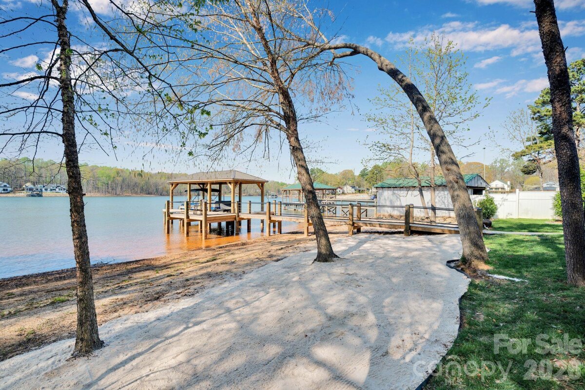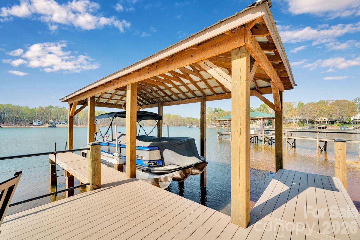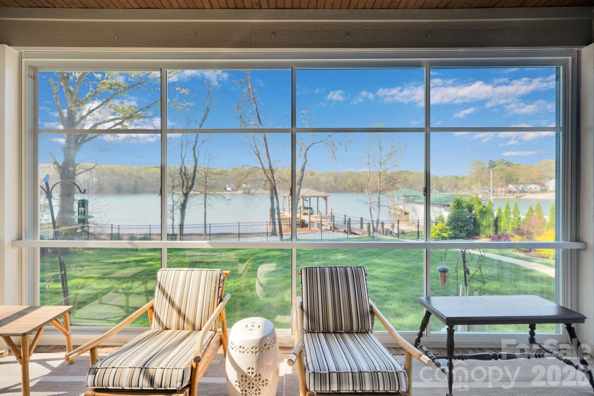 Stunning 4 bedroom, 3 bathroom, 1.5 story waterfront home on Lake Norman! Custom built in 2022, this beautifully designed home sits on a flat lot with expansive cove views and a peaceful natural forest backdrop. Enjoy the ultimate lake lifestyle with a covered dock featuring Trex decking and a 10,000-lb boat lift, plus a white sandy beach and recently dredged dock area (2024) for improved water access. Designed for year-round enjoyment, the home features a heated and cooled EzeBreeze 365-day room, perfect for relaxing while overlooking the water. Inside, the home showcases white-washed oak hardwood floors throughout the main level, high ceilings, and a striking coffered ceiling in the great room. Elegant details include crown molding, full-height cabinetry, wainscoting accents, custom built-ins, and abundant natural light from large casement and picture windows. The chef’s kitchen blends style and function with quartz countertops, a large island, marble backsplash, Bosch appliances, and custom off-white cabinetry extending to the ceiling, along with a walk-in pantry with custom shelving. The primary suite and bathrooms feature luxury finishes including a custom glass shower enclosure with Ferguson fixtures, a multi-jet spray system, decorative marble accents, and custom closet systems. A convenient drop zone is located just off the oversized 3-car garage for busy lives. Upstairs, you'll find a large bonus room and 2 additional bedrooms and a full bathroom. Located on the desirable southern side of Denver, this home offers convenient access to highways, shopping, and restaurants. No HOA means short-term rentals may be an option, and with county water and sewer already connected, there may be room to add a pool. An exceptional opportunity to enjoy modern luxury and the best of Lake Norman waterfront living!