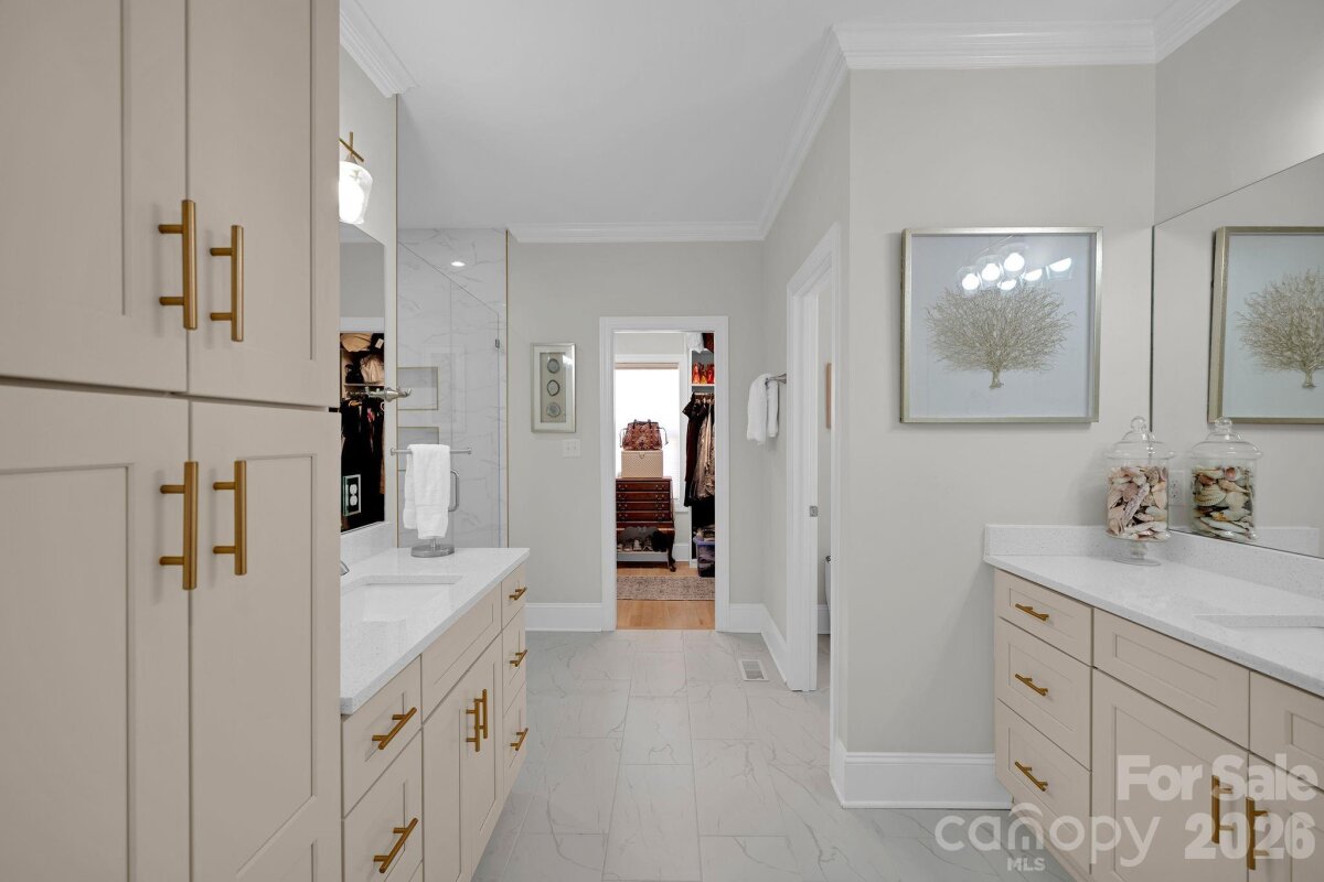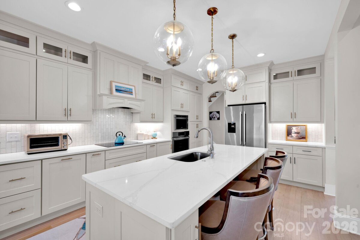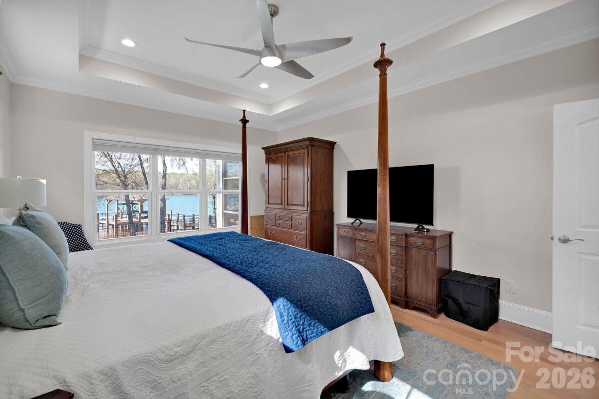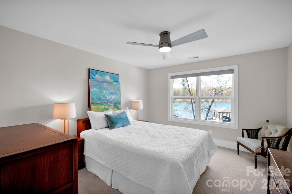 Stunning 4 bedroom, 3 bathroom, 1.5 story waterfront home on Lake Norman! Custom built in 2022, this beautifully designed home sits on a flat lot with expansive cove views and a peaceful natural forest backdrop. Enjoy the ultimate lake lifestyle with a covered dock featuring Trex decking and a 10,000-lb boat lift, plus a white sandy beach and recently dredged dock area (2024) for improved water access. Designed for year-round enjoyment, the home features a heated and cooled EzeBreeze 365-day room, perfect for relaxing while overlooking the water. Inside, the home showcases white-washed oak hardwood floors throughout the main level, high ceilings, and a striking coffered ceiling in the great room. Elegant details include crown molding, full-height cabinetry, wainscoting accents, custom built-ins, and abundant natural light from large casement and picture windows. The chef’s kitchen blends style and function with quartz countertops, a large island, marble backsplash, Bosch appliances, and custom off-white cabinetry extending to the ceiling, along with a walk-in pantry with custom shelving. The primary suite and bathrooms feature luxury finishes including a custom glass shower enclosure with Ferguson fixtures, a multi-jet spray system, decorative marble accents, and custom closet systems. A convenient drop zone is located just off the oversized 3-car garage for busy lives. Upstairs, you'll find a large bonus room and 2 additional bedrooms and a full bathroom. Located on the desirable southern side of Denver, this home offers convenient access to highways, shopping, and restaurants. No HOA means short-term rentals may be an option, and with county water and sewer already connected, there may be room to add a pool. An exceptional opportunity to enjoy modern luxury and the best of Lake Norman waterfront living!