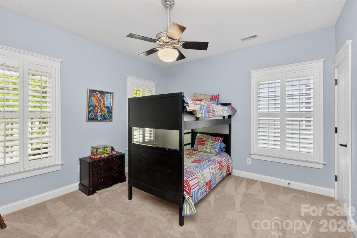 Experience the timeless CHARM of living in BAXTER VILLAGE from the Southern DOUBLE front porch of this stunning, one owner, home! RENOVATED kitchen with white cabinets and backsplash, DOUBLE convection oven, stainless steel appliances, granite countertops, and large island for cooking and gathering. The family room serves as the heart of the home, anchored by a stunning STONE fireplace that adds warmth, texture, and a natural focal point. Double French doors lead into an extended recreational room. This separate yet accessible space offers incredible flexibility - it can function as a playroom, additional home office, gym, media room, or guest retreat. The French doors provide the option to keep the space open for a continuous feel or closed off for privacy when needed. Formal dining room, office, and laundry room complete the first floor. Second floor with owner's suite and updated owner's bath, FOUR secondary bedrooms (one with ensuite) and plenty of STORAGE! PRIVATE, fenced, professionally landscaped yard with irrigation, a HOT TUB, patio, fire pit, and PRIVATE access to the community walking trails. Enjoy SOLAR PANELS for affordable utility bills, NEW interior/exterior paint, TANKLESS water heater, refinished HARDWOOD floors throughout the first floor, and PLANTATION SHUTTERS. WALKING distance to the community clubhouse, pool, tennis courts, shopping/dining, and Music in the Park. Southern CHARM, endless AMENITIES, and AWARD WINNING Fort Mill Schools! Baxter Village has it all!