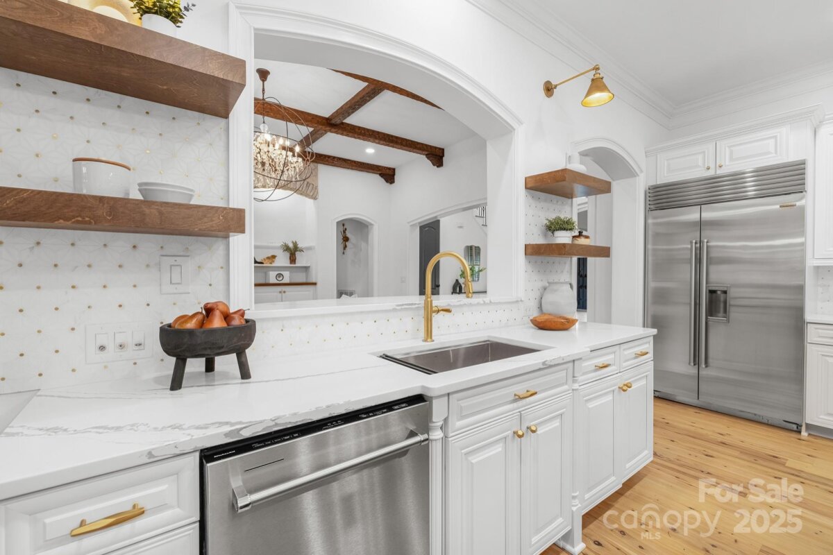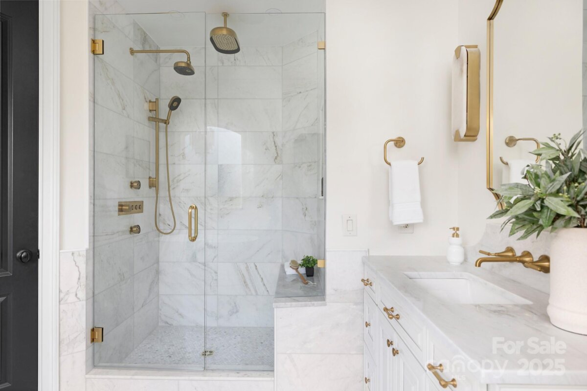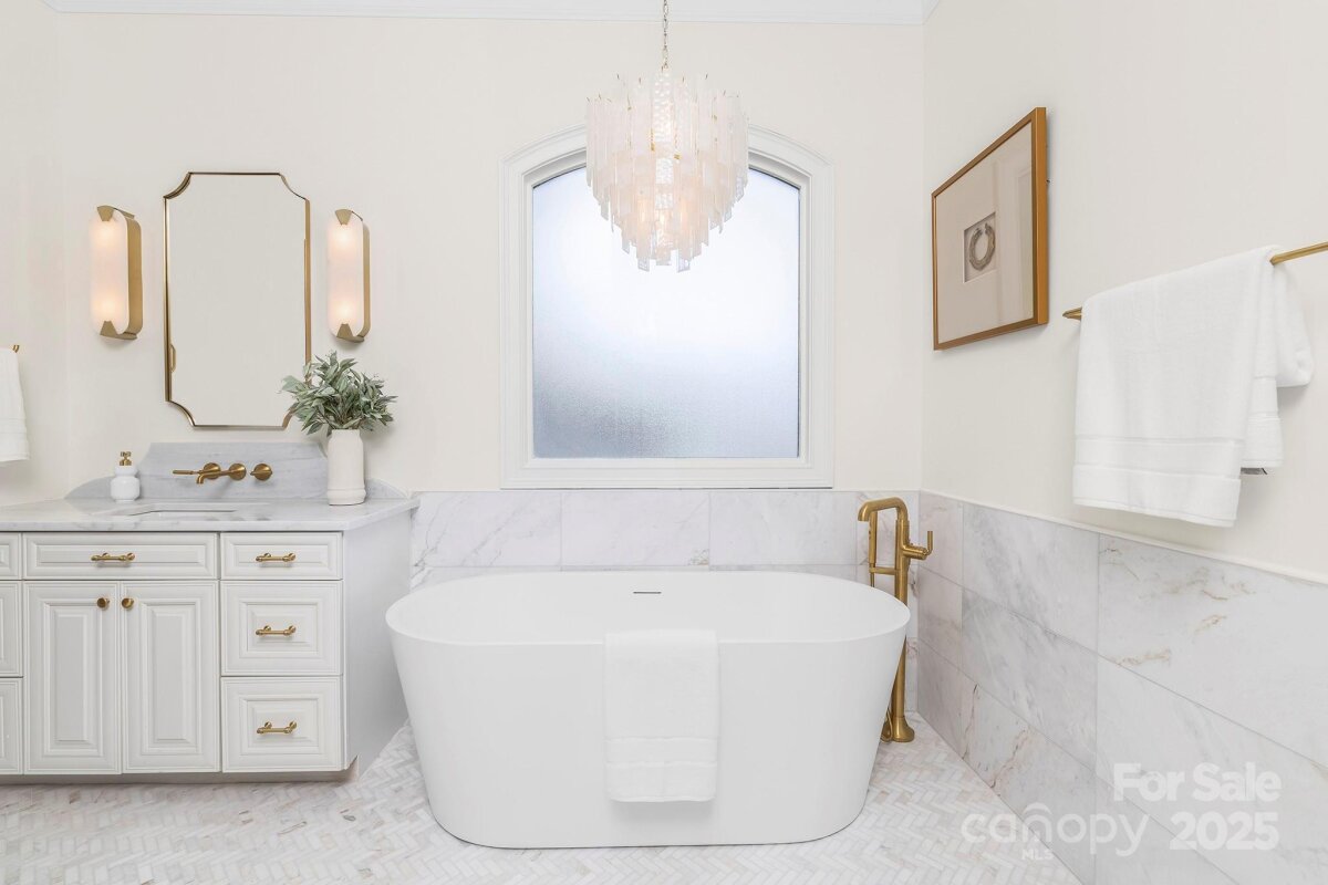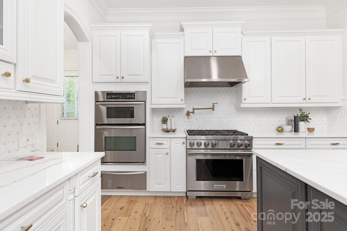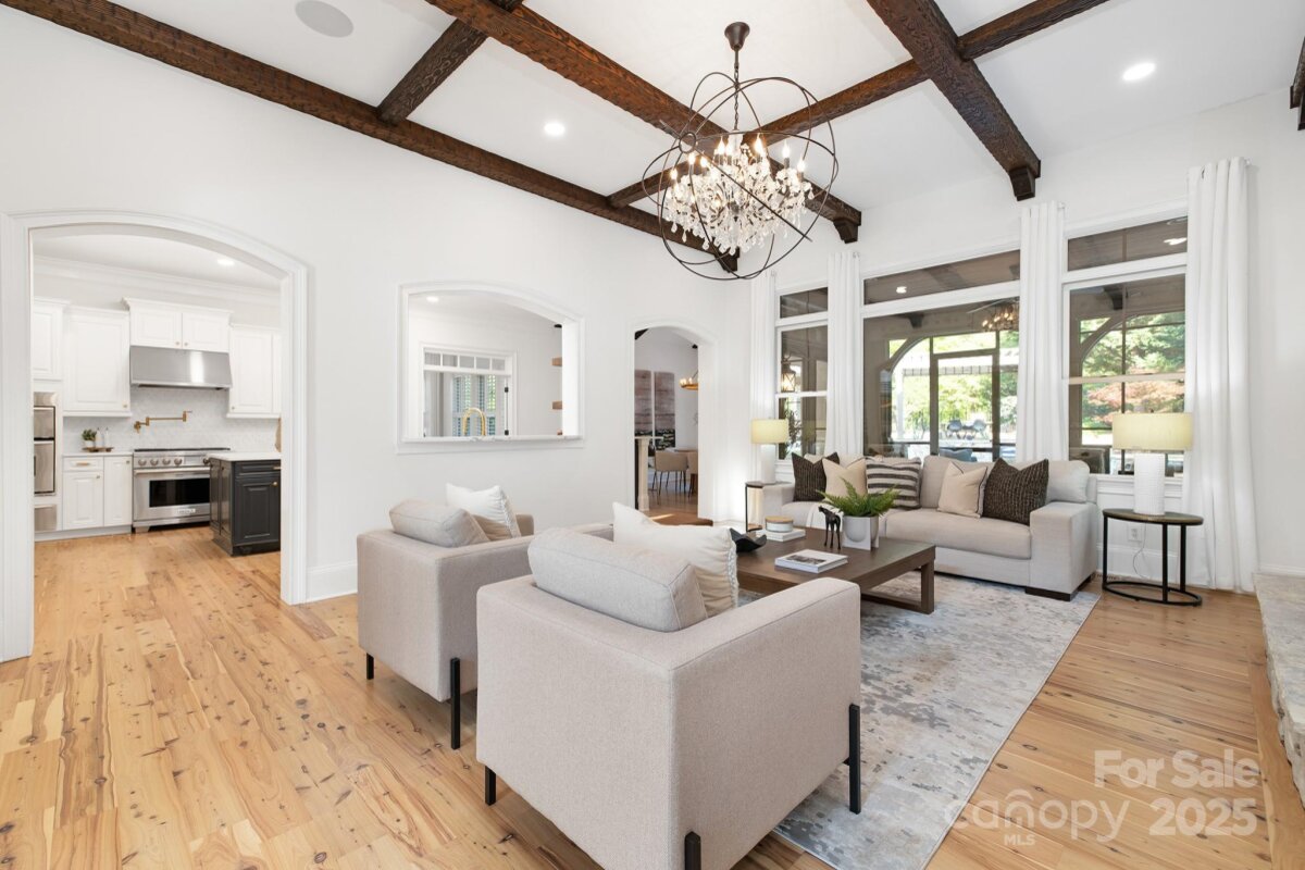 Exceptional home in the gated community of Longbrooke. Fully updated by current owners. Spectacular curb appeal with tiered stonework and terraces. Lush landscaping with fruit & olive trees. Backyard retreat with heated saltwater pool & spa and travertine patio. Iron front door, Australian Cypress wood flooring, 10-13 ft ceilings throughout main level. 2-story foyer flanked by dining & formal living room/study, family room with coffered & beamed ceiling and stone fireplace. Sunroom off kitchen & vaulted breakfast room. Stunning chef's kitchen with island & breakfast bar. Primary suite on main with new marble bath & veranda access. Fully equipped media room with wet bar, loft with secondary staircase, & 3 additional bedrooms. 2-car garage & additional 2-car carriage house garage. Control4 Smart Home system for whole-house/backyard AV. Longbrooke is a meticulously planned community of custom homes. Private, serene location with easy access to Ballantyne. Adjacent half-acre lot is listed separately (MLS 4310890) for $199,000. Both properties may be purchased for a combined price of $1,850,000. Please note that the property line for this lot ends just behind the stone wall - not at the fence. The pergola and upper patio area are on the second lot and are not part of the property, unless both lots are purchased together.