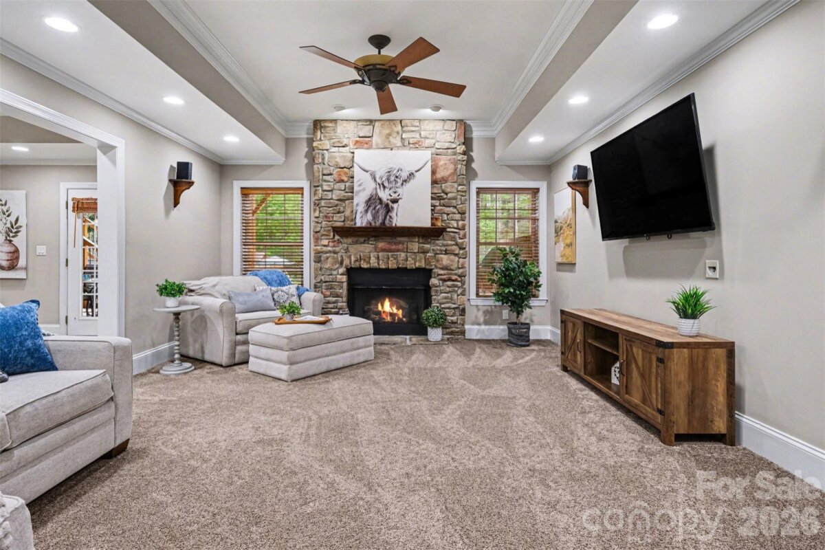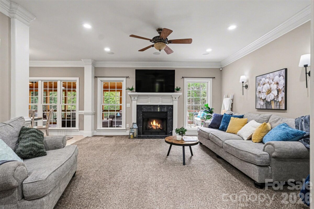 Enjoy the BEST OUTDOOR LIVING this summer in this custom full-brick estate in sought-after Fort Mill, SC on a private 1.38-acre lot. This beautifully crafted home features a basement plus two additional levels, showcasing high-end finishes, extensive trim work, and soaring ceilings throughout. The main level offers open, light-filled living spaces ideal for everyday living and entertaining, with seamless access to a screened porch and deck overlooking the backyard. Three fireplaces add warmth and character to the home. The finished basement provides exceptional flexibility with a bar, additional family room, and space for a media room, gym, or guest suite, along with a covered patio. Abundant storage includes walk-in attic and basement storage areas. Outdoor living is a true highlight with a gunite PebbleTec pool and spa, outdoor kitchen, fire pit area, and fenced yard with additional invisible fence. Additional features include a 3-car garage with high lift doors and a functional, well-designed layout. A rare opportunity to own a custom home with premium indoor and outdoor living in one of Fort Mill’s most desirable locations. Zoned for Dobys Bridge Elementary, Forest Creek Middle School and Catawba Ridge High School and minutes away from groceries and conveniences (Harris Teeter shopping center being built minutes away, and a short drive to Publix, Target, Costco, HomeGoods and many more along 521).