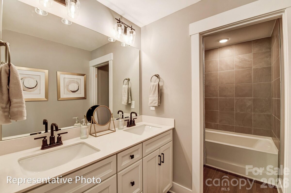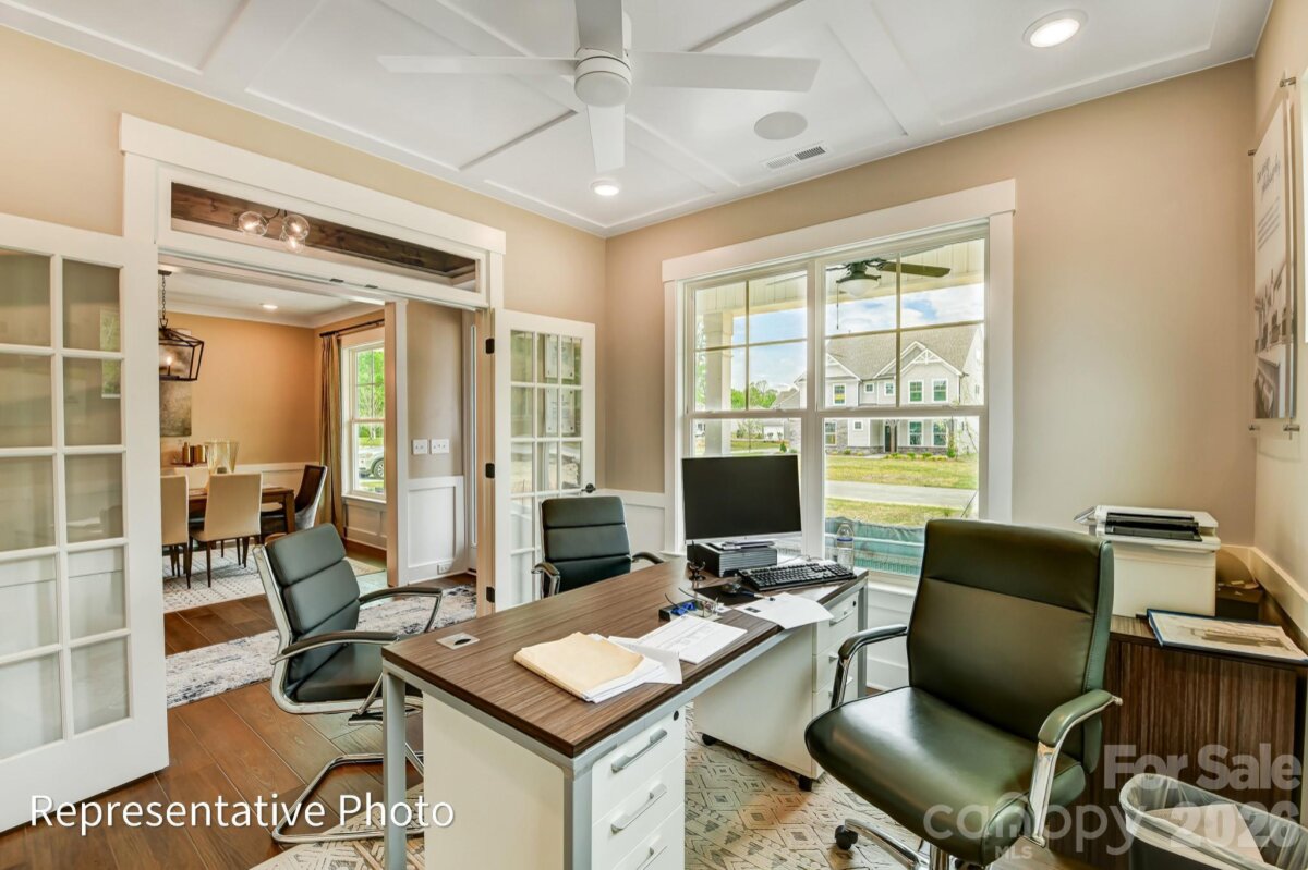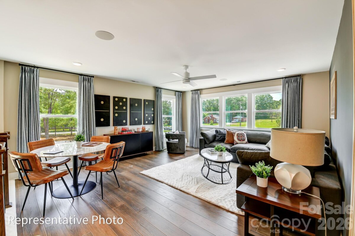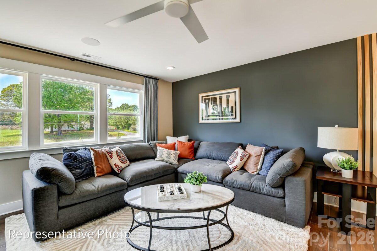This Colfax plan is "suite"! The home offers a guest bedroom with an ensuite bath on the main and the primary suite plus another ensuite bedroom upstairs. Plenty of options for everyone with a total of 5 bedrooms, 4.5 baths, and a 2-car sideload garage plus 1-car frontload garage. Beautiful upgrades abound in this home. The family room features a Cosmo, direct-vent gas fireplace surrounded by a shiplap wall. The kitchen also features a shiplap hood along with gray cabinets, contrasting white cabinets in the island, and a tile backsplash. The butler pantry also has upper and lower gray cabinets and backsplash. All countertops in the home are quartz. The upper floor has 9-foot ceilings and includes the primary suite with luxury bath, three secondary bedrooms (one with an ensuite bath), a loft, and laundry room with cabinetry and a sink. The rear of the home features a screened porch and a paver patio. Neighborhood amenities include a pool, dog park, clubhouse & fitness center. Visit today to find out more!
