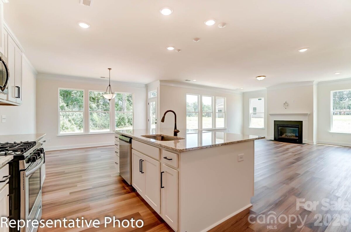 This 1.5-story Asheboro plan offers 4 bedrooms, 3.5 baths, a 3-car garage, and 3,200 square feet of living space! The main floor features a dining room with tray ceiling, family room with a gas fireplace flanked by built-in cabinets, two secondary bedrooms, and the primary suite. The primary bedroom has a tray ceiling, and the primary bathroom has a tiled shower and tub with tile surround. The designer kitchen has a shiplap range hood, a farmhouse sink, cabinets that extend into the breakfast area, quartz cabinets, and stainless appliances, including a gas cooktop. A butler pantry with upper and lower cabinets connects the kitchen and dining room. The main floor also has a mud room with drop zone, laundry room, a full bath, and a half bath. The upper floor has a loft, bedroom, and full bath with a tub/shower combo. All secondary baths have white cabinetry and white quartz counters. Visit today and make this beautiful home yours!