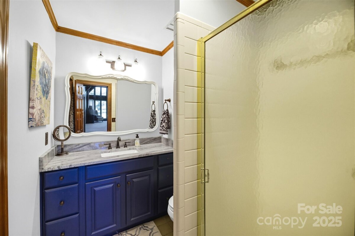 Nestled within the exclusive gated community of Heatherloch, this exquisite lake view residence exudes timeless elegance and craftmanship. Constructed with stone sourced from the same quarry as the renowned Biltmore Estate, the home's exterior and interior radiates sophistication and durability. Step inside to discover lustrous bamboo hardwood floors complemented by one-inch thick, tongue-and-groove V grooved oak paneling adorning the walls, creating a warm and inviting ambiance. At the heart of the living room stands a majestic 16-foot-wide stone fireplace, a stunning wood-burning centerpiece with optional gas assist and a custom-crafted mantle, perfect for cozy gatherings. The primary bathroom is a sanctuary of indulgence, highlighted by a beautiful porcelain-coated cast iron tub that adds a touch of vintage charm. The meticulously renovated kitchen is a chef's dream, boasting custom granite countertops, bespoke cabinetry with convenient pull-out drawers, and a thoughtfully designed pantry wall for seamless organization. The bathrooms have been transformed with luxurious vanities, featuring elegant granite and quartzite finishes that elevate the space. This remarkable home offers unparalleled living spaces and breathtaking lake views, presenting a rare opportunity to own a residence of such distinction and character. You do not want to miss the chance to experience this home's extraordinary allure.