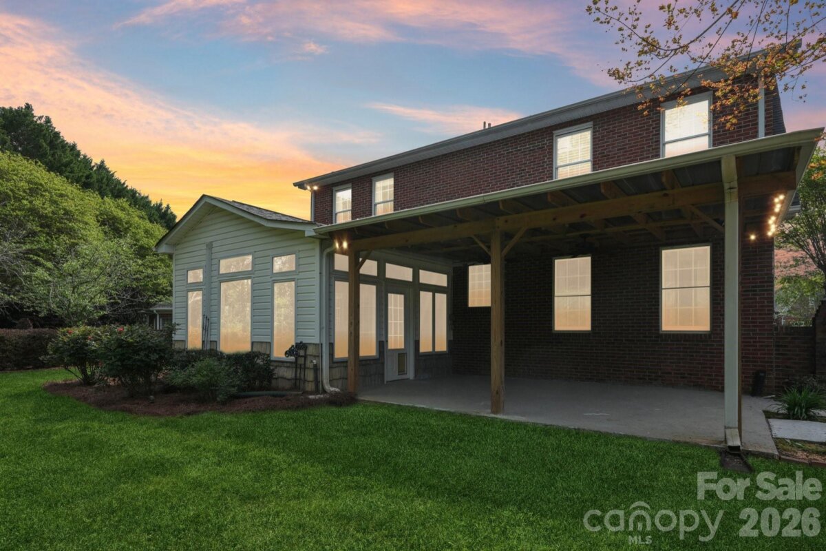 Freshly painted and move-in ready, this beautifully maintained brick home sits on a quiet cul-de-sac in the desirable Waterford community. From the moment you walk in, you’re greeted by a bright two-story foyer, rich Brazilian Walnut flooring, and an open, inviting layout designed for both everyday living and effortless entertaining. The spacious kitchen is the heart of the home, featuring white cabinetry, stainless steel appliances, tile flooring, and a sunny breakfast area that flows seamlessly into the main living space. The cozy gas log fireplace creates the perfect gathering spot, while the sunroom just off the living area offers a peaceful retreat for morning coffee, reading, or working from home with views of the backyard. The main-level primary suite provides comfort and privacy with a large walk-in closet and a spa-like bath complete with dual vanities and a garden tub. Upstairs, you’ll find additional bedrooms and a versatile bonus room—ideal for a media space, playroom, or home gym. Step outside to your fully fenced backyard—perfect for pets, entertaining, or simply relaxing in your own private outdoor space. A covered rear porch and beautifully maintained landscaping complete the setting. With a two-car garage, flexible layout, and fresh updates throughout, this home offers the space, style, and setting today’s buyers are searching for.