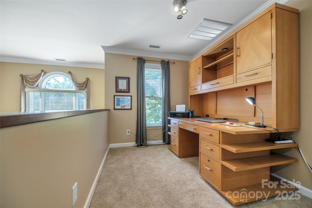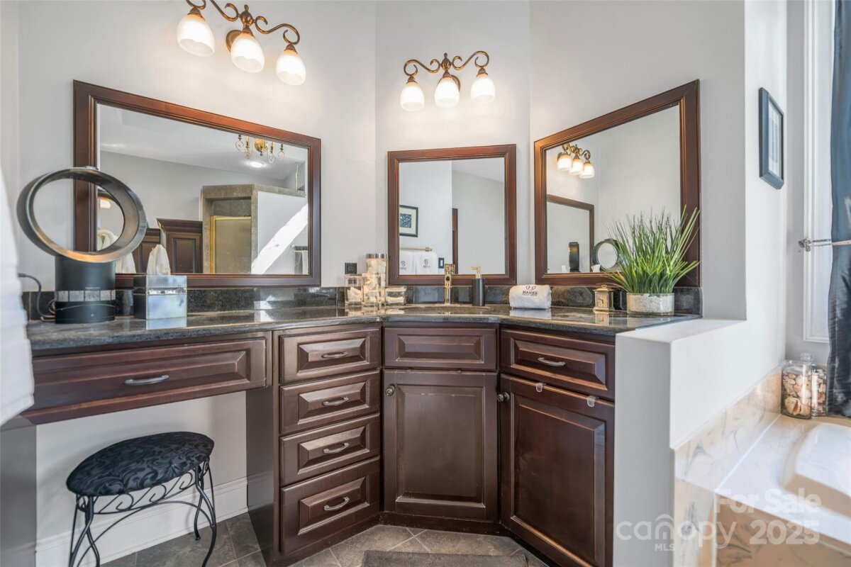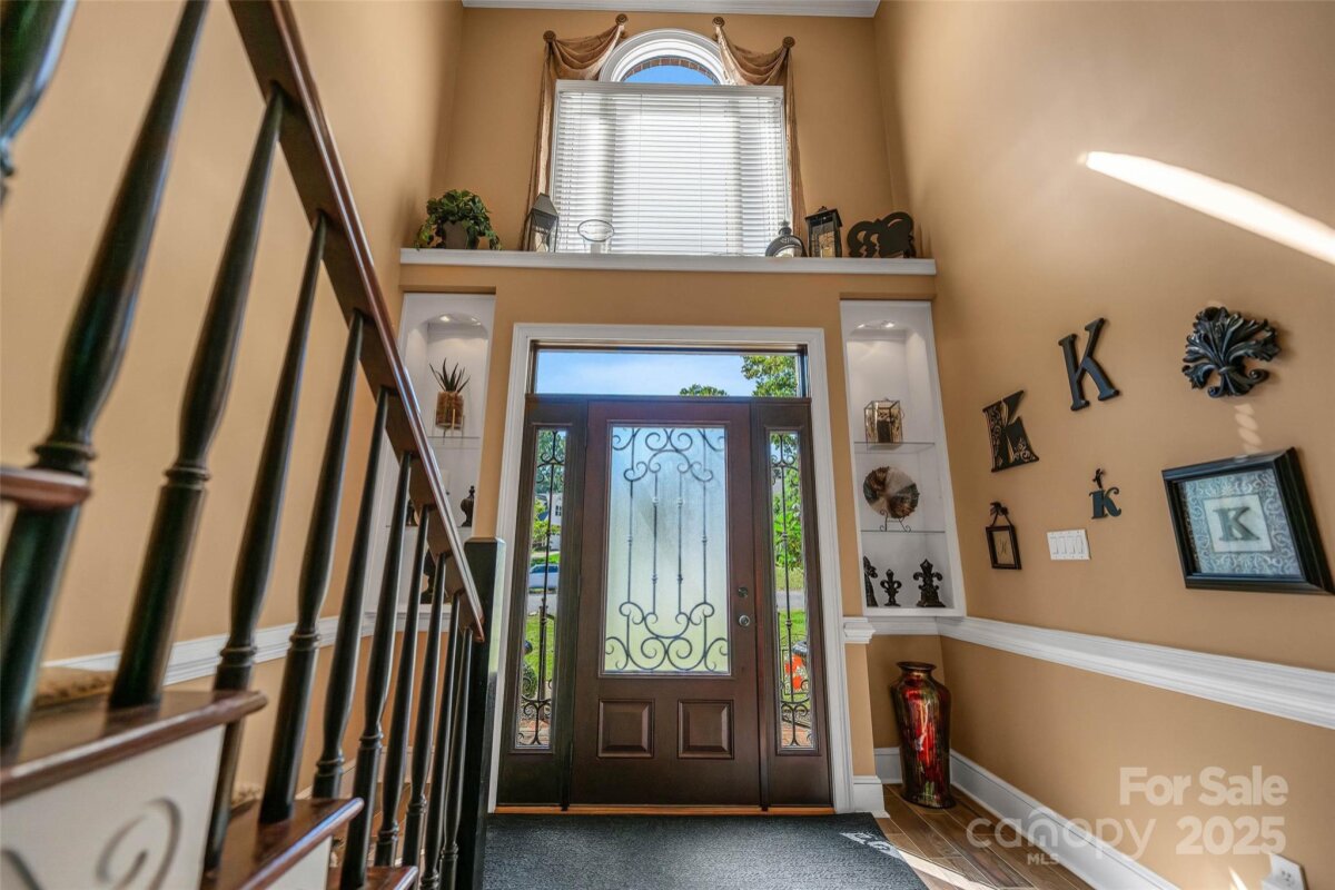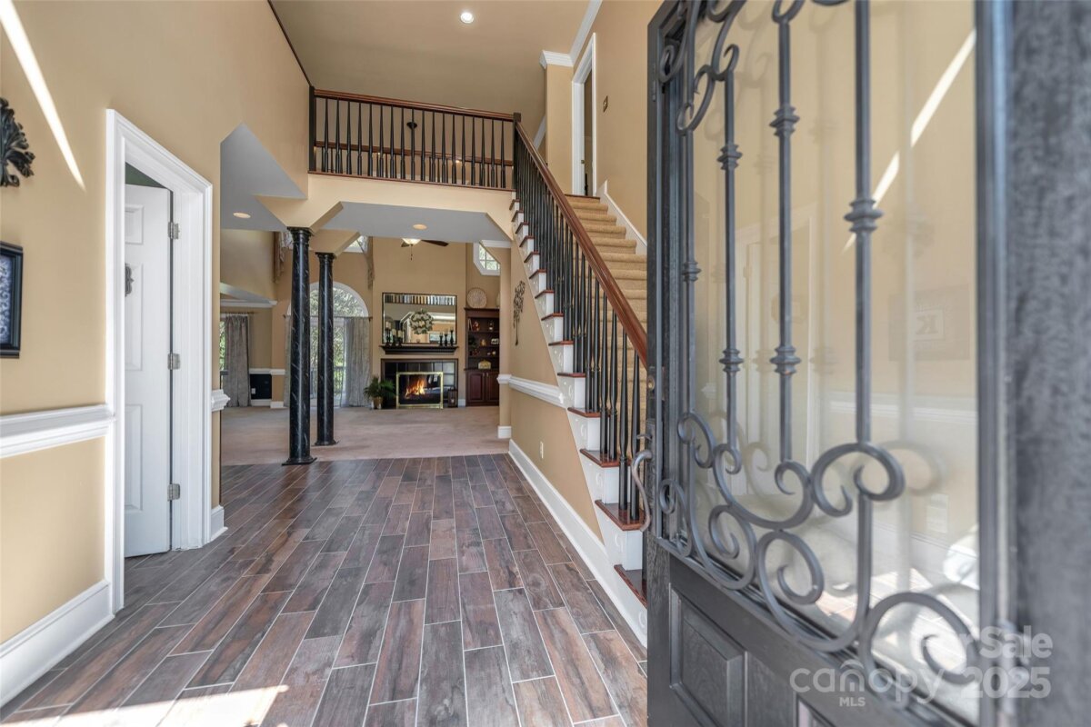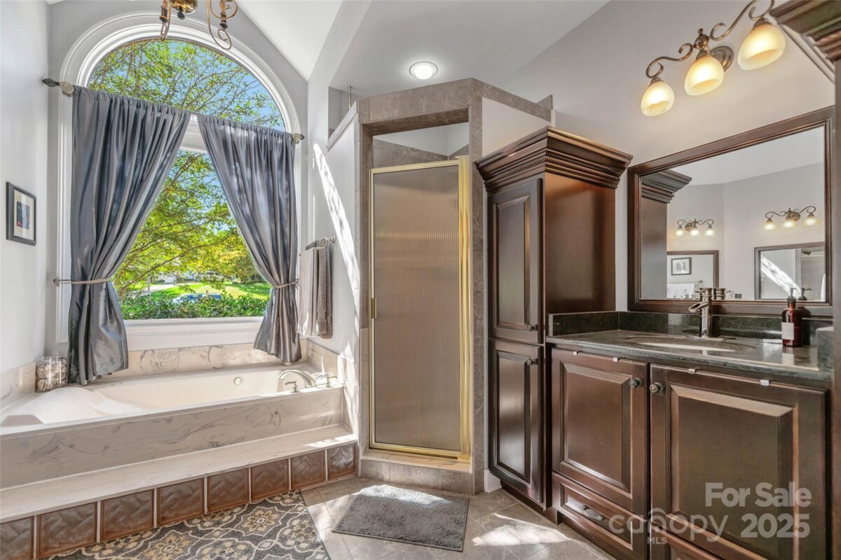 Welcome to 2769 Independence Way, an extraordinary residence tucked away in a quiet, private cul-de-sac, offering both serenity and convenience with quick access to I-85 for an easy commute. This spacious home has been thoughtfully updated and beautifully maintained, blending timeless design with modern features that make it truly one-of-a-kind. The main level centers around the stunning kitchen, fully updated in 2022 with new cabinetry, granite countertops, a custom hand-cut backsplash, frosted glass cabinet details, and new lighting. Durable wood-look ceramic tile flooring flows through the kitchen, foyer, and bath, while the dining room and owner’s suite showcase custom-designed and painted trey ceilings by local artist Denise Price Thomas. The living room is enhanced with custom cabinetry and full granite accents, while the primary suite offers a spa-like retreat with a beautifully renovated bathroom featuring custom cabinetry by Flat Rock Cabinetry, marble tub and shower walls, new flooring, updated sinks and faucets, and a swinging privacy door. Additional upgrades include remote-controlled upper foyer blinds and a high-security Pella front door installed approximately five years ago. The fully finished walk-out basement provides remarkable versatility with a fifth bedroom, a third full bathroom updated in 2025, and a second family room. A small kitchenette with granite and cabinetry makes the space ideal for guests, in-laws, or even independent living quarters. The lower level also features a custom stacked-stone fireplace, a media room with custom window treatments, detailed tile work at the base of the stairs, and Phantom retractable screens on doors leading to the lower patio. A custom workshop and hobby room off the main garage expands the home’s functionality even further. Garage and workshop space are truly exceptional. In addition to the oversized attached garage with a workshop, the property offers a detached garage built in 2009, custom-matched brick, and a full electrical service capable of powering a welder or charging a hybrid vehicle. This garage includes extra-thick concrete flooring to accommodate a vehicle lift, fluorescent lighting, a floored attic with pull-down stairs, exterior LED lighting, and a side concrete ramp that allows motorcycles to be loaded without moving cars. Altogether, the property offers parking for up to eight vehicles, as well as additional parking alongside the detached garage with shore power for an RV, boat, or trailer. The outdoor living spaces are equally impressive. In 2023, the deck was completely renovated by Fun Outdoor Living of Charlotte, incorporating Timbertech grade-2 decking with a hidden fastening system for a sleek finish, oversized supports, and new wood decking. Phantom screens on the upper-level deck doors expand your ability to enjoy fresh air comfortably. The exterior also includes a decorative paver block wall completed approximately six years ago, full decorative curbing along the top lawn and driveway, and rubber mulch surrounding the home to reduce maintenance and guard against insects. Steel entry doors with impact-resistant glass further enhance security and durability. This home represents a rare opportunity to own a property that combines fine craftsmanship, extensive upgrades, versatile living spaces, and unmatched garage and workshop facilities.... on a lot that is oversized with over an acre of land and adjacent to greenspace for privacy and serenity. Whether entertaining on the renovated deck, hosting family in the finished basement suite, or pursuing projects in the custom garages, this residence offers the perfect balance of comfort, functionality, and long-lasting quality.