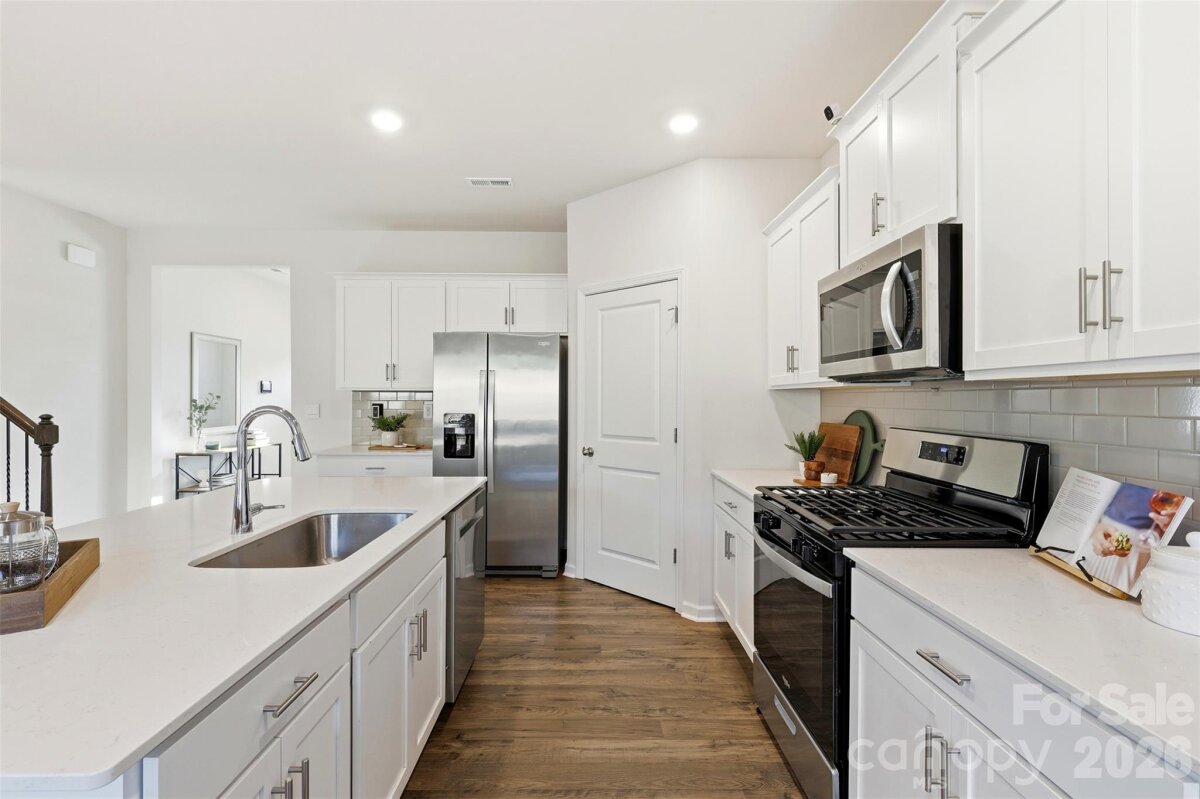 Welcome to 8232 Kennesaw Drive, a beautifully maintained home in the sought-after Nolen Farm community that is the only five bedroom home currently on the market at the time of listing. Not only does this property feature a downstairs bedroom with a full bathroom adjacent, ideal for a guest retreat, but the well-thought out Hayden K floor plan also has a dedicated first floor office with glass French doors and a versatile loft upstairs to go alongside the other four bedrooms, two full baths and laundry room. With a large two-car garage and one of the most desirable lots on Kennesaw Drive, backing to peaceful wooded views, this home surely won't last long. The main level features an open living area filled with natural light, a well-appointed kitchen that flows into a dining space and a large living room with a gas fireplace. Upstairs, the spacious primary suite provides a private retreat, complemented by three additional bedrooms and a third full bath. Step outside to a fully fenced backyard that offers privacy, space to relax, and room to play, all enhanced by the quiet wooded backdrop - a rarity in a new construction neighborhood where the expectation is often a yard that blends into three neighbors. A well-planned community, Nolen Farm has every amenity that the modern buyer is looking for, including a clubhouse, outdoor pool, dog parks, walking trails, playgrounds, sand volleyball courts, pickleball and tennis courts. Less than 7 miles from downtown Belmont, and under 5 miles to Gaston Day School, Gaston Country Club and even closer to Lake Wylie, this neighborhood is a dream location and value with all of this for just under $440K.