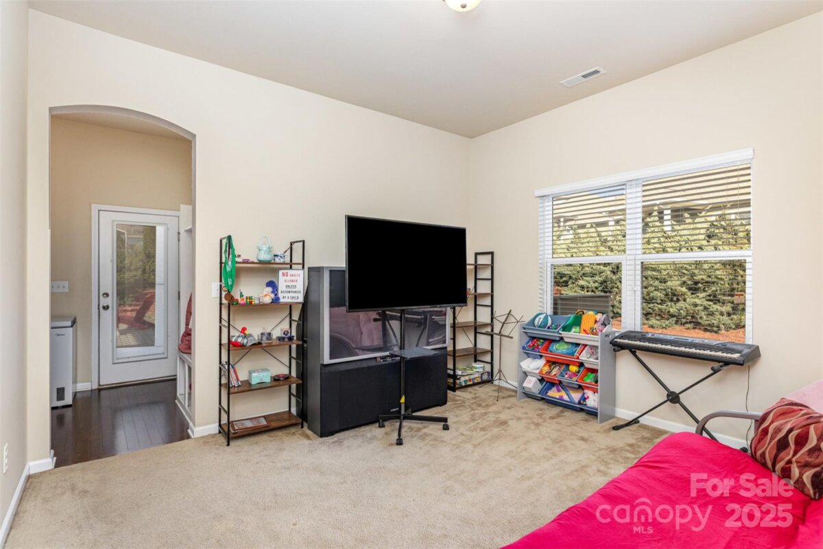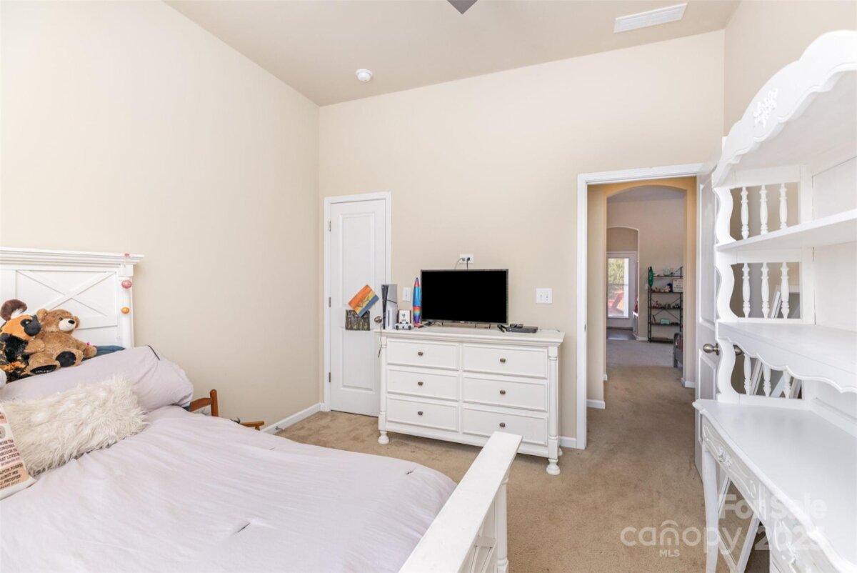 This David Weekly wide open, split floor plan, RANCH home offers BOTH inside and outside spacious living and provides for that desired privacy between neighbors! Besides being located in Harrisburg NC with its top rated schools, the Hawthorne neighborhood is a 101 SFH community with 60 of its homes being 1 story and situated on very generous sized lots. This well taken care of home has been freshened up interiorily and exteriorily. This home features a 29'x 7' Expansive Covered Front Porch and a 27'x11'x5" Covered Patio with Dual Fans in the fully fenced in Backyard. The Backyard also features a 23'5"x16'x5" Wooden Deck extension which is home to a firepit and generous room for lots of entertaining. Upon entering into the home, walk into the beautiful hardwood Foyer, and off to your right, see the Dining room featuring hardwoods as well. As one walks further into the home one will see the familyroom with its fireplace, and off to the right the expansive kitchen which features maple cabinets, granite countertops with tile backsplash, stainless steel appliances which include a double oven, a gas stovetop, dishwasher and refridgerator. Eating options include a Breakfast Area that can accomodate a table seating of (4) very easily, and an Eight Foot granite island that seats (4) countertop stools and plate settings very comfortably (stools remain). As the daylight streams in through the white 2 inch faux blinds and highlights the beautiful hardwood floors, and all the rooms throughout, this home and its 2500+ square feet feels very cozy. The Primary and 1 bedroom is located on the left side of the home and the other 2 bedrooms and flex room are located on the other side. The Primary accomodates a king size bedroom set and (2) lounge chairs with room to spare. The Primary ensuite bathroom features dual sinks, a jetted sunken tub, a glass encased shower, a private water closet (toilet), and a Huge Walk-in Closet! The bedroom at the front of the house is oversized at 12'7"x9'10" and has a semi-private bathroom across the hall which features an over-sized walk-in shower. The other bathroom on the other side of the home features a deep tub/shower combo. One of the two bedrooms on the other side of the home is being used as a Home Office. The Flex Room is off of the kitchen and is ideal for a playroom or office. There is also a "sunny" dedicated Laundry room with a door and window! This home features a Surround Sound System and was built with Surge Protection throughout. All bedrooms and the flex room are pre-wired for ceiling fans; two bedrooms and the living room already have ceiling fans. EXCLUSUIONS: Washer and Dryer, Beverage Refridgerator, Bookshelves throughout, small deep freezer in kitchen and the Entertainment Center in the Livingroom. ALL OUTDOOR FURNISHINGS are EXCLUDED (EXCEPT FOR)... The Playhouse, Swing Set, and Trampoline w/netting wall protection in the Backyard. Lastly, this home has (16) Solor Panels. They are being financed and the loan is ASSUMABLE! The homeowner's monthly loan payment is $109.78 and the ANNUAL Duke Electric bill has been running $504; proof can be provided.
