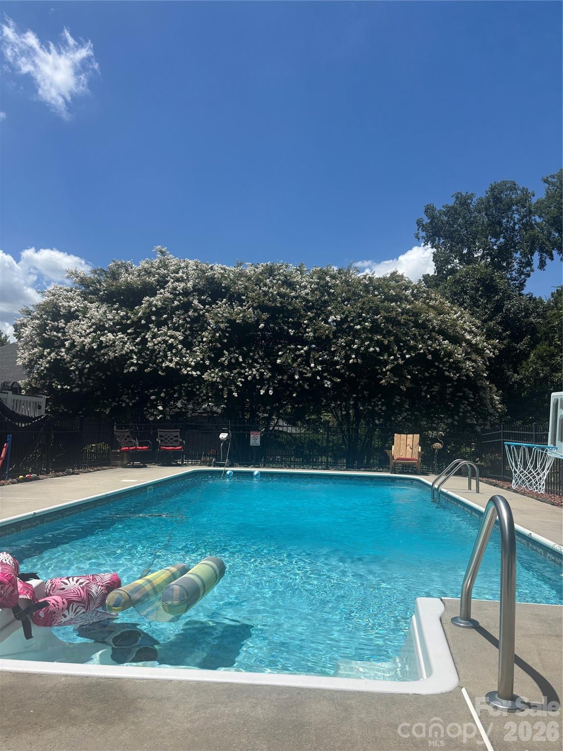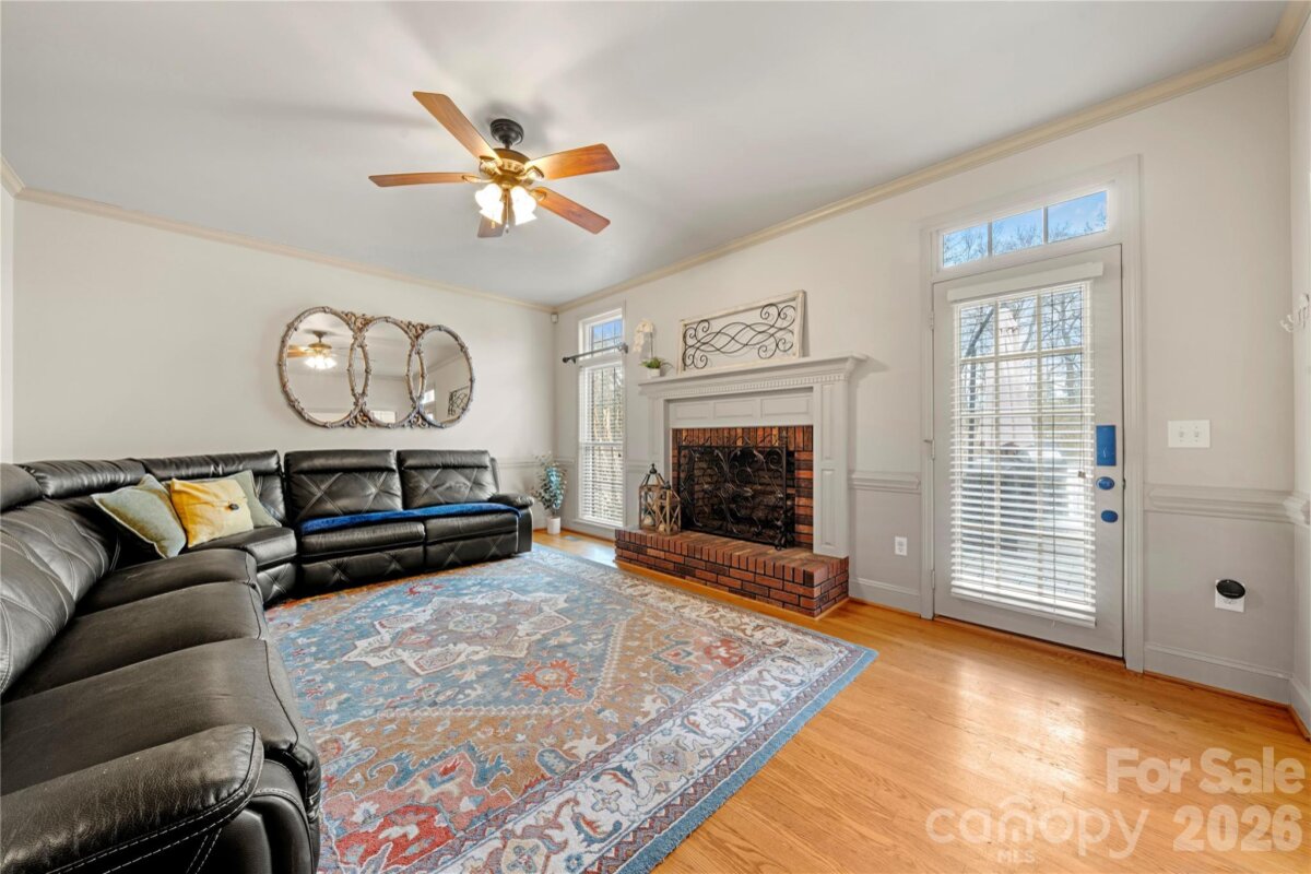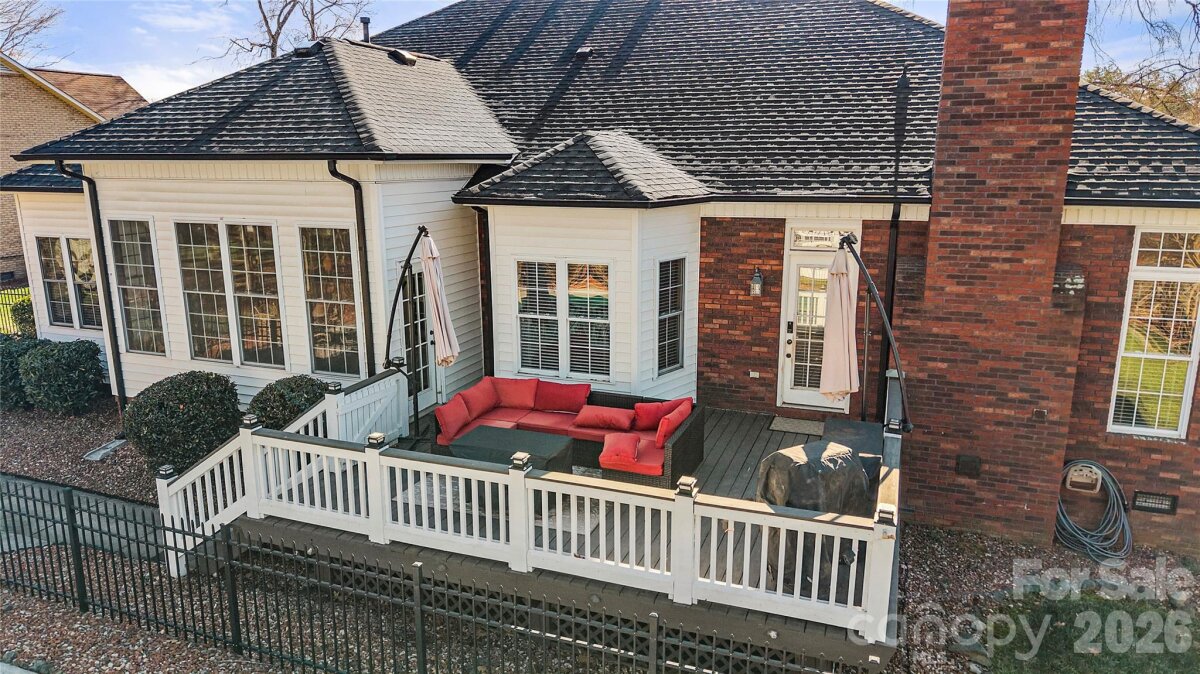 Absolutely stunning full brick 3-bedroom, 2.5-bath RANCH located in the highly sought after Clare Haven neighborhood! This home welcomes you with elegant crown molding, which adds timeless character. Seamless hardwood floors flow throughout entire home, with tile in the bathrooms, laundry room and sunroom. No carpet! Home is on 0.57 acre lot with a large back deck that overlooks a fenced in back yard with a generous sized salt water pool. Kitchen has stainless steel appliances, granite countertops and the refrigerator conveys! Home is complete with a separate study/home office overlooking the sunroom, a dedicated laundry room and 1/2 bathroom. Two Tesla electric car chargers (80Amp & 50Amp) convey and home has newer HVAC (2022). Pool building/shed located in the back yard to convey! Enjoy this home located in Harrisburg, NC which offers highly rated public schools, a small town feel, and is conveniently located to I-485 and I-85 for easy access to Charlotte, NC!