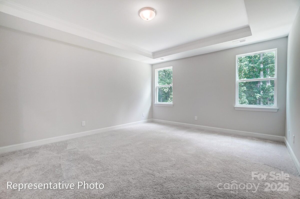 This Colfax floorplan is one you won't want to miss in the all-new Harmony community in Harrisburg. The home features five bedrooms, four full baths, and more than 3,500 square feet of living space. The main floor includes a guest suite with a full bathroom, large kitchen with white cabinets and matte black hardware, farmhouse sink, an oversized island, quartz countertops, tile backsplash, and walk-in pantry. The main level also features an office, dining room, powder bath, breakfast area and large open family room. The upper level boasts 9-foot ceilings and includes the primary bedroom and bath. The primary suite features a tray ceiling, luxury shower with semi-frameless door, dual vanities and linen closet. The upper level also offers 3 additional bedrooms, 2 bathrooms, laundry room with tiled flooring and a large bonus room with closet space. Tray ceilings are also featured in the foyer and dining room. Family room features a gas Cosmo fireplace accented by a shiplap wall and slate surround. Outdoor living is made easy with a screened porch. Neighborhood amenities to include a cabana with outdoor pool, perfect for relaxing and entertaining.
