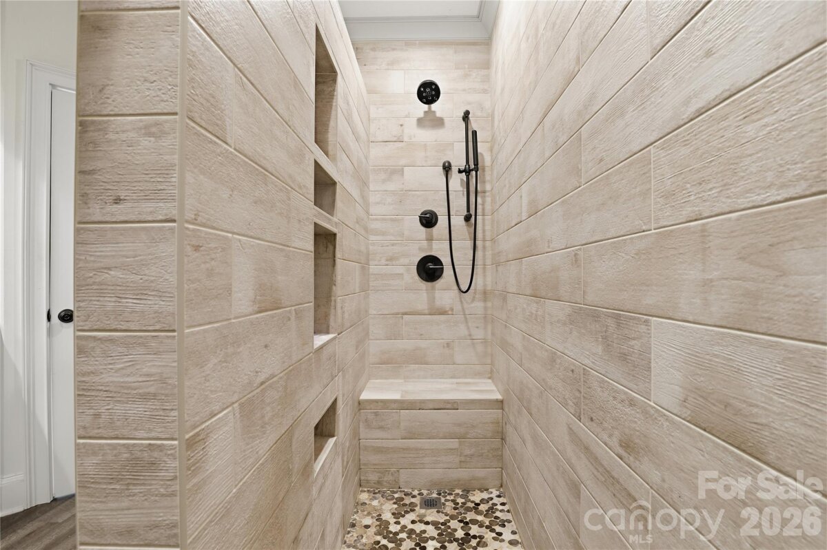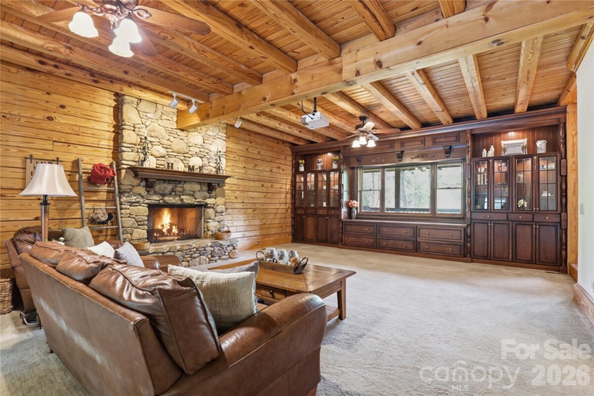 Tucked behind a private gate and set far from the road along a winding drive, 12300 McCord Road in Huntersville offers a rare blend of peaceful seclusion and timeless rustic charm. Nestled on 11.27(+/-) acres of serene, wooded beauty, this remarkable property invites you to slow down, breathe deeply, and experience true country elegance—just minutes from modern conveniences. This stunning 6,033 sq ft Custom Built Log Cabin home is thoughtfully designed with both comfort and character in mind. Featuring 7 spacious bedrooms and 4 bathrooms and 2 1/2 baths, including a 2nd living quarter with access from the home and garage. At the heart of the home, the gourmet chef’s kitchen featuring a Viking Gas Stove and oven, is a true delight—crafted for both everyday living and entertaining, with ample space, high-end built-in finishes, and a welcoming atmosphere that makes every meal feel special. Large center prep island with its own sink & beverage fridge, and plenty of room for seating at the island. Enjoy the large great room with beautiful built-ins and gas fireplace where you can gather and watch your favorite movie on the large screen, just add the popcorn! Primary Bedroom is its own suite with gas fireplace and its own door to the gorgeous porch that expands to the front of the home, perfect for a cup of coffee in the morning or enjoying the sunset in the evening. The primary bedroom offers its own ensuite with a see-through gas fireplace between the spa-like walk-in shower, built-ins in the changing room + walk in closet and 2nd closet. Just off the primary ensuite/changing room is a work-out room with multi functioning for many options. Step outside through the sunroom just off the great room to your own private retreat, where a beautiful in-ground pool with a cascading waterfall and relaxing hot tub awaits. The sunroom is a wonderful place to unwind from a day outside, this stunning room includes a kitchen, and 1/2 bath that has a door to come in from the pool. Upstairs, a spacious living/game room offers endless possibilities—whether for recreation, media, built-in wet bar, or a private escape to the expansive deck that overlooks the pool. Just down the hall is 2 more bedrooms, full bathroom and large laundry room with plenty of cabinets and folding counter. Step down into the additional 2nd living quarters, featuring a spacious 2nd living area that leads you into the 2nd living quarters, where you will find a full bathroom, 2 bedrooms and a large living area with gas fireplace, kitchen, and room for an office. The home is complete with a 2-car garage with ample extended space and breezeway between garage and home with access to the garage from the 2nd living quarters from within the home. If you are looking for a place to tinker, the garage also has a workshop area and an additional laundry room with washer and dryer. Additional large storage room a rear of home near pool entrance. This RARE GEM in Huntersville offers an abundant room to roam, explore, and enjoy the beauty of your own land. From the gated entrance to the peaceful acreage beyond, this property is more than a home—it’s a lifestyle of privacy, charm, and rustic luxury, paired with incredible potential in one of Huntersville’s most desirable settings.