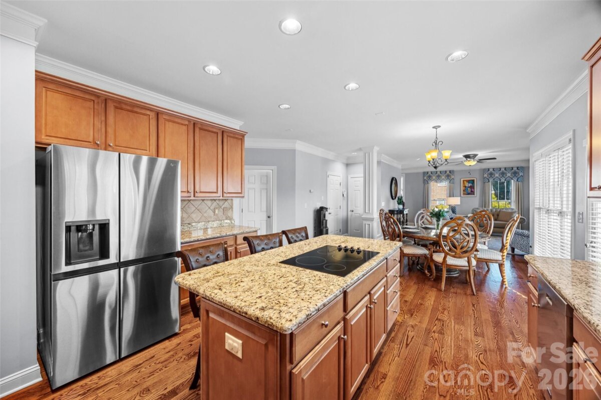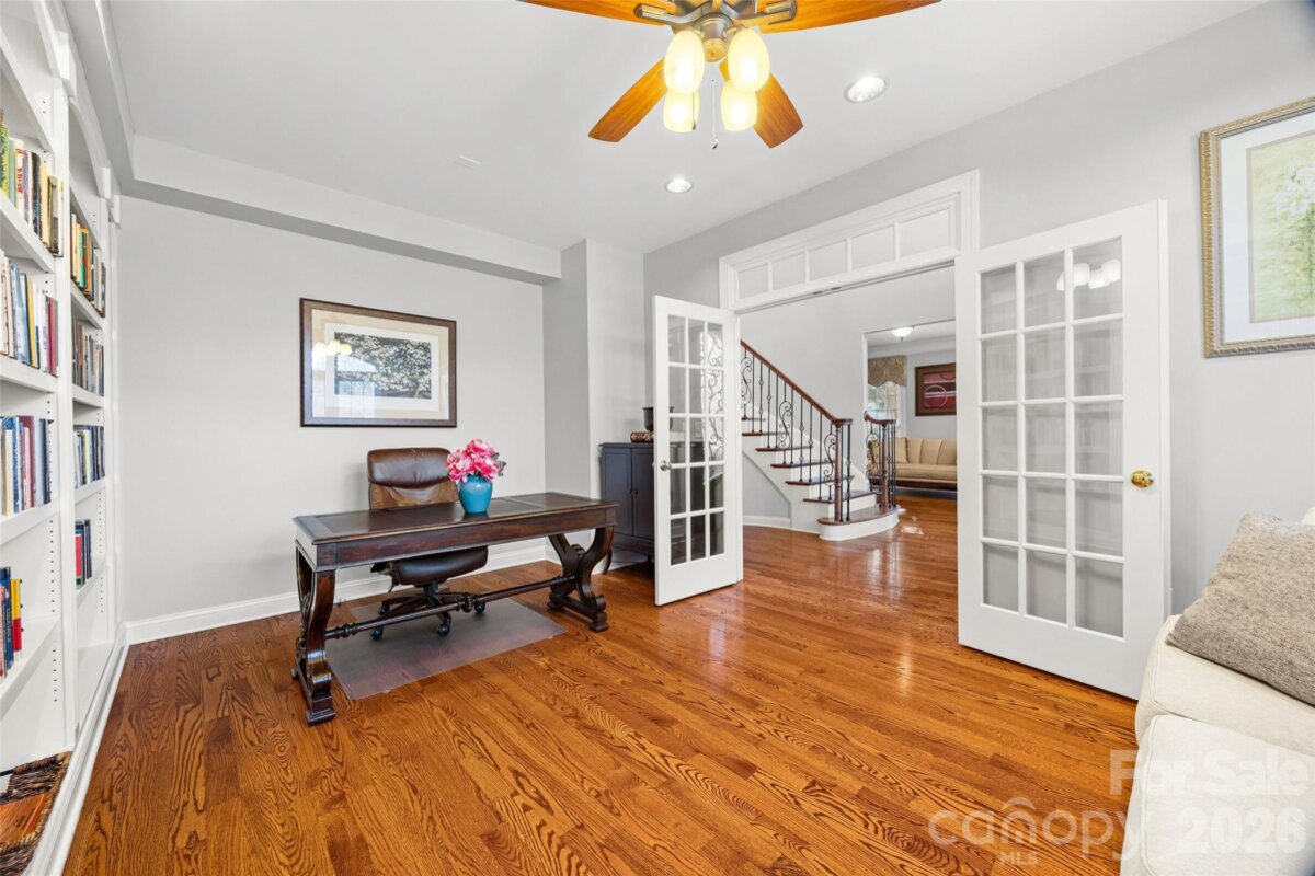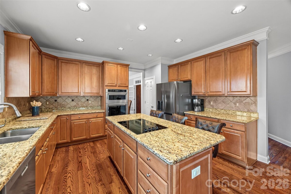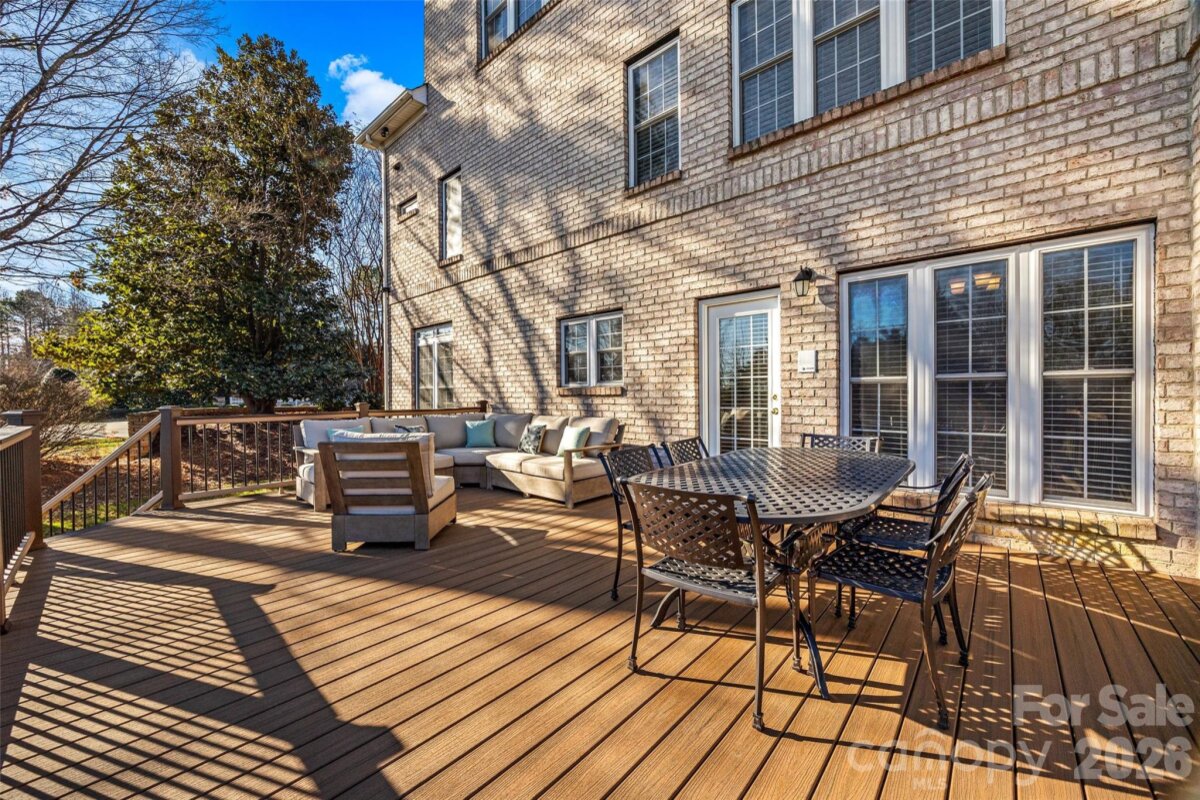 Welcome home to Northstone, one of the area’s most sought-after golf course communities. Offering over 5,000 square feet, this stunning full-brick residence features 5 bedrooms and 4.5 baths and is ideally situated on the reserve side of the golf course. From the moment you arrive, the custom wrought-iron French doors set the tone for the elegance found throughout. Inside, a welcoming foyer opens to a private library/office with wall-to-wall custom-built-in bookshelves. The main level showcases refinished hardwood floors, elegant spiral staircases with wrought-iron spindles at both the front and rear of the home, and an open-concept kitchen and family room—perfect for informal entertainment. Intimate gatherings can transcend over to the formal dining and living rooms. The upgraded kitchen features stainless-steel appliances, an in-wall microwave and oven, granite countertops, an island cooktop, two pantries (including a walk-in), and abundant storage for entertaining essentials. Step outside to a private backyard retreat with a replaced and expanded low-maintenance Trex deck, ideal for effortless outdoor living. The flat backyard offers year-round enjoyment with endless possibilities—room for a future pool, play area, fenced yard for your furry family members, or patio expansion. Upstairs, the expansive primary suite is a true retreat, complete with a sitting area and a bathroom featuring dual vanities, a soaking tub, separate shower, and dual walk-in closets. Two additional bedrooms share a Jack-and-Jill bathroom, while a secondary primary suite with a private bath is perfect for family and guests. A spacious bonus room completes the second floor. The newly finished third floor is an entertainer’s dream filled with thoughtful details and effortless charm. Offering newly built stairs with wrought-iron spindles, a bedroom currently used as a fitness room, a mini kitchen/bar with custom cabinetry, granite countertops, hardwood floors, pantry, built-in wine refrigerator (to convey). A second living room area creates the perfect space for movie nights or relaxation, while two additional flex rooms offer endless options for a guest room, playroom or hobby space allowing for more usable square footage. Additional highlights include a new roof (2021), a new third-floor HVAC system, an operational irrigation system, and a three-car side-load garage. Warm, inviting, and thoughtfully updated, this exceptional home is ready for its next chapter. Packed with features and flawless upgrades, it truly must be seen to be appreciated. Schedule your private showing today.
