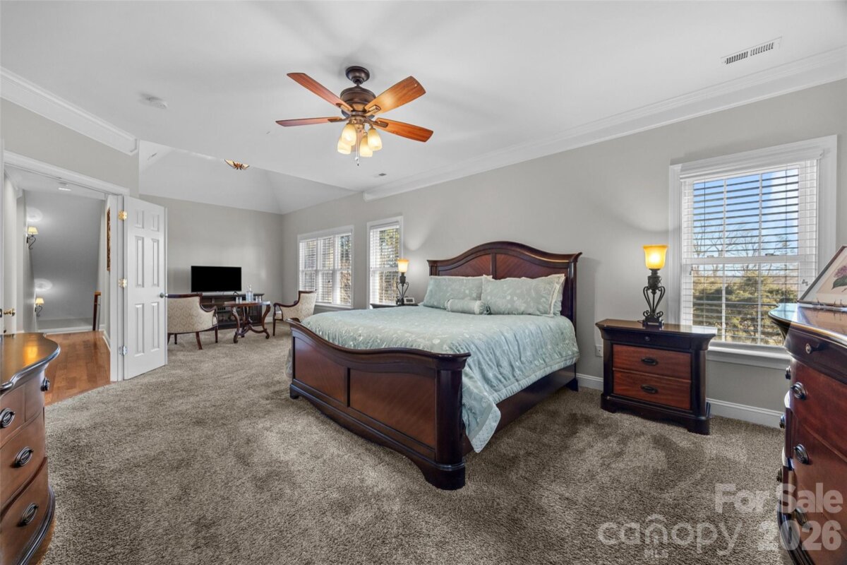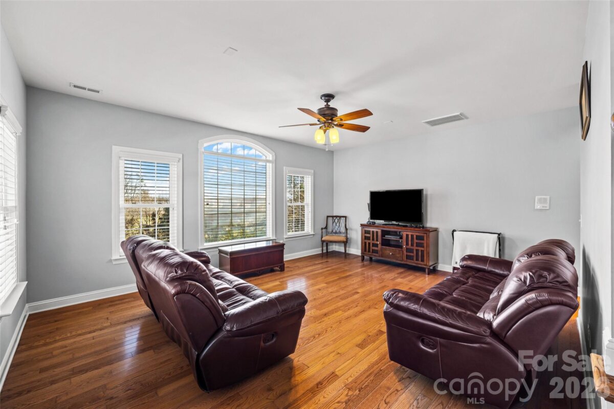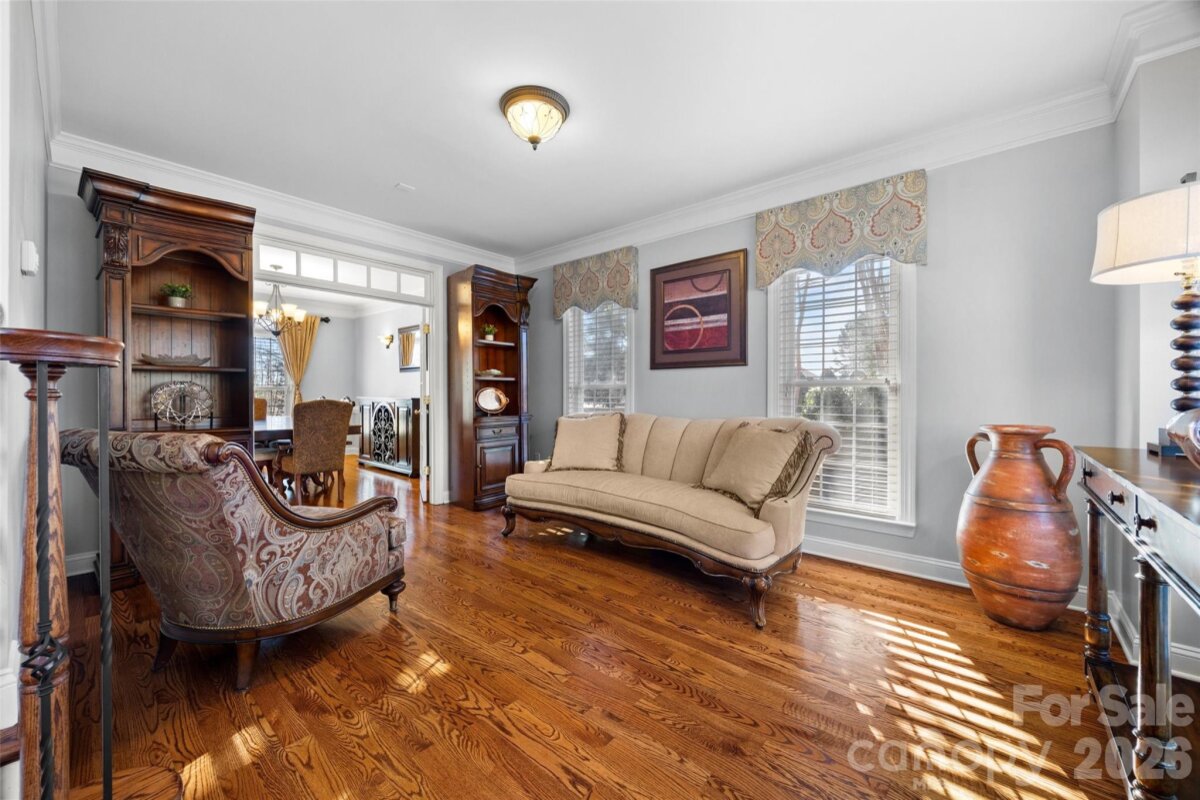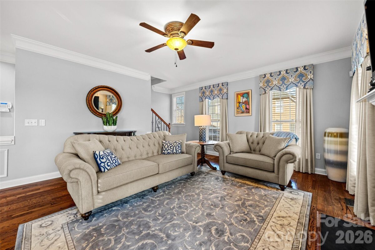 Welcome home to Northstone, one of the area’s most sought-after golf course communities. Offering over 5,000 square feet, this stunning full-brick residence features 5 bedrooms and 4.5 baths and is ideally situated on the reserve side of the golf course. From the moment you arrive, the custom wrought-iron French doors set the tone for the elegance found throughout. Inside, a welcoming foyer opens to a private library/office with wall-to-wall custom-built-in bookshelves. The main level showcases refinished hardwood floors, elegant spiral staircases with wrought-iron spindles at both the front and rear of the home, and an open-concept kitchen and family room—perfect for informal entertainment. Intimate gatherings can transcend over to the formal dining and living rooms. The upgraded kitchen features stainless-steel appliances, an in-wall microwave and oven, granite countertops, an island cooktop, two pantries (including a walk-in), and abundant storage for entertaining essentials. Step outside to a private backyard retreat with a replaced and expanded low-maintenance Trex deck, ideal for effortless outdoor living. The flat backyard offers year-round enjoyment with endless possibilities—room for a future pool, play area, fenced yard for your furry family members, or patio expansion. Upstairs, the expansive primary suite is a true retreat, complete with a sitting area and a bathroom featuring dual vanities, a soaking tub, separate shower, and dual walk-in closets. Two additional bedrooms share a Jack-and-Jill bathroom, while a secondary primary suite with a private bath is perfect for family and guests. A spacious bonus room completes the second floor. The newly finished third floor is an entertainer’s dream filled with thoughtful details and effortless charm. Offering newly built stairs with wrought-iron spindles, a bedroom currently used as a fitness room, a mini kitchen/bar with custom cabinetry, granite countertops, hardwood floors, pantry, built-in wine refrigerator (to convey). A second living room area creates the perfect space for movie nights or relaxation, while two additional flex rooms offer endless options for a guest room, playroom or hobby space allowing for more usable square footage. Additional highlights include a new roof (2021), a new third-floor HVAC system, an operational irrigation system, and a three-car side-load garage. Warm, inviting, and thoughtfully updated, this exceptional home is ready for its next chapter. Packed with features and flawless upgrades, it truly must be seen to be appreciated. Schedule your private showing today.