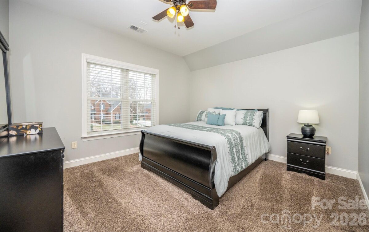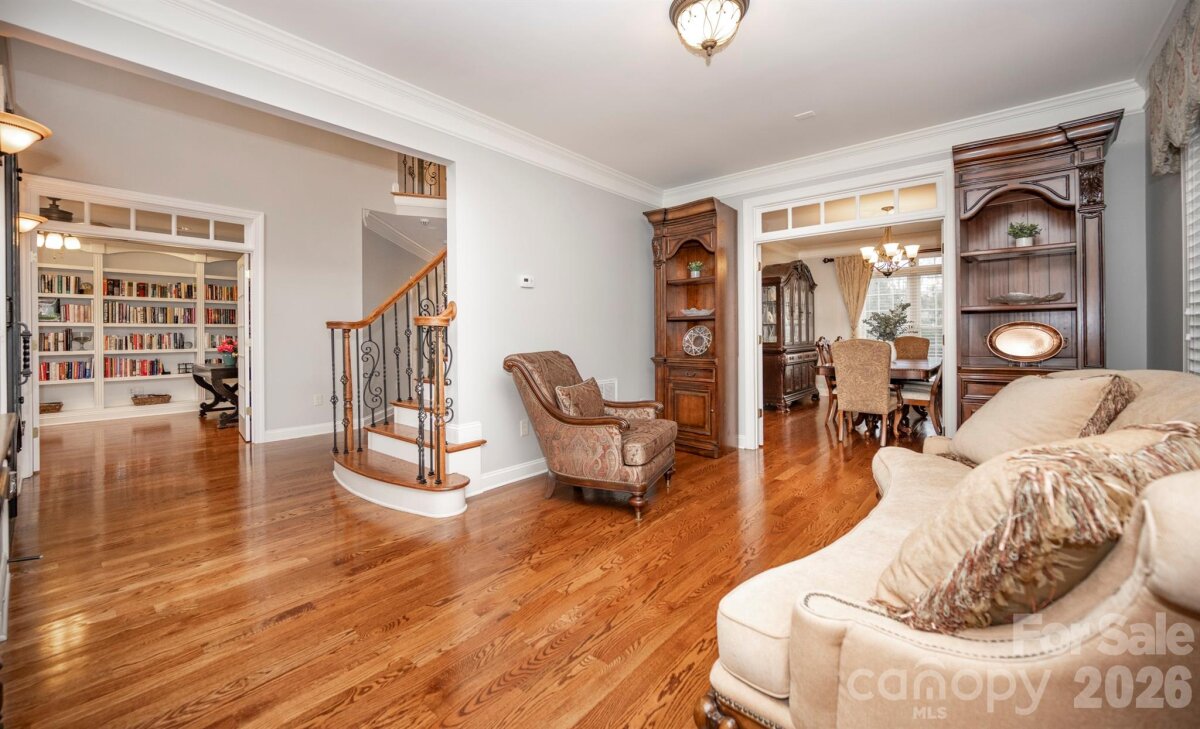 Welcome to this meticulously maintained, full brick home in The Reserve section of the Northstone Country Club Community! At almost 5,300 Sq Ft set on over a third of an acre, this 6 BR, 4.5 bath home with 3-car garage offers the perfect blend of elegance, functionality and abundant space to entertain. Custom wrought iron front doors greet you as you enter the light filled foyer. Wall to wall bookshelves added in the library adds a sophisticated touch while the updated staircase w/wrought iron spindles carries a thoughtful design that is anchored by newer refinished hardwood floors. The living, dining and family room which has a gas log fireplace surrounds the kitchen, the true heartbeat of the home. Stainless steel appliances, center island with cooktop and a 2nd walk in pantry complete the space making entertaining a breeze. Second floor has 4 spacious bedrooms, 3 full bathrooms & a separate bonus room/flex space. The grand primary suite has a lovely sitting area with a spa like bath complete with his and her closets. The newly built out 3rd floor feels like its own destination with additional bedrooms, a full bathroom and media room w/bar area that includes a wine and full sized fridge. The level lot is bordered by trees and lush landscaping. Low maintenance Trex deck is the perfect spot for grilling and entertaining guests. Roof replaced '21. Assigned to great schools, close to shopping, parks & greenways and all major highways. Northstone is a wonderful and unique community offering Private Country Club amenities right at your finger tips! Memberships are available! Please contact the club directly for details.