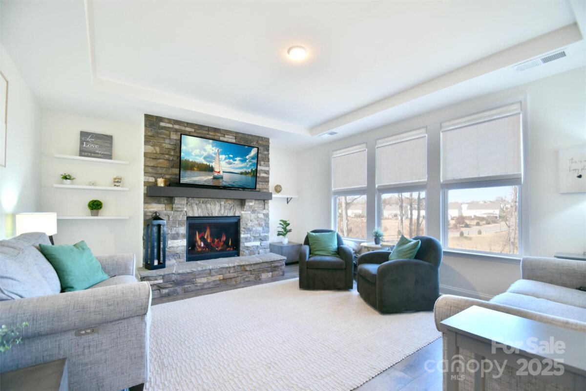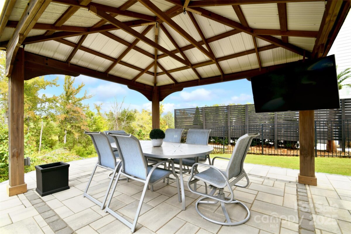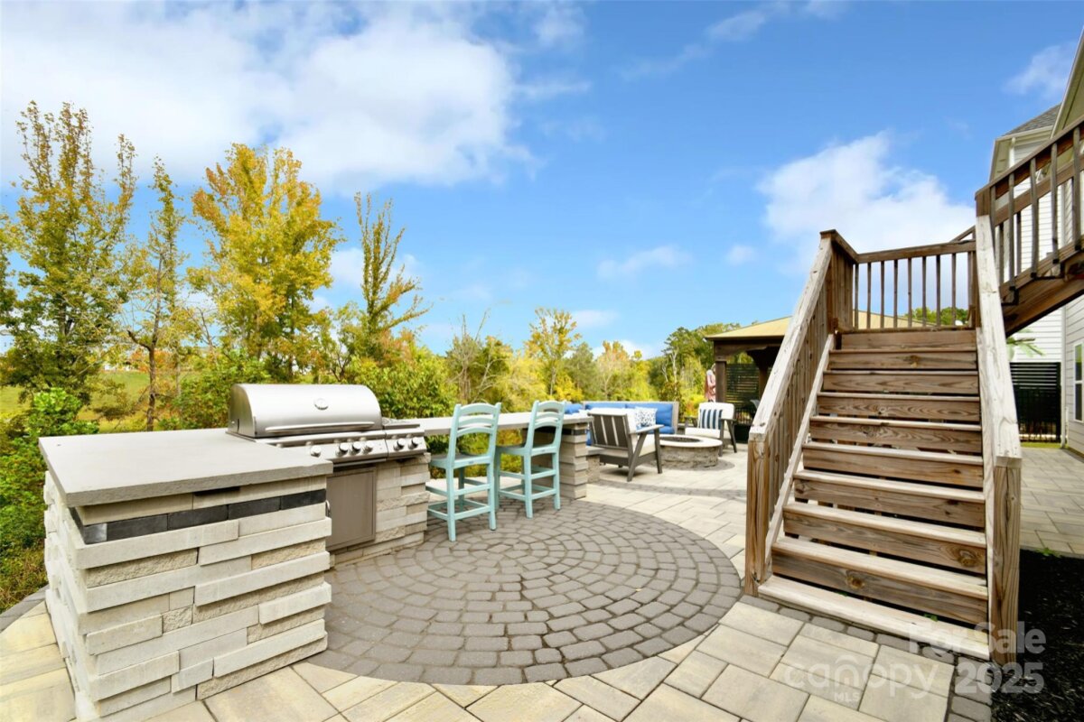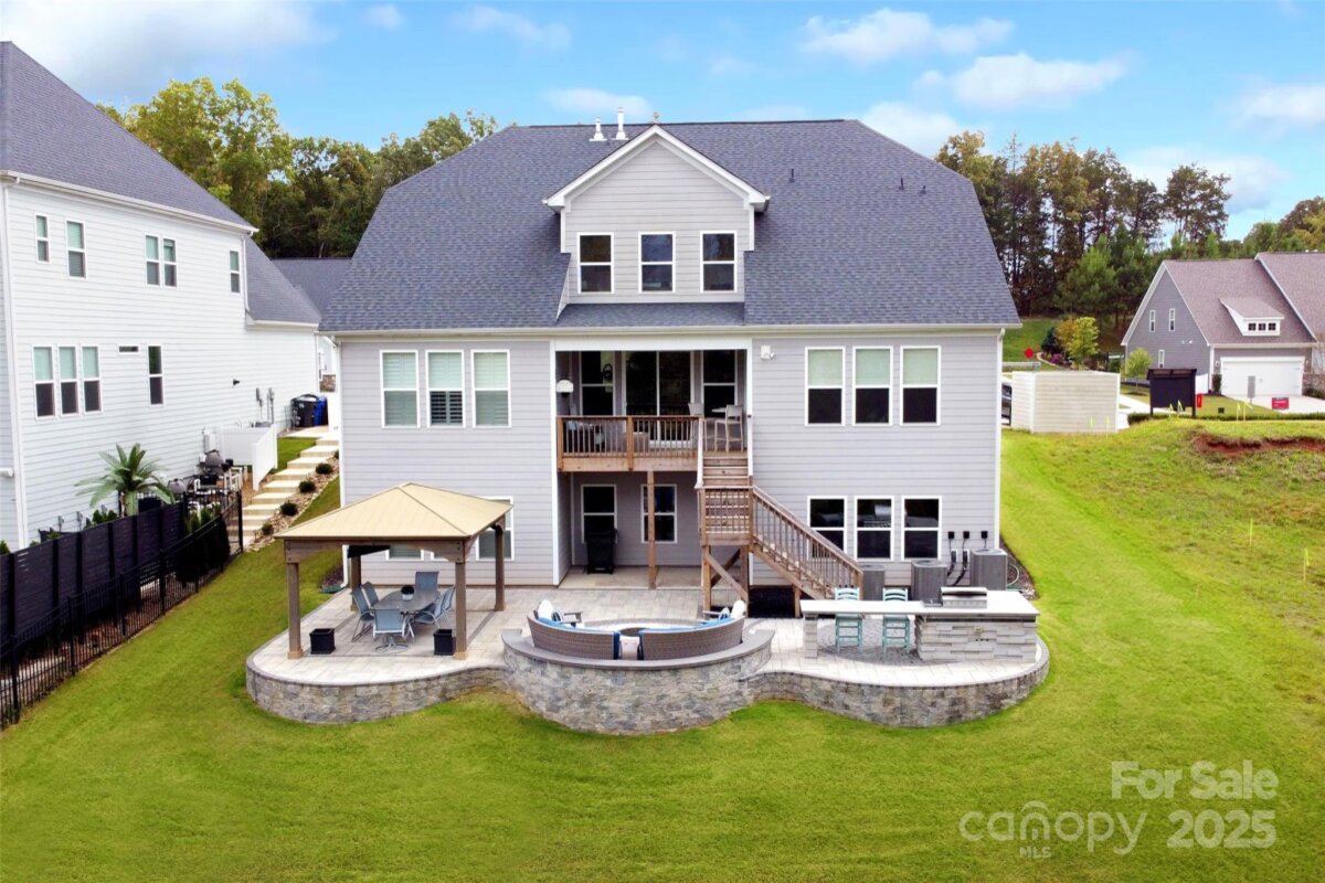 Experience luxury redefined in this immaculate ranch-inspired Pikewood floorplan that over delivers with a spacious finished basement. Beautifully situated on a premier private lot in the highly desirable Walden community, your new home is thoughtfully designed with 5 bedrooms, 5.5 bathrooms. Providing exceptional comfort for modern living, this home also includes a versatile office/den/bedroom on the 2nd floor complete with its own full bath. Step inside to an open-concept main level ideal for entertaining, featuring a gourmet kitchen with GE Café Series appliances, quartz countertops, elegant glass cabinetry, a large center island, and abundant storage. The primary suite is a serene retreat on the main level with 4†plantation shutters, a spacious custom walk-in closet, and a spa-inspired ensuite bath. Every bedroom boasts its own private bathroom. Additional enhancements include epoxy floors in the garage, a 4-ft extended garage length, widened driveway, and a large unfinished storage room in the basement with the potential to be finished to suit your needs. Pre-wiring for audio and security adds modern convenience. The backyard is a true oasis—super private and perfect for entertaining. Enjoy Techo-Bloc Blu pavers, a stylish retaining wall, a fully equipped gazebo with bar, intimate gas fire pit, and an outdoor kitchen featuring a commercial-grade grill and dual burners. With ample space to add a pool, the possibilities for creating your dream retreat are endless. Attractive custom woven wood/grass Roman shades in the family room add warmth and character. Located within minutes of Birkdale Village, Lake Norman, parks, greenways, NorthStone Country Club, the U.S. National Whitewater Center, golf, dining, and quick access to I-77 and top-rated schools—this home delivers the ultimate Huntersville lifestyle in a top school district. Outdoor charm meets modern luxury in this one-of-a-kind property. Don’t miss this exceptional opportunity! * rendering of pool are digitized and are shown to depict a possible future pool