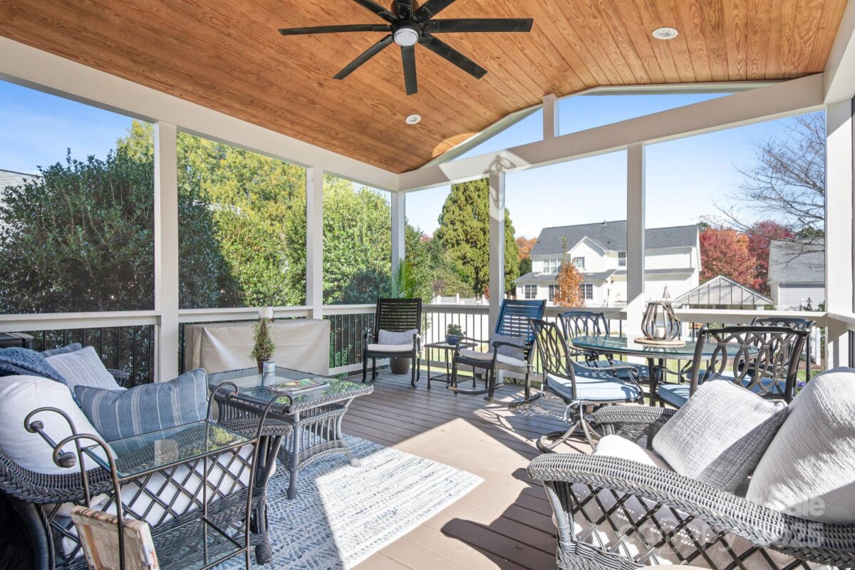 A rare find in the heart of Birkdale Village, this 4 bedroom home is ideally situated on a quiet, tree-lined street and is just a short walk to dining, shopping and entertainment. The Charleston-style double porches introduce one of the largest floor plans available in this coveted community. Inside, this meticulous, move-in-ready home boasts ten-foot ceilings, neutral paint and newly installed wide-plank light oak hardwood flooring throughout the main floor. The large, classically updated kitchen is a chef's delight, featuring ample white cabinetry, a stylish marble backsplash, and granite countertops. Updated lighting and plantation shutters add the finishing touches to this lovely home. Perfect for both family life and entertaining, the kitchen flows seamlessly into a large family room and a bright breakfast nook. Step outside to a wonderful screened porch overlooking a fully fenced yard. A truly grand, southern style staircase leads upstairs to four spacious and light-filled bedrooms and two updated bathrooms. Community amenities invite an active life style and include pickleball/ tennis courts, a pool and clubhouse along with miles of trails that are part of the Emerald Necklace allowing you to walk or bike all over Cornelius or right next door to "The Village"! Within a short drive or even walkable is Birkdale Golf course and the shores of Lake Norman. This community is very convenient to 77, Charlotte and hospitals in both Huntersville and Cornelius. This is a truly special home - arrange your showing today and spend the holidays here! HVAC's with air scrubber 2019 and 2021/ Hot water heater 2023/ Roof 2017/ whole house water purification system is installed.