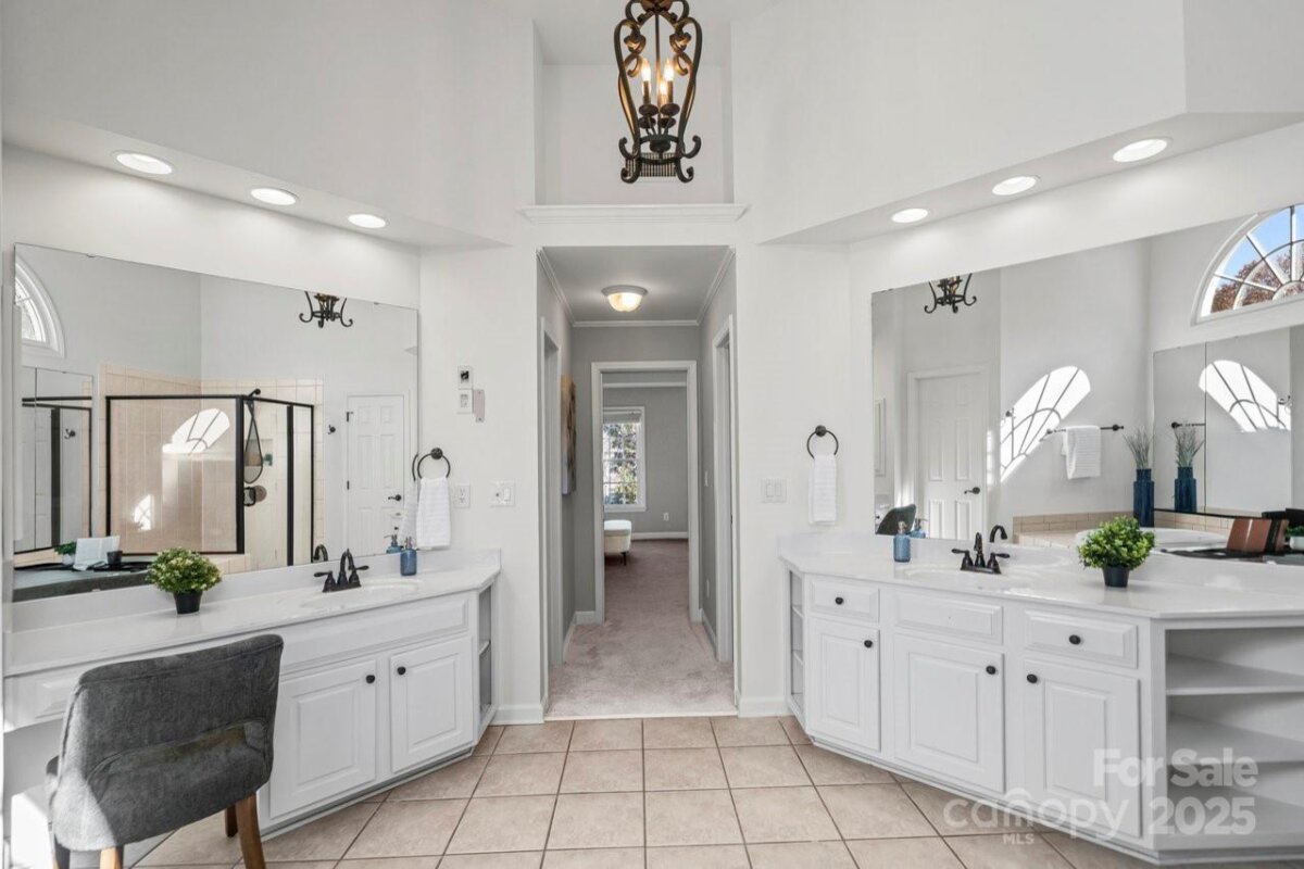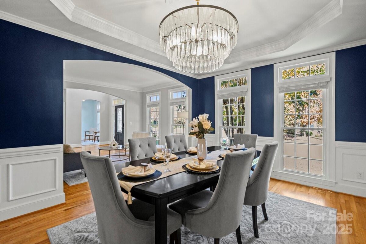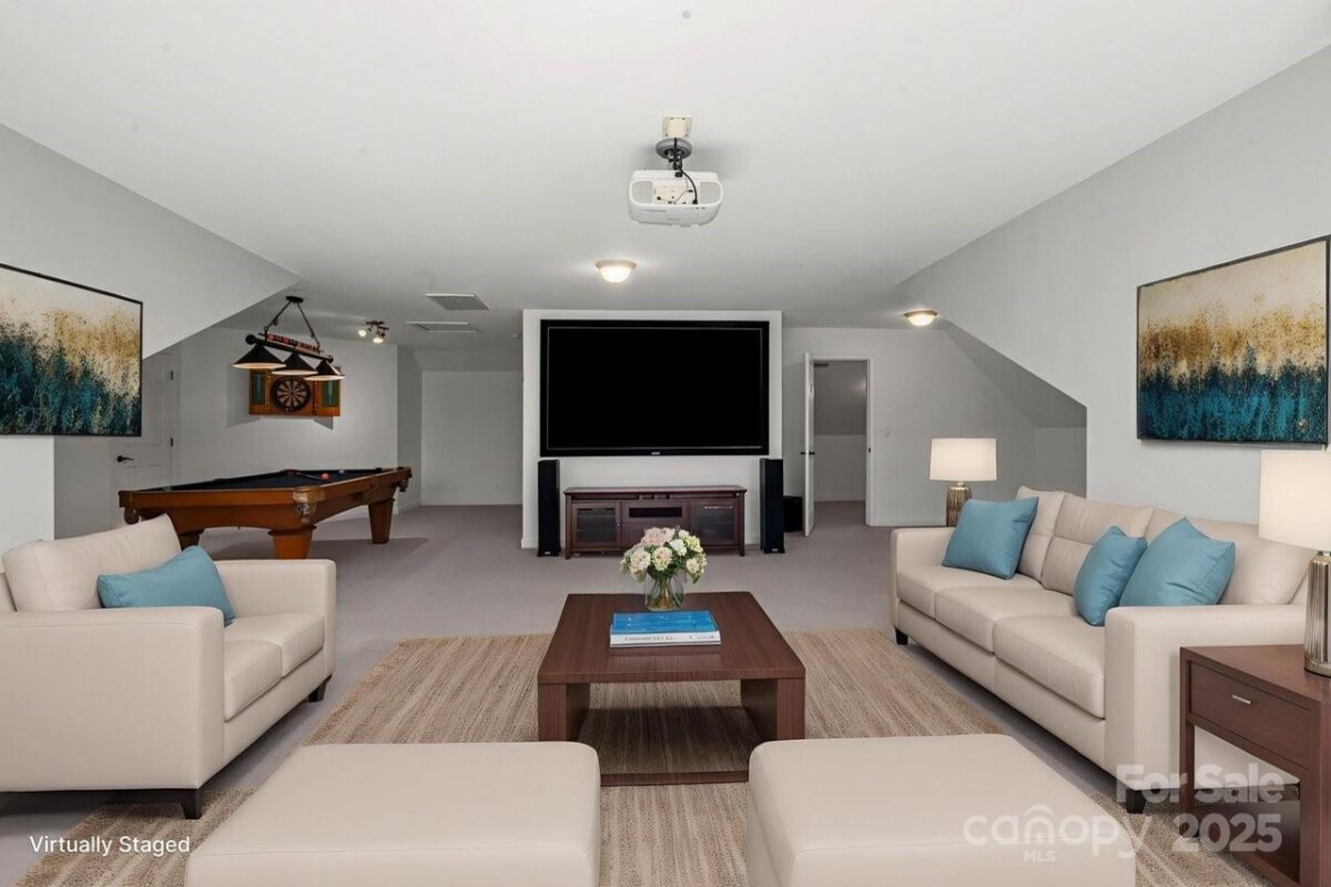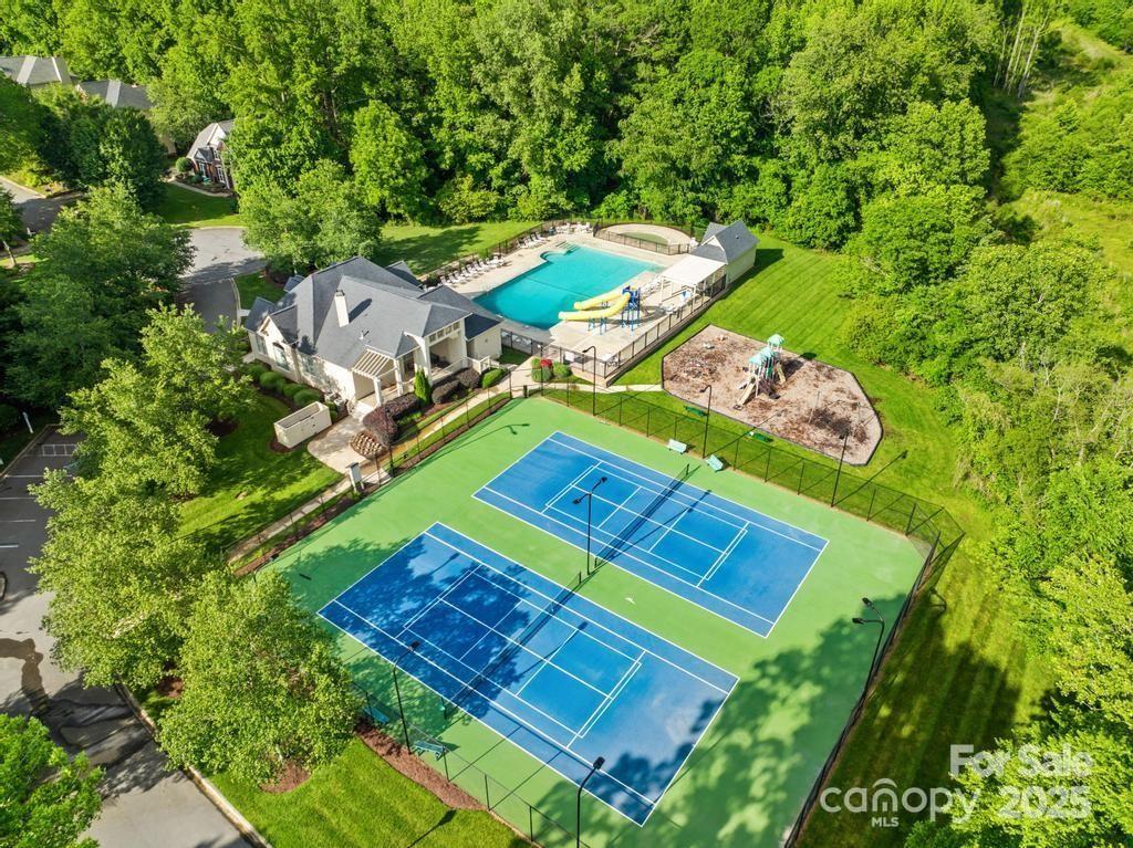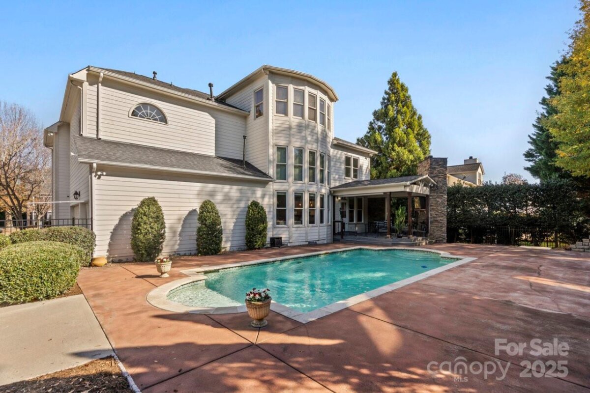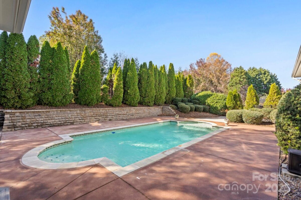 Welcome to this stunning move-in ready 5 bedroom home located in the highly desirable neighborhood of The Hamptons. The open concept main level features a 2-story entry, living room, library, dining room, bedroom/home office with en-suite bath, updated kitchen and a beautiful 2-story family room. Step outside to a custom-built vaulted porch with a wood-burning stone fireplace, overlooking a thoughtfully landscaped private and fenced backyard with a sparkling in-ground saltwater pool - a true oasis! Upstairs, the generously sized primary suite, 3 additional bedrooms, and a large walk-in laundry room provide comfort and convenience. The third floor offers an incredible media/game room space complete with pool table and projector equipment along with a huge walk-in storage room. Conveniently located near Birkdale, shops, restaurants, parks, and I-77 this home truly has it all! The Hamptons neighborhood proudly offers 2 pools, 2 playgrounds, a sand volleyball court, pickleball courts, tennis courts, and a walking trail that connects to North Mecklenburg Park.