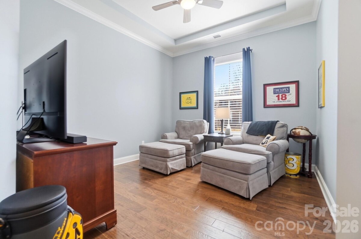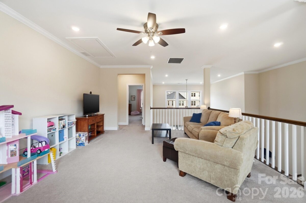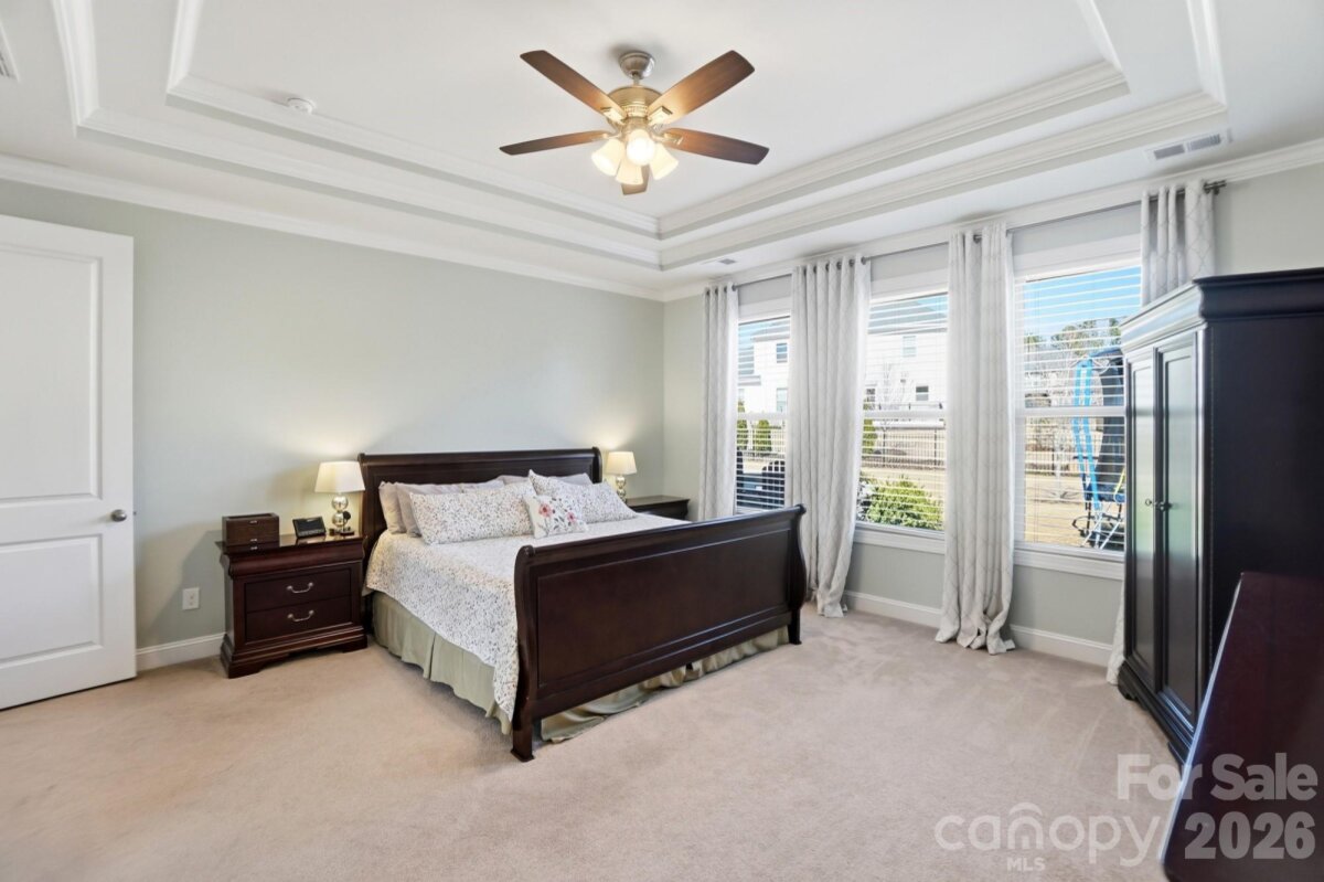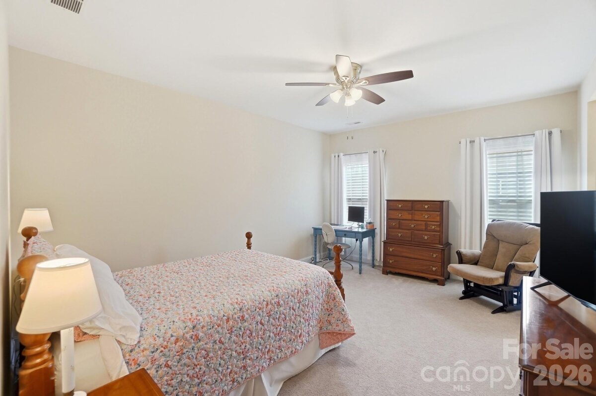 This beautiful 4-bedroom home with a main-level primary suite offers an exceptional blend of comfort, style, and functionality. The spacious primary retreat features a stunning en-suite bathroom and an oversized walk-in closet. Just steps away, the generous laundry room includes a convenient utility sink and ample space for everyday needs. The main level is thoughtfully designed for both living and entertaining. Enjoy a formal dining room, a versatile flex space ideal for a home office, play room or sitting room, and a luxurious kitchen featuring a large island, abundant natural light, and plenty of room for gathering with family and friends. The kitchen connects to the dining room through a convenient butler’s pantry, adding both elegance and practicality. The impressive two-story great room serves as the heart of the home, complete with built-in bookshelves and a cozy gas-log fireplace. Additional main-level features include a drop zone off the garage, helping to keep daily life organized. Upstairs, you’ll find a spacious loft, three generously sized bedrooms, and two full bathrooms, along with abundant closet space throughout. Step outside to enjoy the beautiful fenced backyard, complete with a covered patio, fire pit, and storage shed—perfect for relaxing evenings or entertaining outdoors. The home also features a desirable three-car garage, providing plenty of space for vehicles, storage, or hobbies. This home offers space, style, and exceptional livability both inside and out.